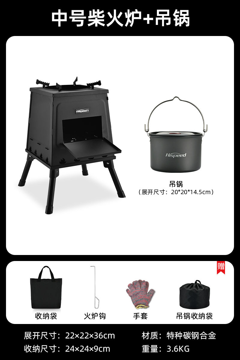• 중형 장작 난로 + 걸이 냄비 [식품 등급 항공 알루미늄, 걱정 없이 사용 가능]