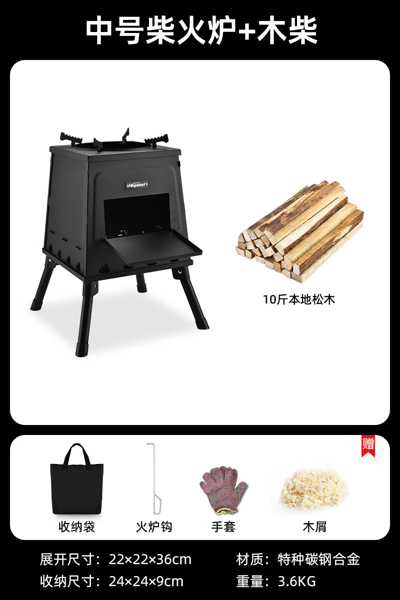 • 중형 장작 난로 + 현지 장작 5kg 장 [장작을 고온에서 건조하여 더 오래 타도록 함]