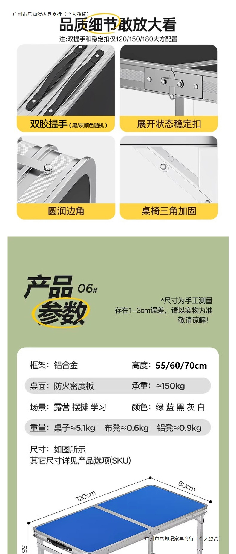 • 두꺼운 데스크탑-더블 크로스바 넉넉한 丨180*60+2 알루미늄 스툴 ★