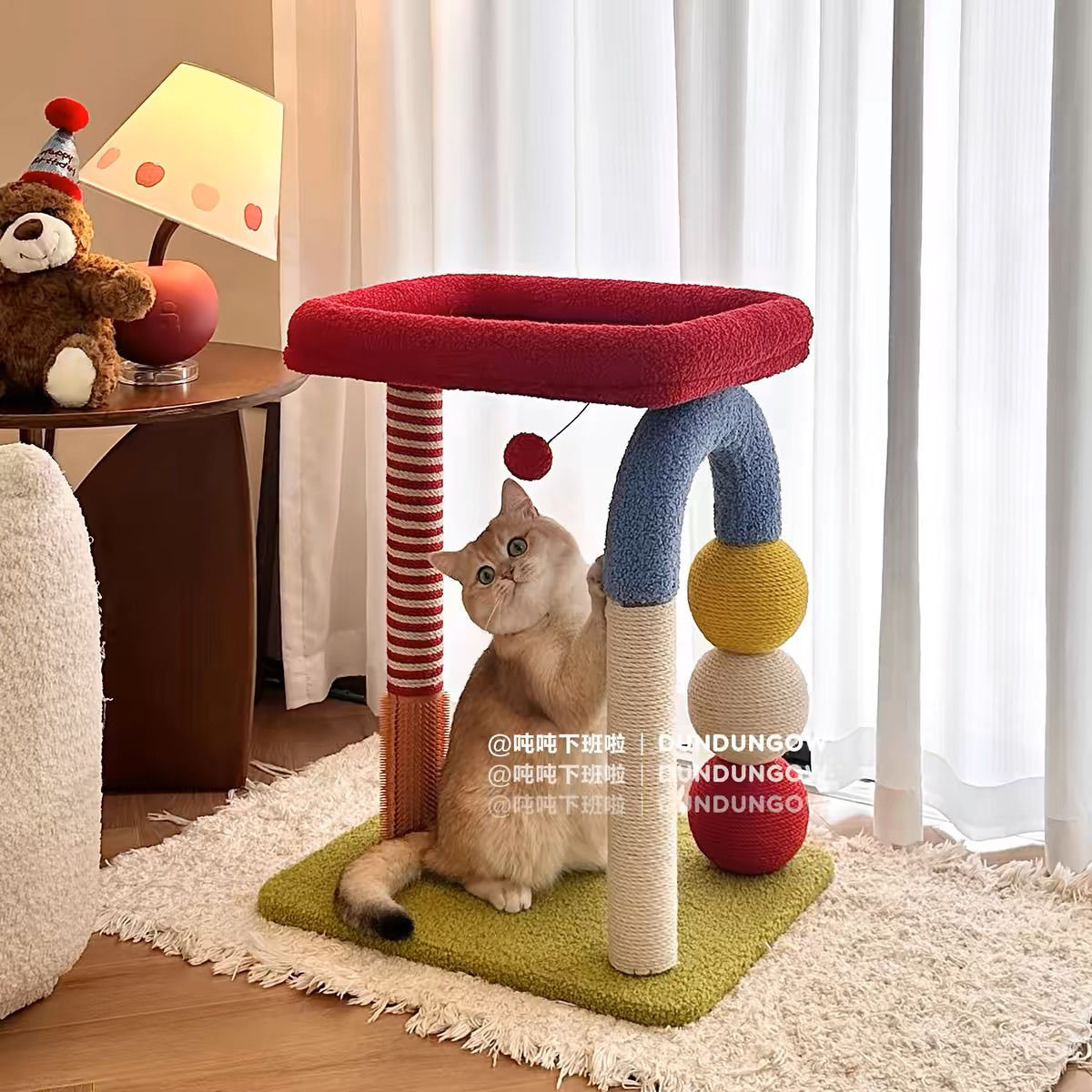 DUNDUN U자형 고양이 클라이밍 프레임, 고양이 둥지, 고양이 트리, 일체형 소형 고양이 선반, 사마귀 고양이 스크래치 컬럼, 고양이 장난감 및 용품