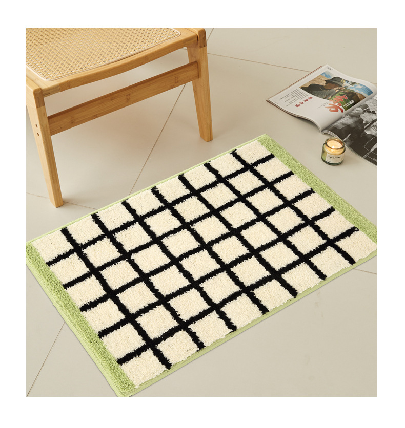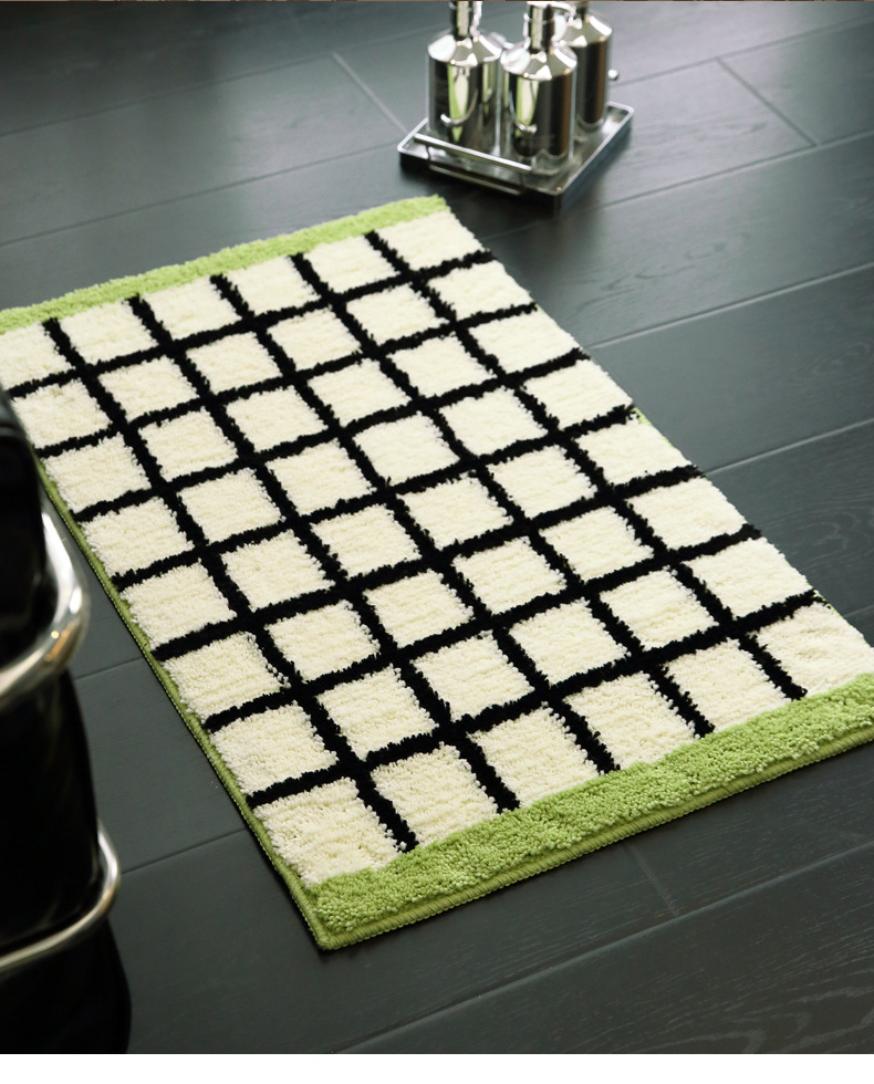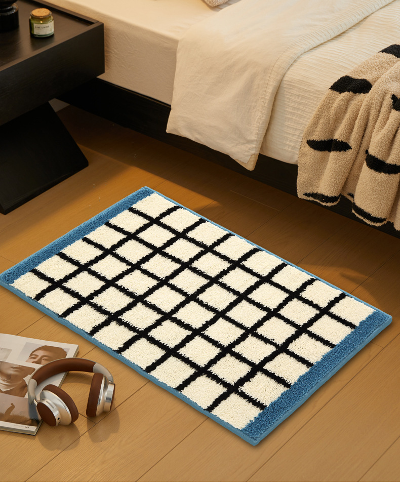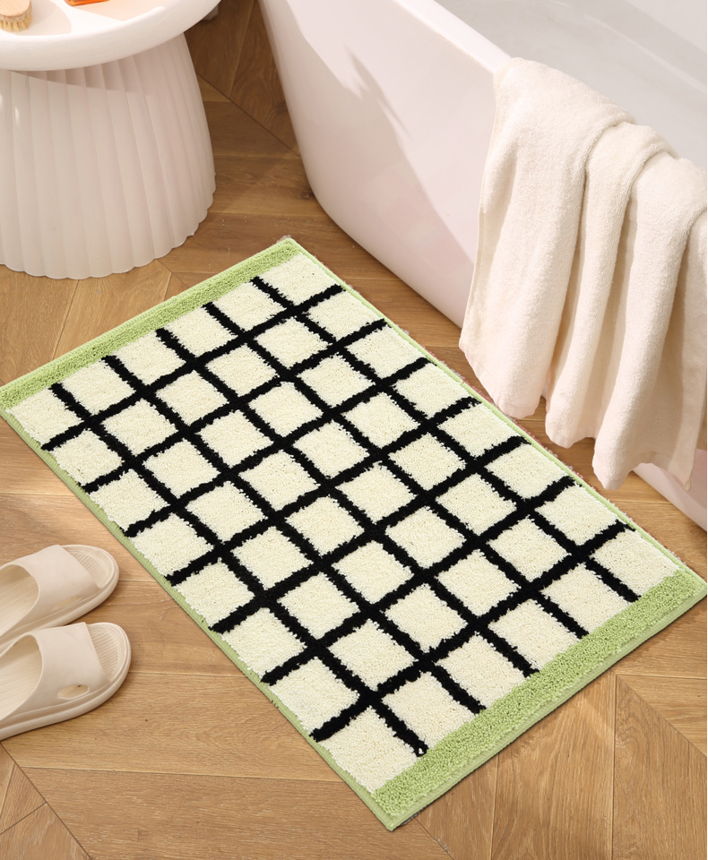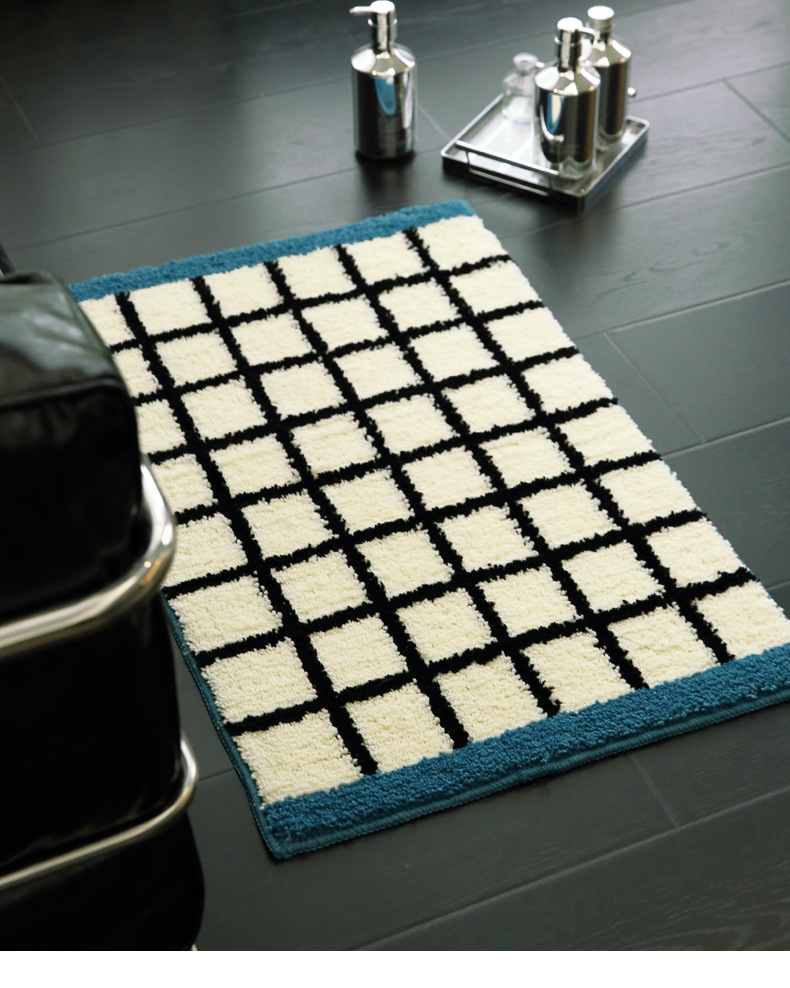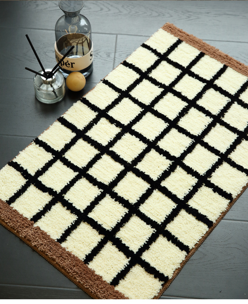 메일라드 중세 체크 무늬 욕실 바닥 매트, 강력한 흡수성 긴 미끄럼 방지 매트, 욕실 발 매트, 침실 침대 옆 담요 플로킹스토어 가기