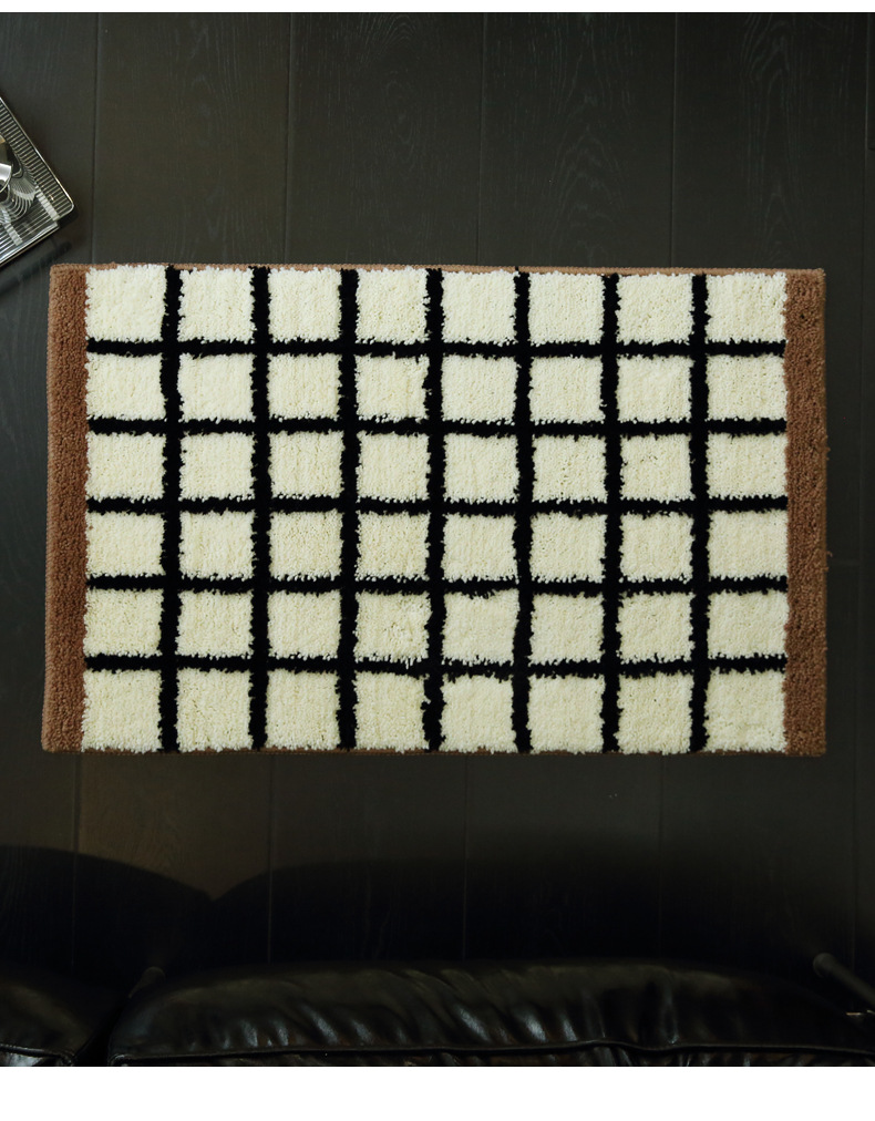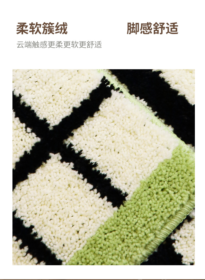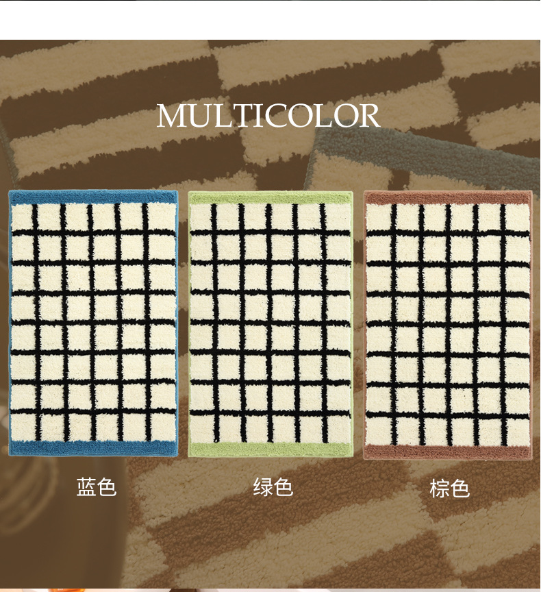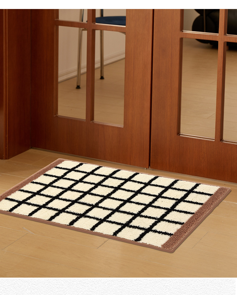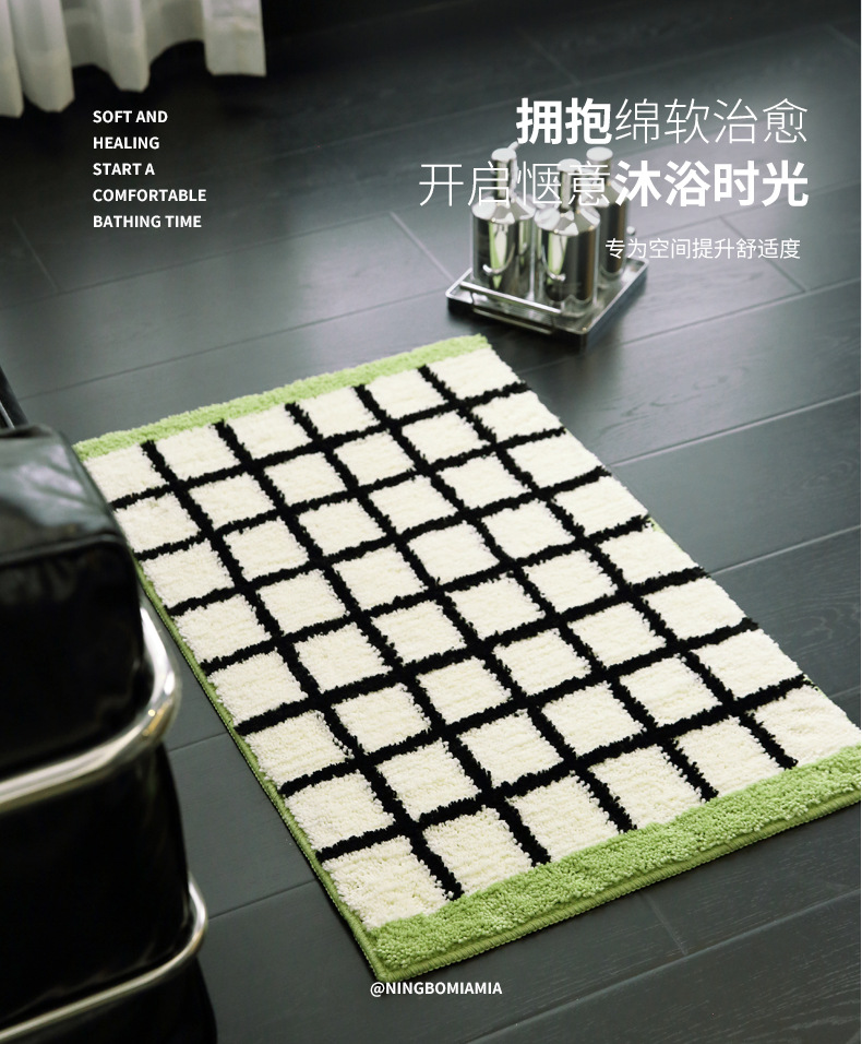 메일라드 중세 체크 무늬 욕실 바닥 매트, 강력한 흡수성 긴 미끄럼 방지 매트, 욕실 발 매트, 침실 침대 옆 담요 플로킹스토어 가기