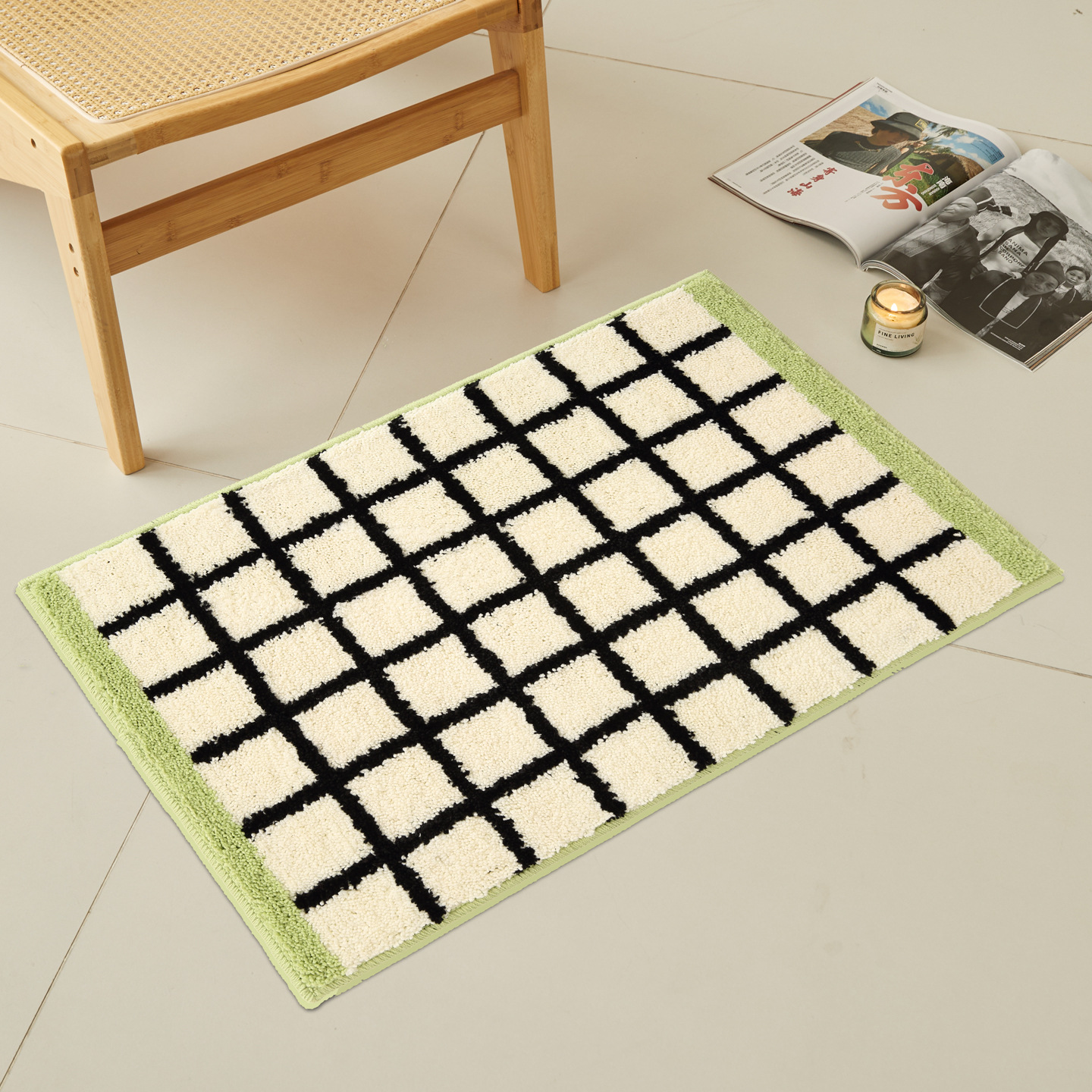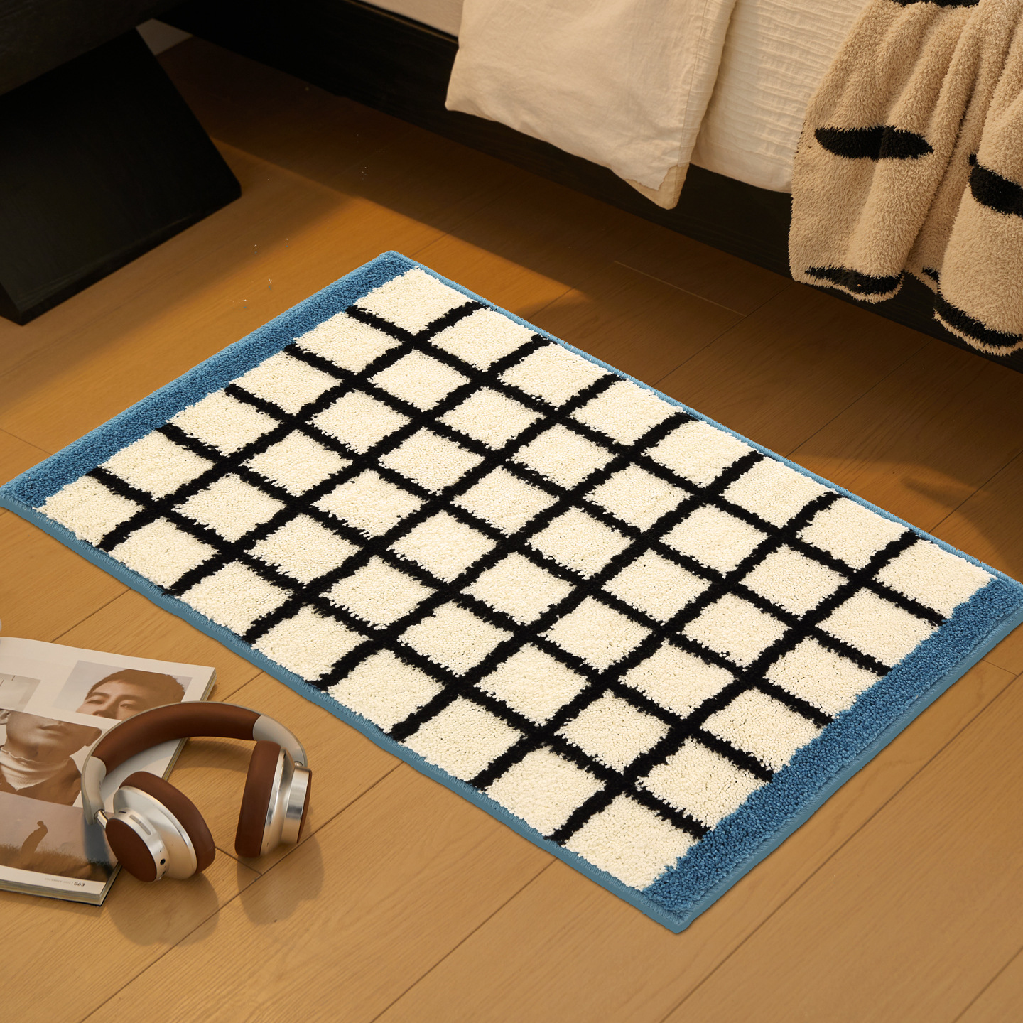 메일라드 중세 체크 무늬 욕실 바닥 매트, 강력한 흡수성 긴 미끄럼 방지 매트, 욕실 발 매트, 침실 침대 옆 담요 플로킹