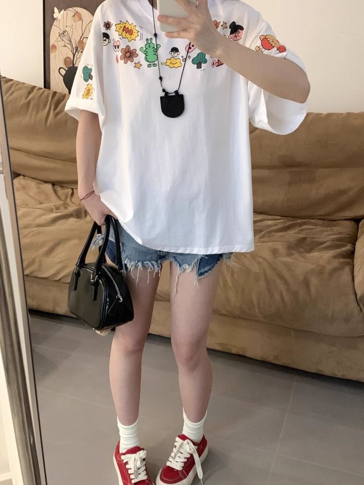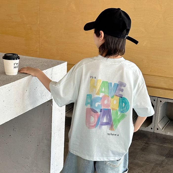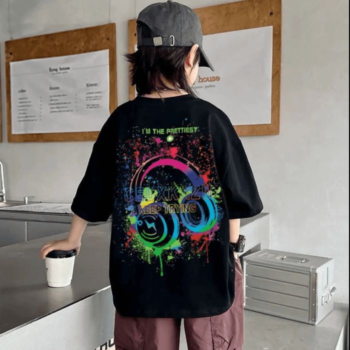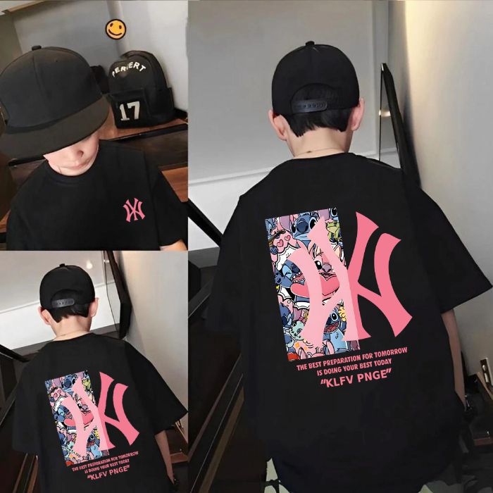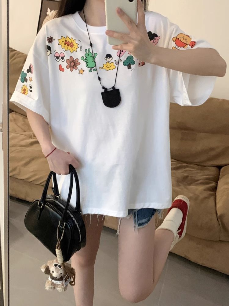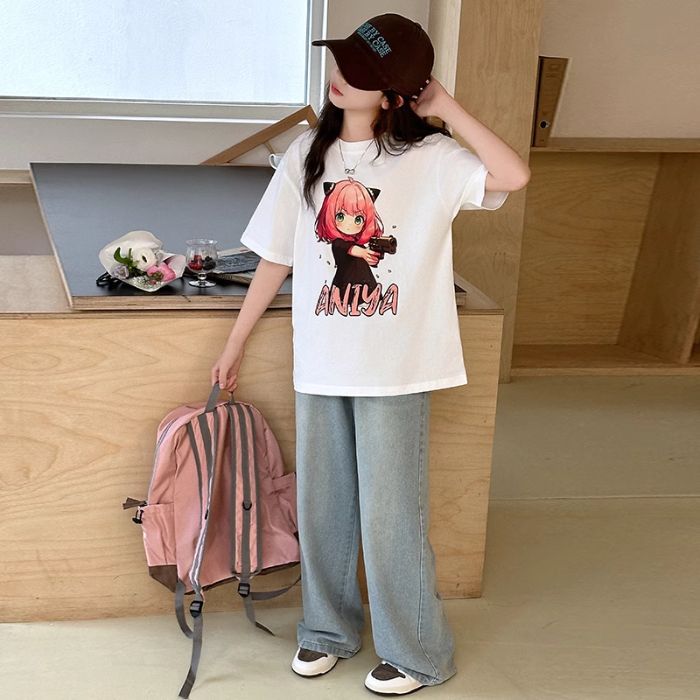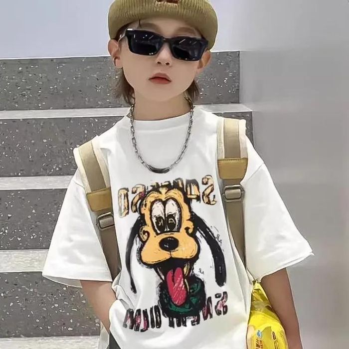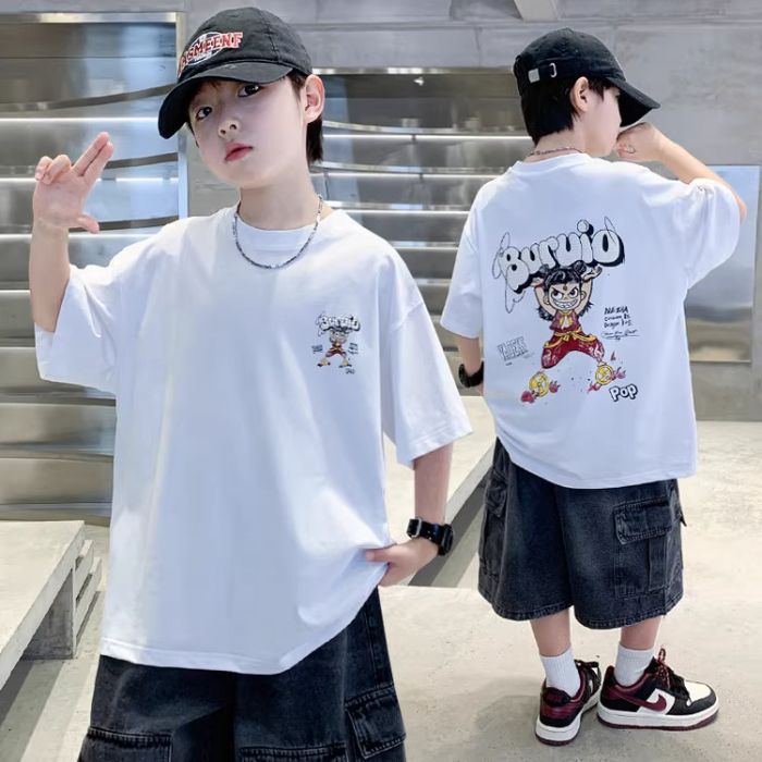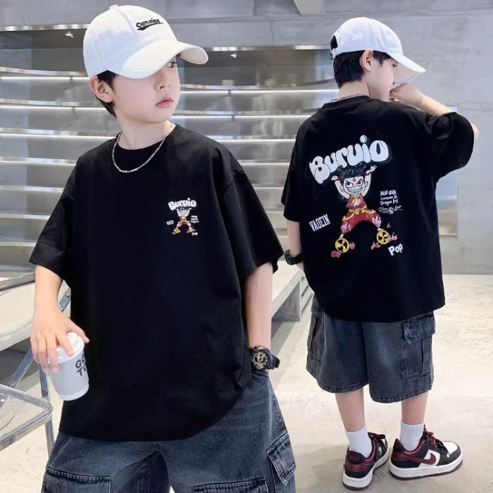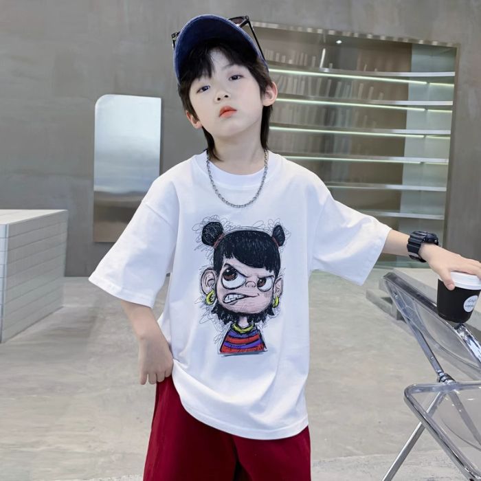 2025 새로운 스타일 소년 순면 반팔 여름 소녀 중대형 어린이 느슨한 라운드 넥 탑 만화 프린트 티셔츠 유행스토어 가기