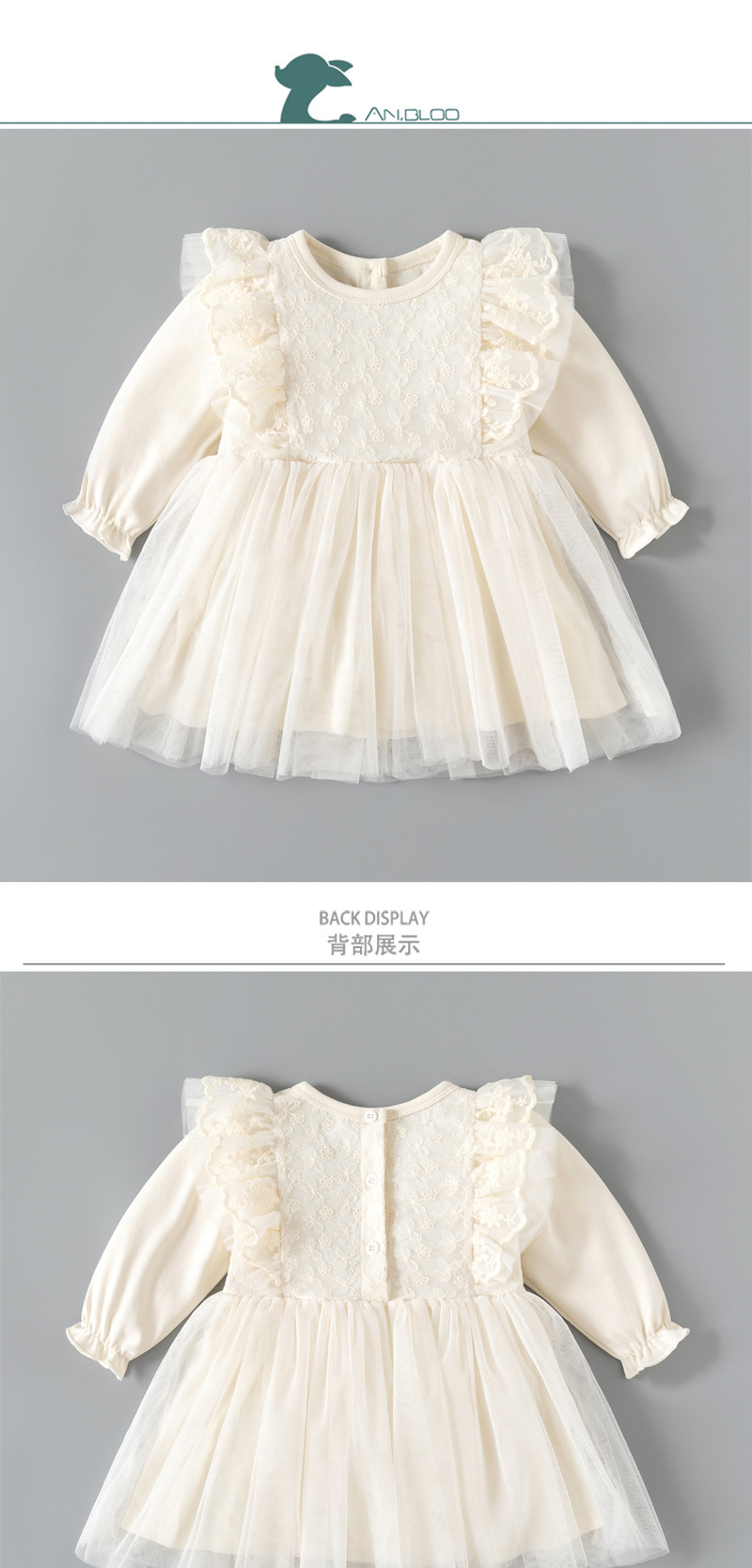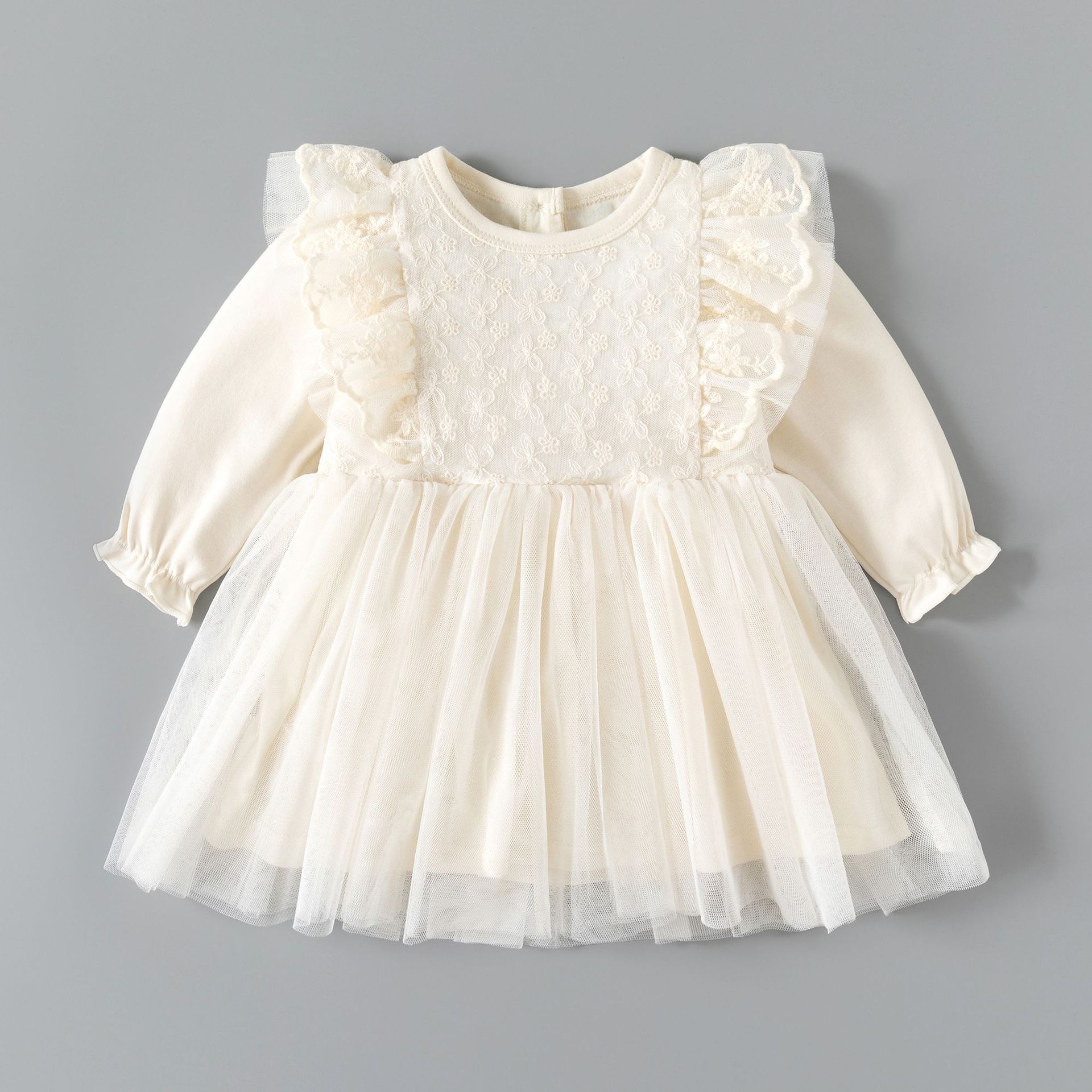 아기 드레스 봄과 가을 아기 소녀의 100 일 연회 공주 드레스 긴팔 메쉬 푹신한 첫 번째 생일 드레스