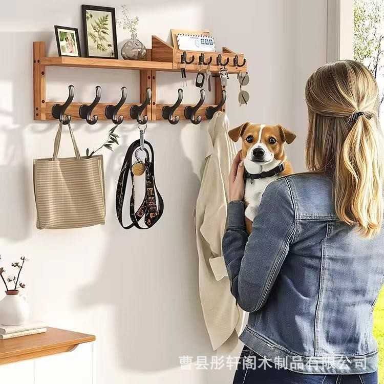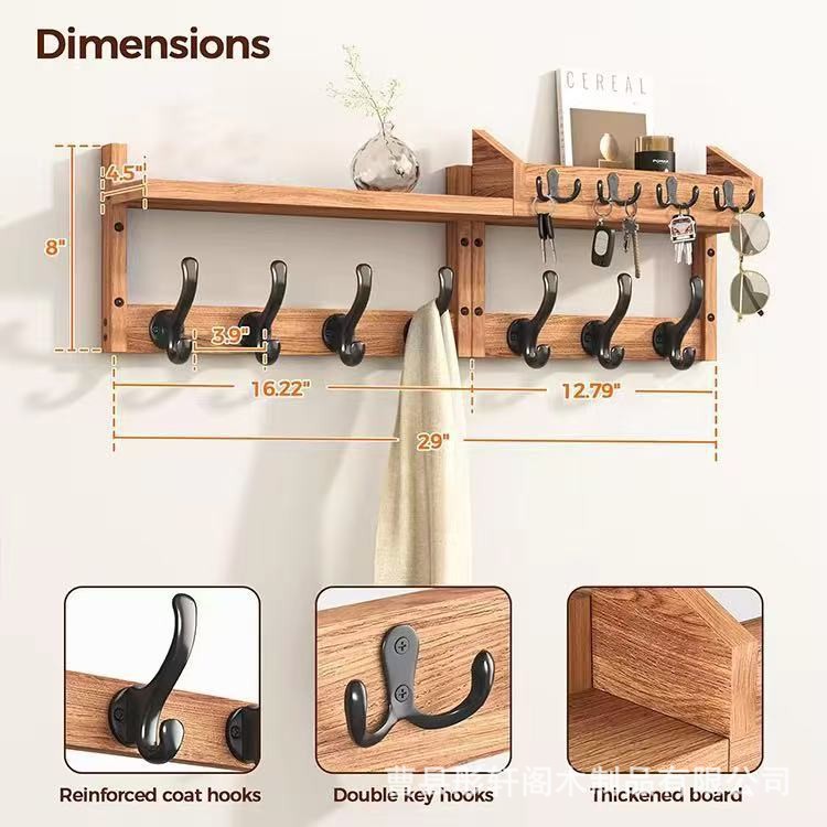 나무 수납 선반, 벽걸이형 코트 걸이, 현관 열쇠 수납 및 정리 선반, 거실 벽 칸막이 수납 선반