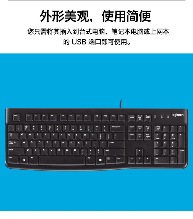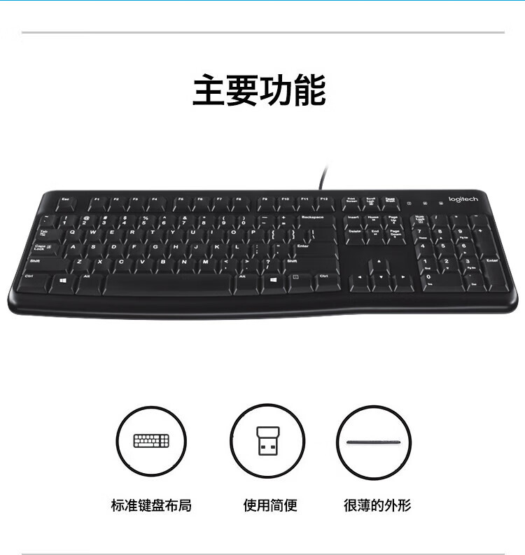 Logitech K120 엔터프라이즈급 유선 키보드 USB 인터페이스 컴퓨터 플러그 앤 플레이 풀 사이즈 키보드
