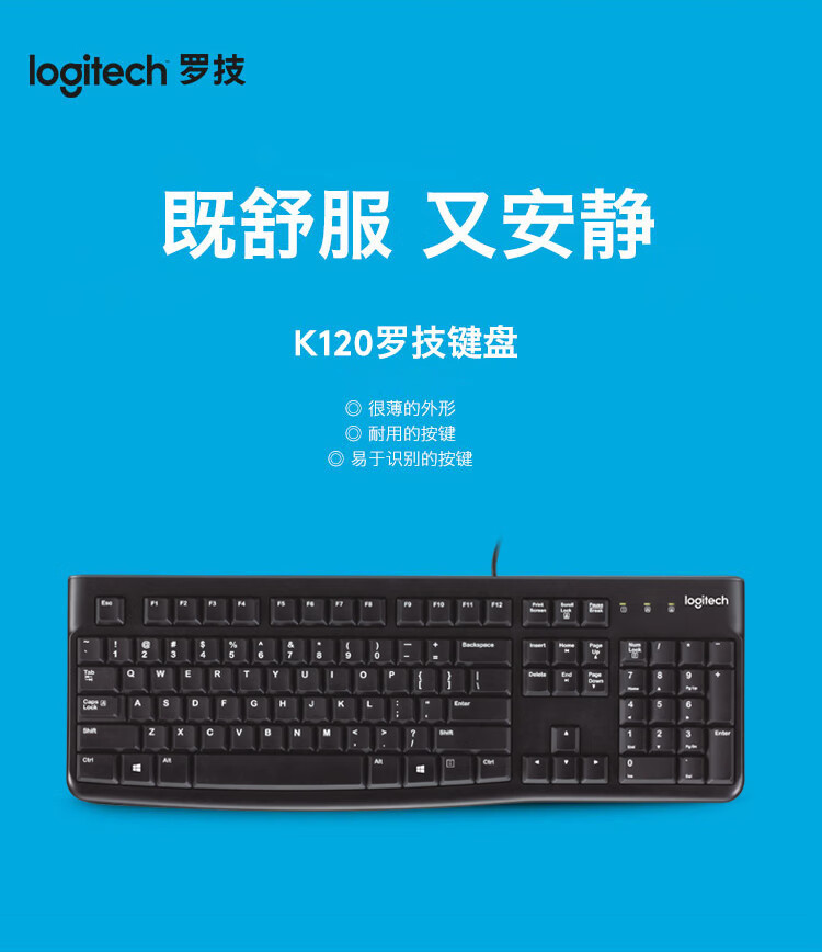 Logitech K120 엔터프라이즈급 유선 키보드 USB 인터페이스 컴퓨터 플러그 앤 플레이 풀 사이즈 키보드스토어 가기