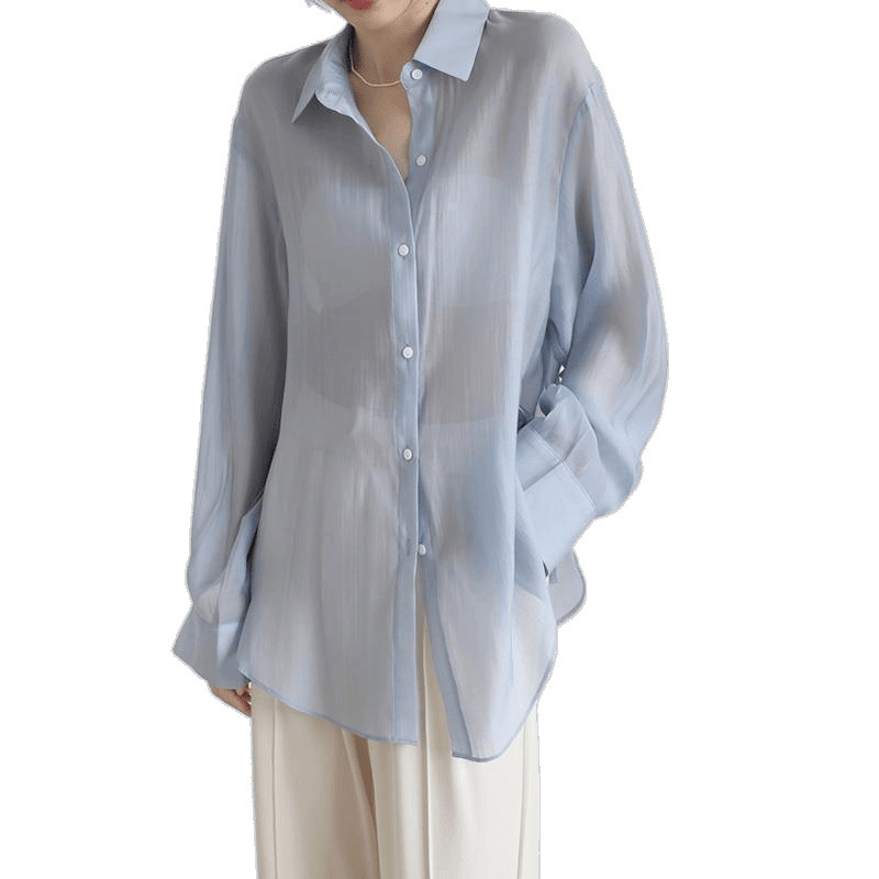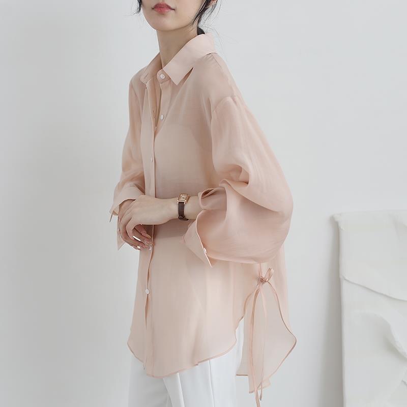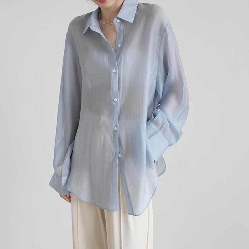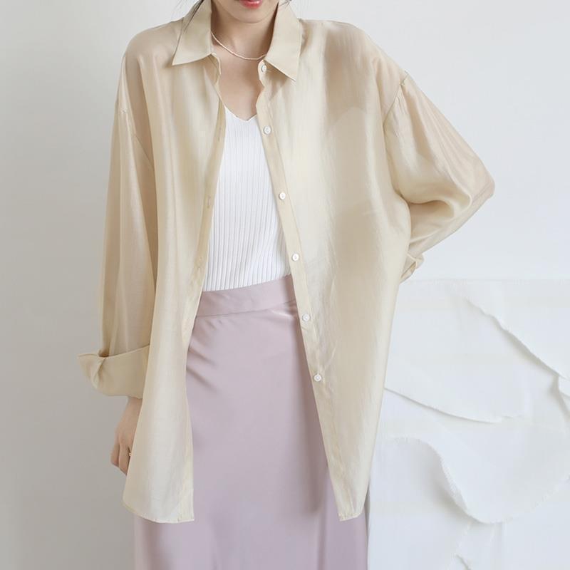 여성용 텐셀 자외선 차단 셔츠, 얇은 아이스 실크 가디건, 서스펜더 스커트, 블라우스, 요정 쉬폰 탑스토어 가기