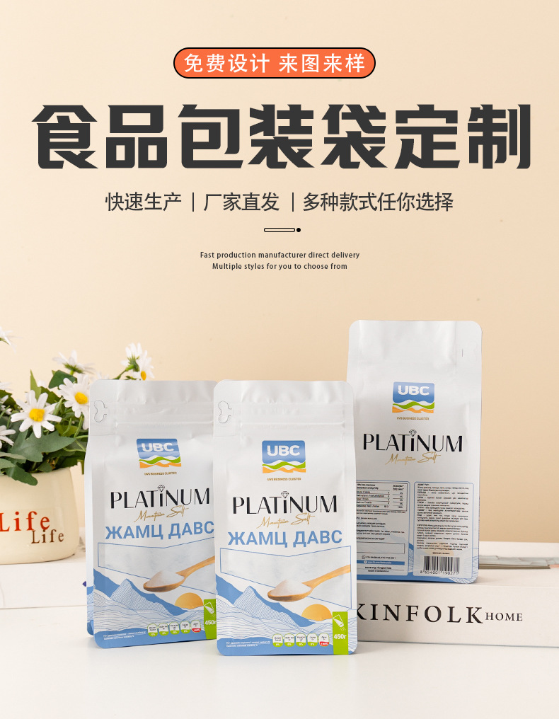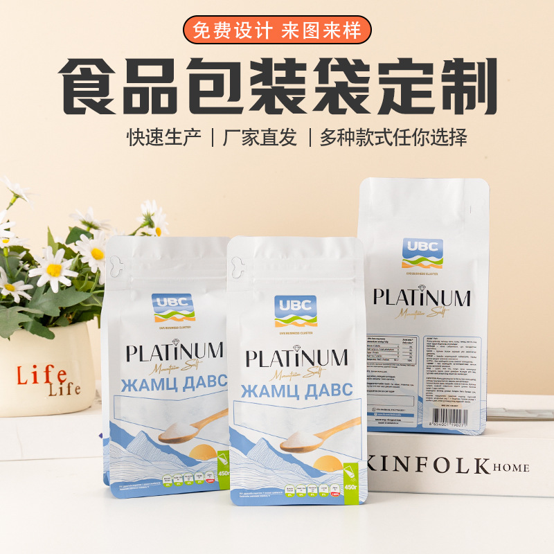 식품 포장 백 맞춤형 알루미늄 호일 백 진공 8면 밀봉 자립형 지퍼백 차 커피 롤 필름 인쇄스토어 가기