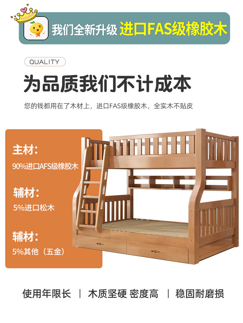 책상이 있는 원목 어린이 이층침대, 어머니용 침대, 성인용 이층침대, 오크 하이앤로우 침대