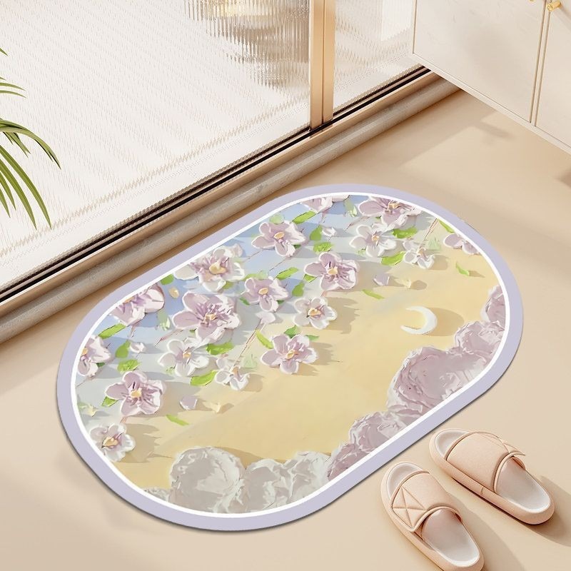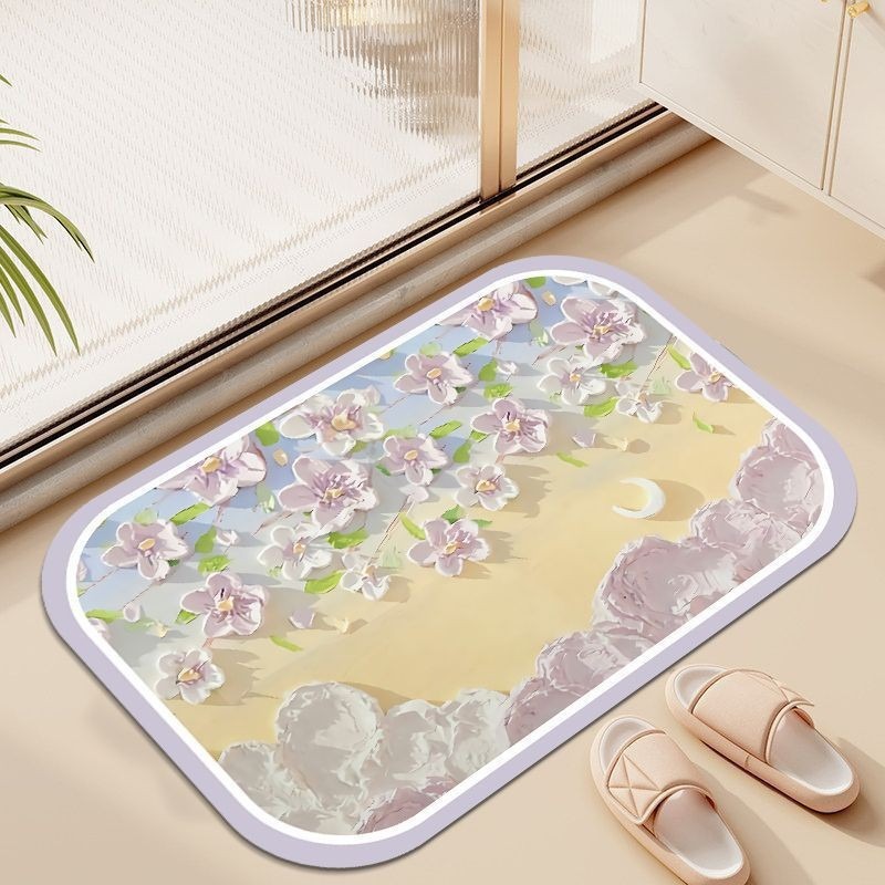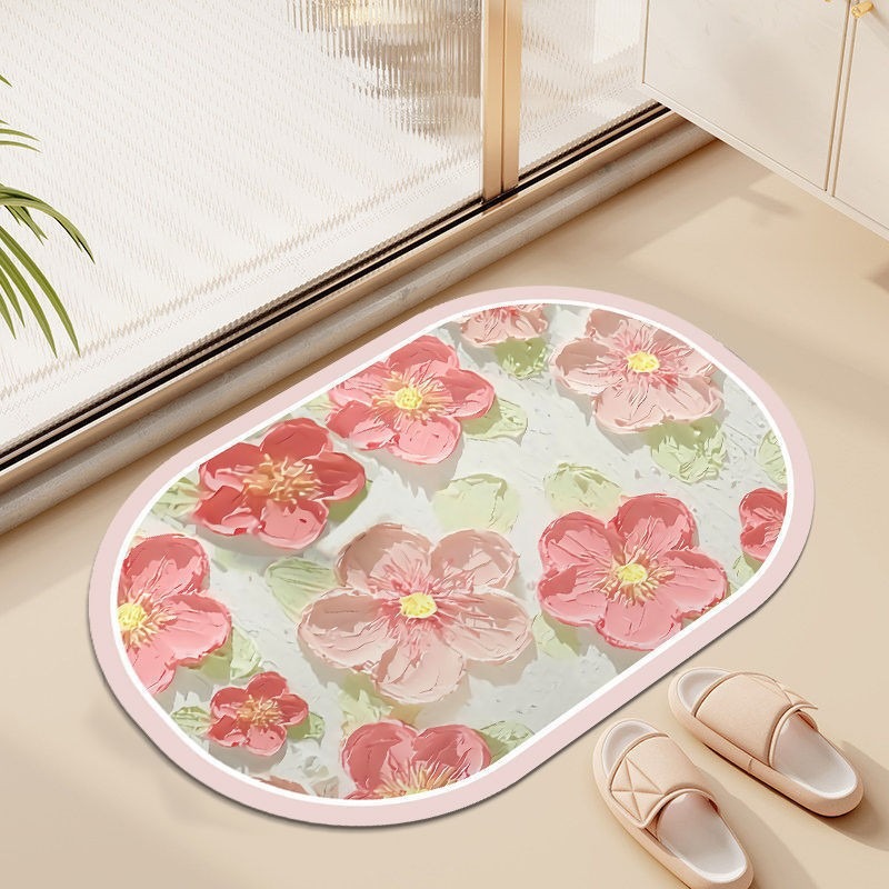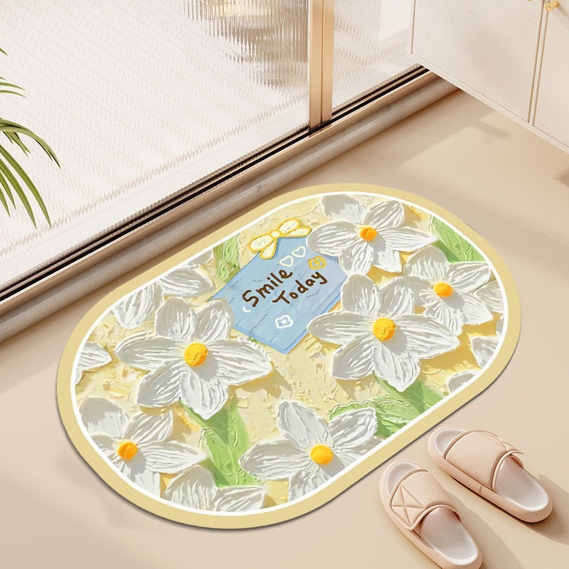 신선한 꽃 규조토 진흙 바닥 매트, 욕실 미끄럼 방지 바닥 매트, 화장실 문 흡수성 욕실 바닥 매트, 얼룩 방지 발 매트스토어 가기