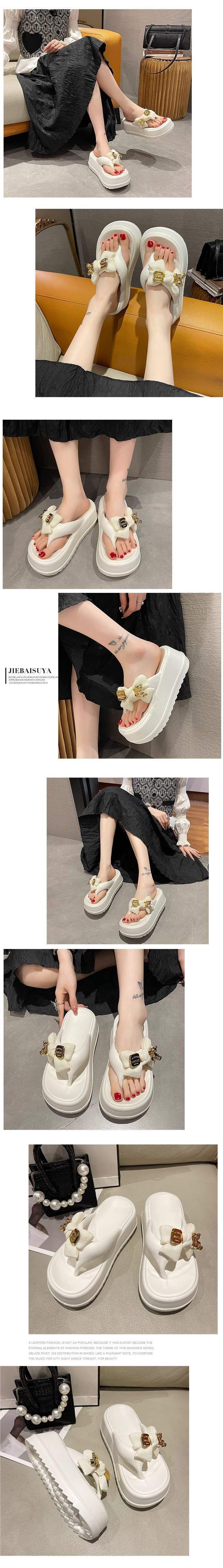 여름 여성용 하이힐 슬리퍼 귀여운 곰 리본 플랫폼 두꺼운 밑창 비치 미끄럼 방지 겉옷 슬리퍼스토어 가기