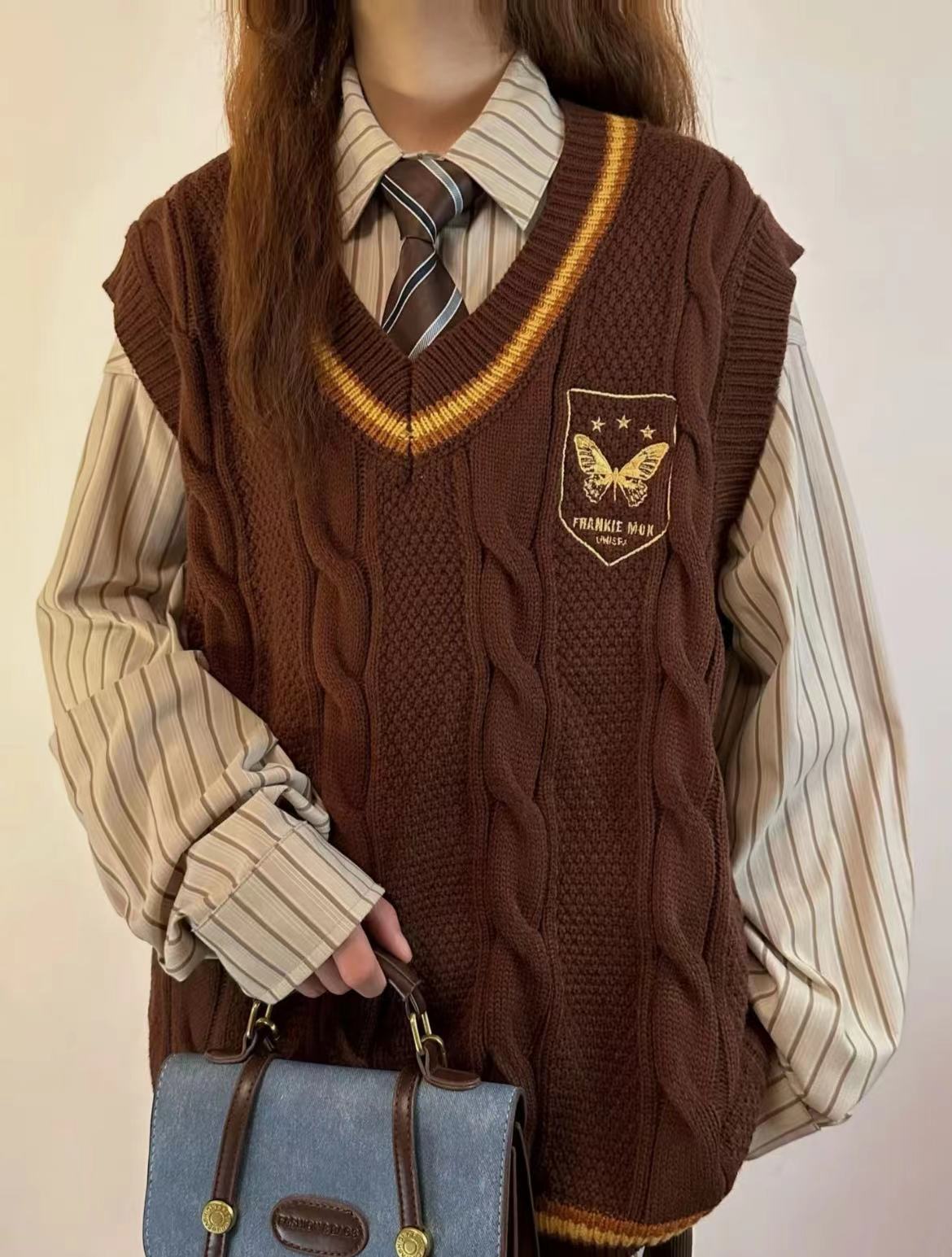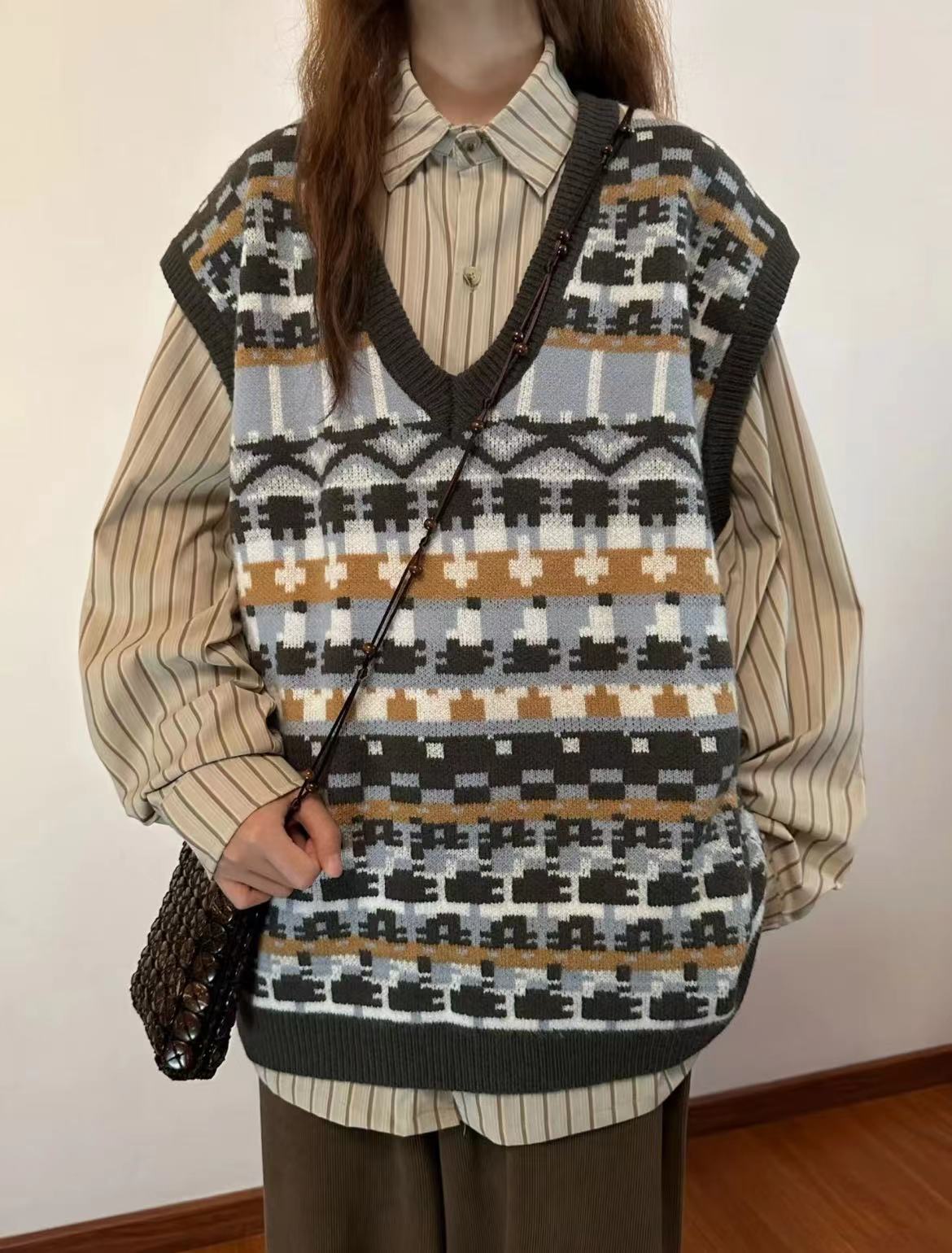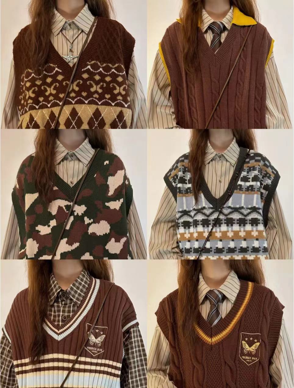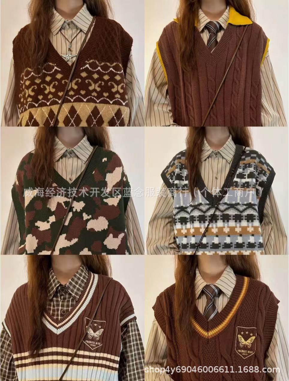초가을 새로운 복고풍 대학 스타일 스웨터 조끼 일본식 풀오버 니트 조끼 레이어드 셔츠 여성 투피스 세트스토어 가기