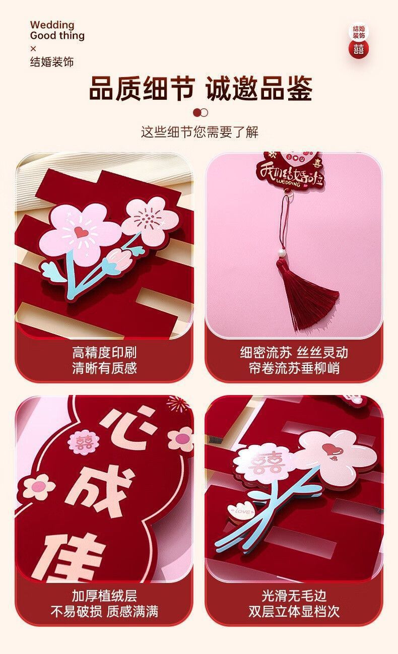 결혼식 커플의 행복한 말이 붙은 스티커, 결혼식을 맞아 결혼한 여자의 스티커, 결혼식 방 문걸이, 문문 스티커, 결혼 용품스토어 가기