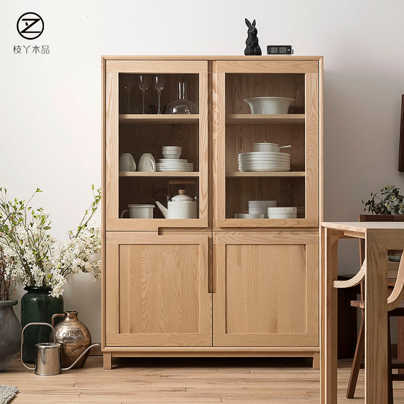 일본식 미니멀리스트 찬장 주방 보관 캐비닛 북유럽 전체 단단한 나무 책장 보관 캐비닛 북미 검은 호두