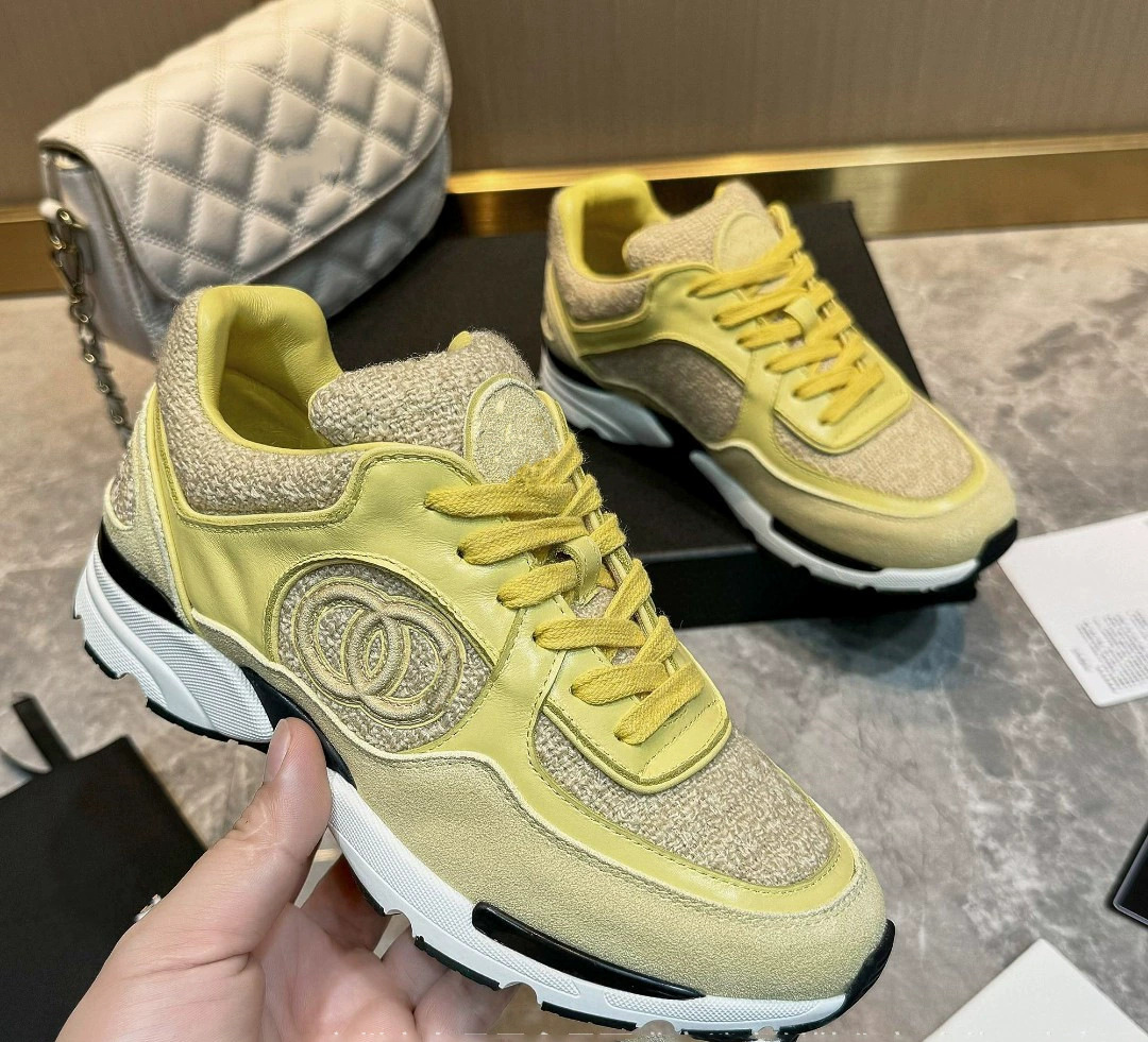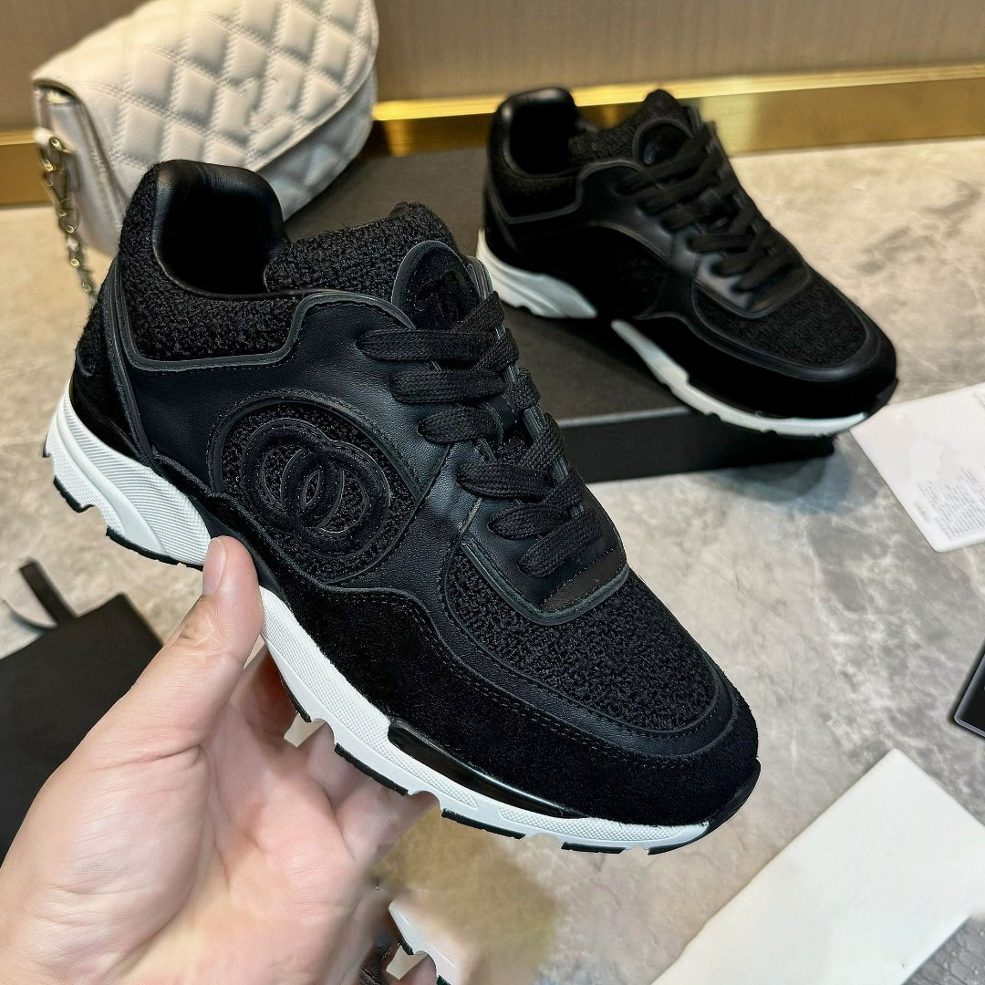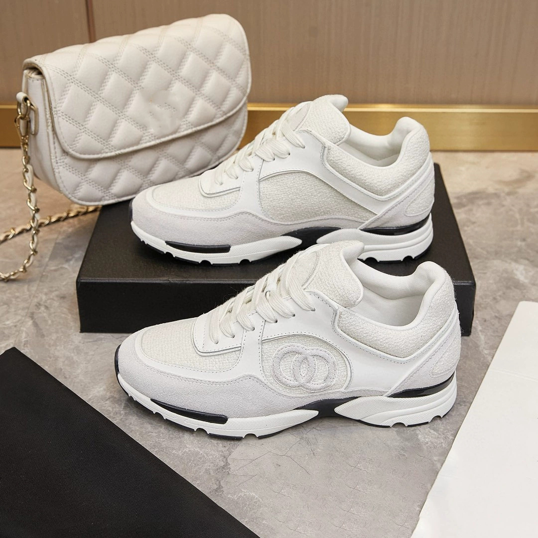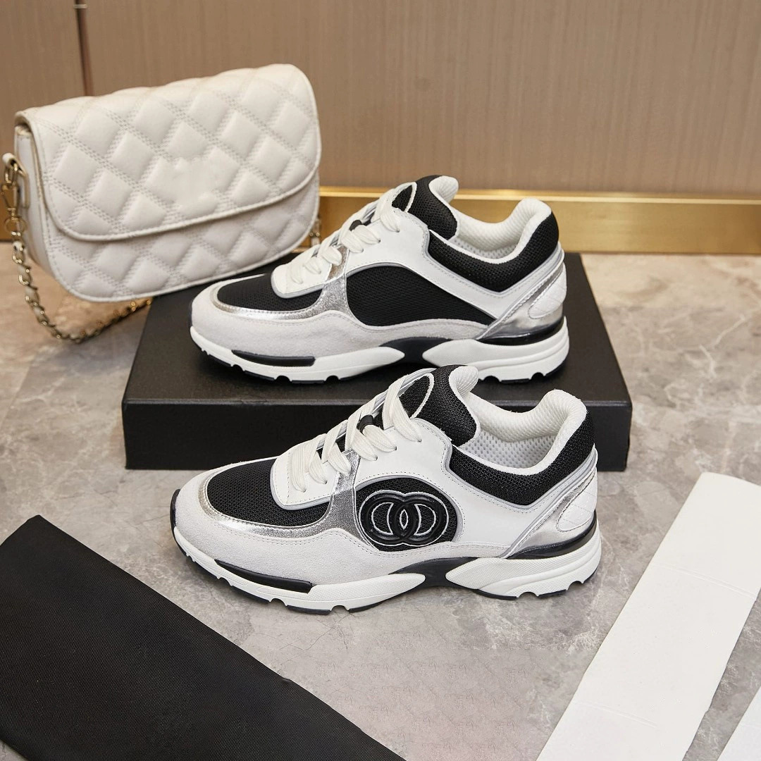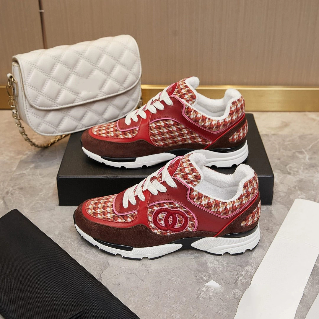 재고 있음 2025 새로운 스타일 작은 향기 로고 레이스 업 운동화 웨지 힐 캐주얼 아빠 신발 운동화