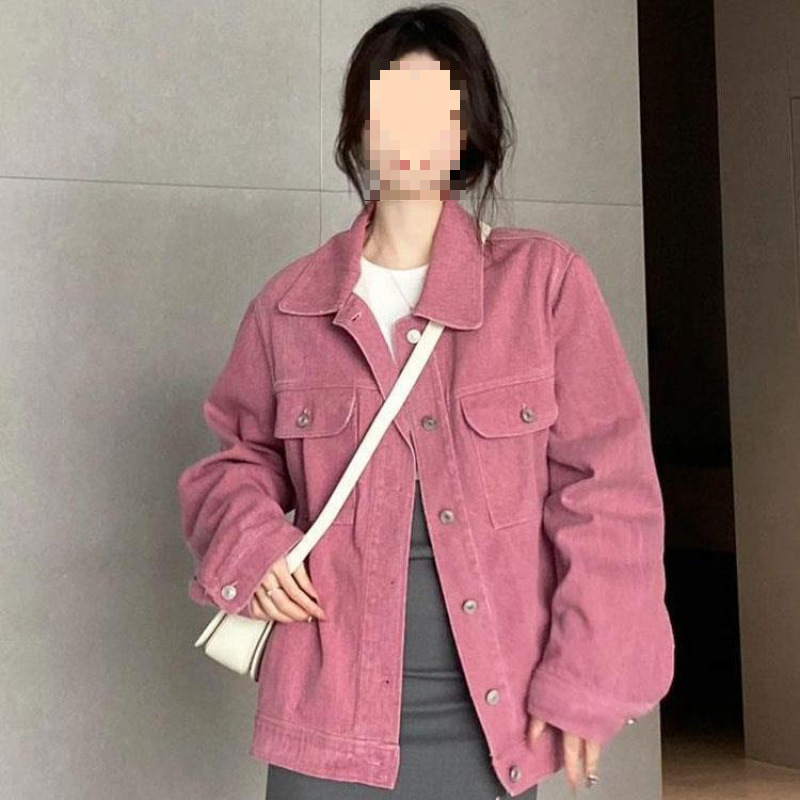 여성을위한 로즈 핑크 아메리칸 데님 재킷 2024 새로운 봄, 가을 핫 스타일 복고풍 홍콩 스타일 루즈하고 다재다능한 재킷 탑스토어 가기