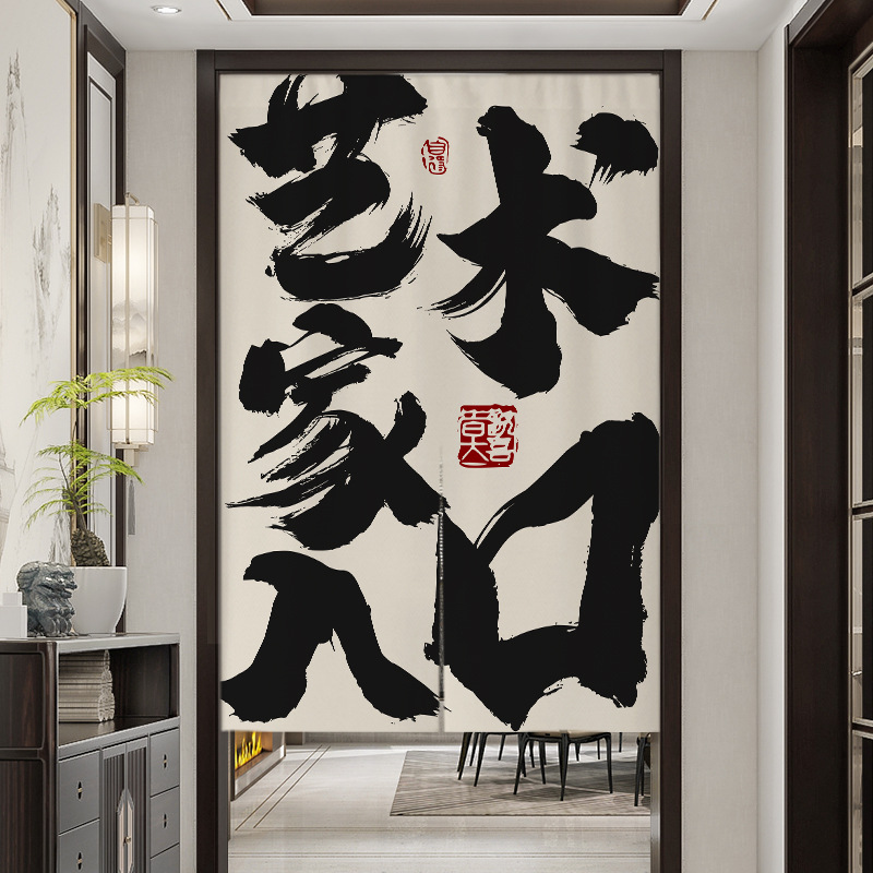 새로운 인쇄 텍스트 도어 커튼 주방 상업용 패브릭 욕실 칸막이 커튼 장식 레스토랑 호텔 하프 커튼스토어 가기