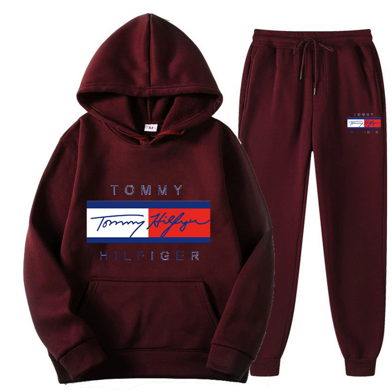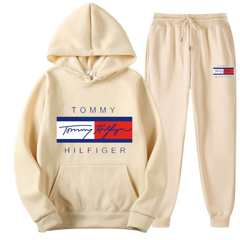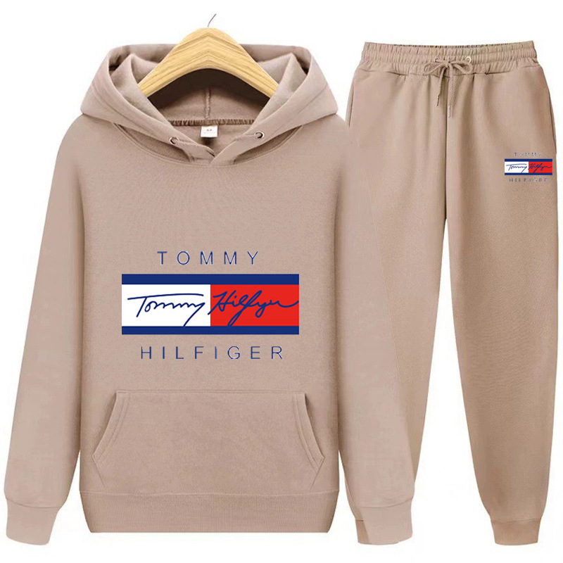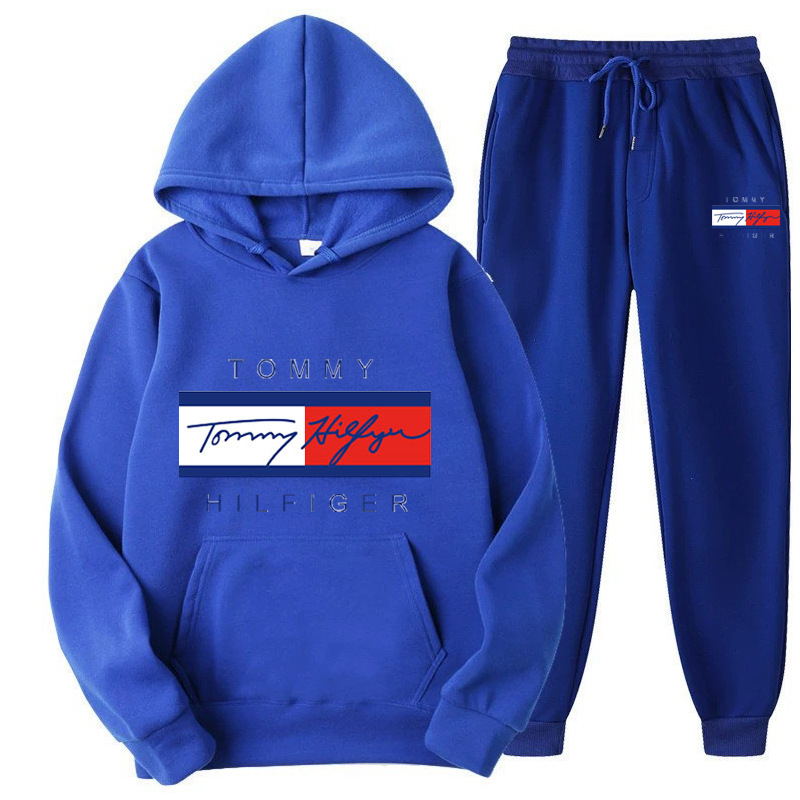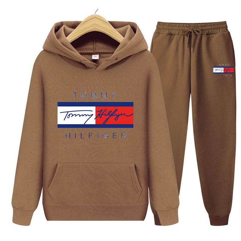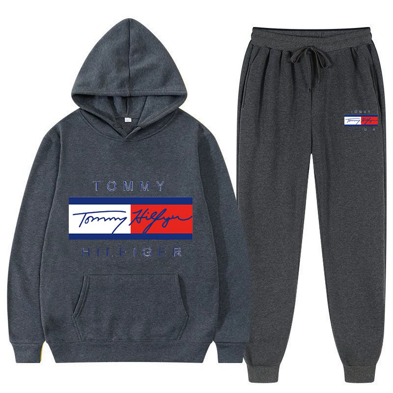 국경을 넘는 남성 및 여성 스웨트 셔츠 세트 플러스 벨벳 풀오버 후드 스웨트 셔츠 세트 유럽과 미국의 패션 스포츠 및 레저 세트 재고 있음스토어 가기