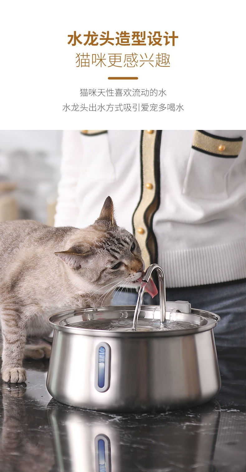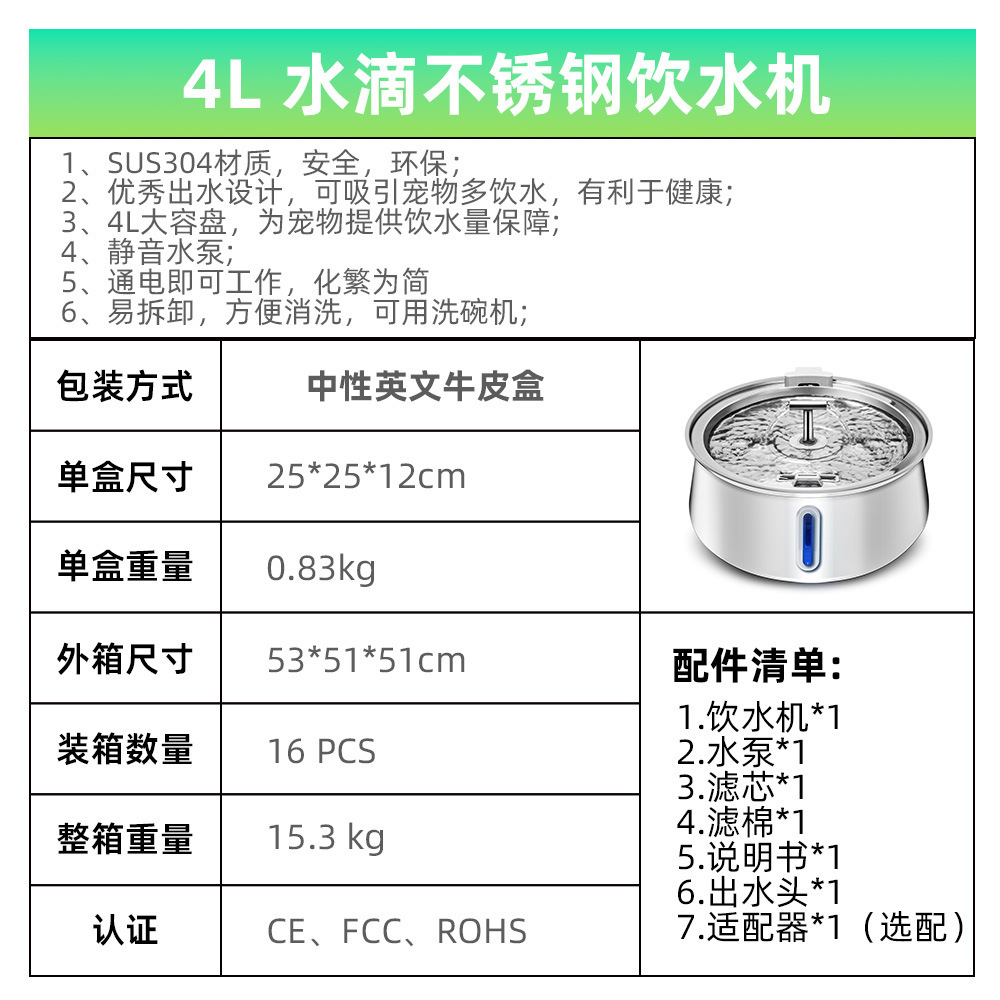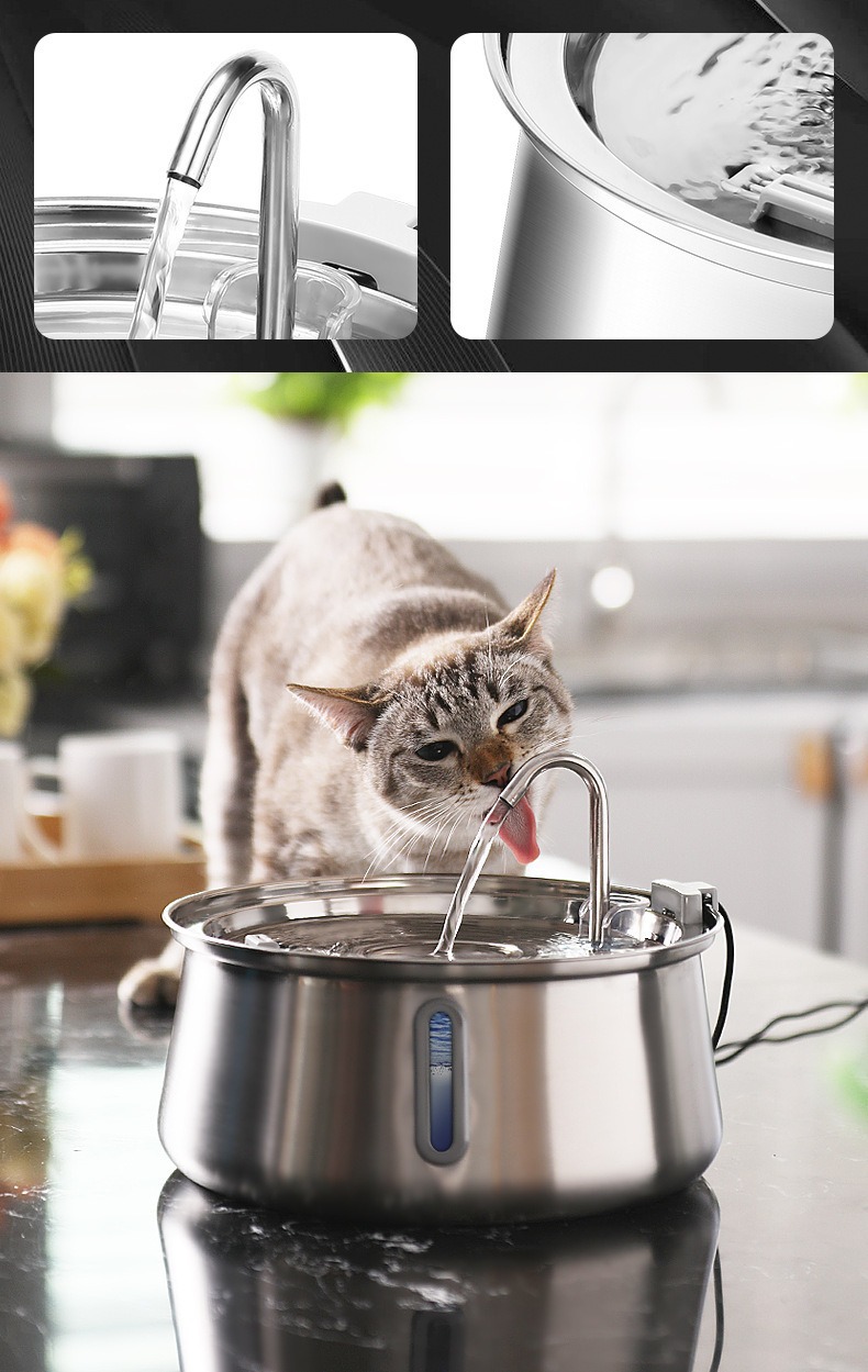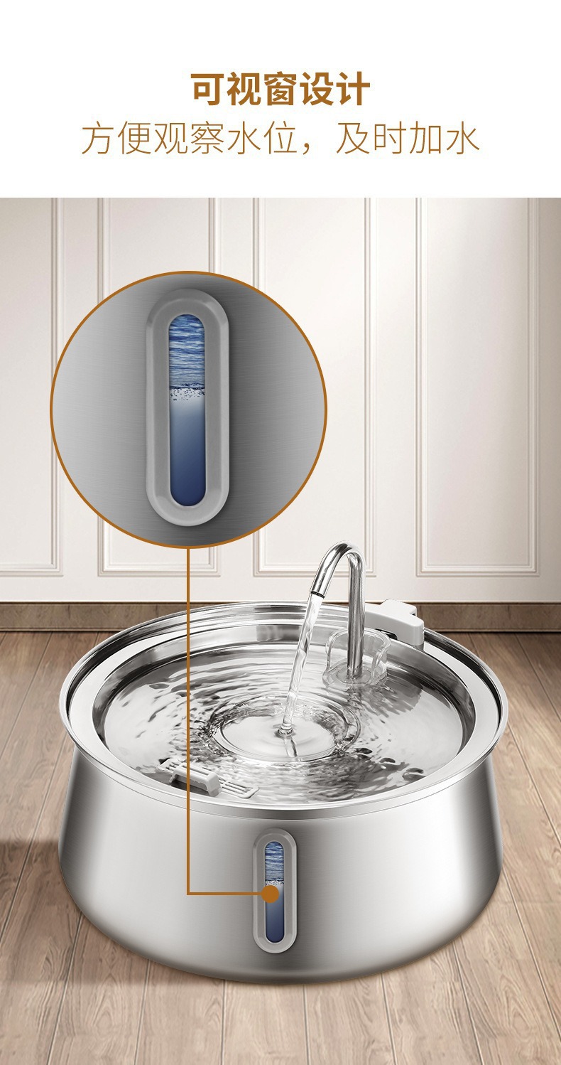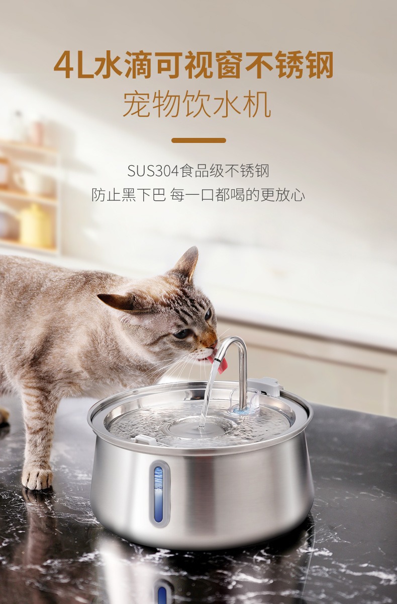 Amazon의 인기 있는 4L 물방울 수도꼭지 스테인레스 스틸 애완 동물 워터 디스펜서(시각적 창 포함) 고양이 자동 워터 디스펜서스토어 가기