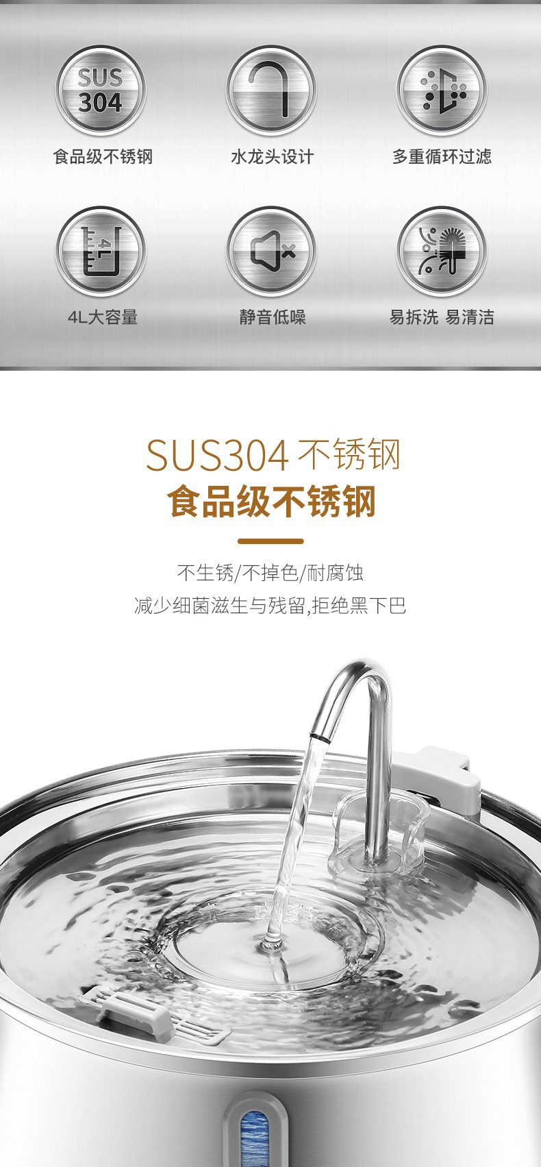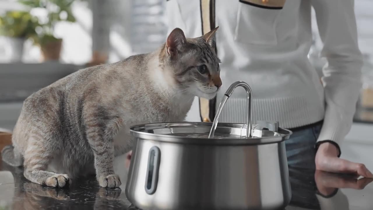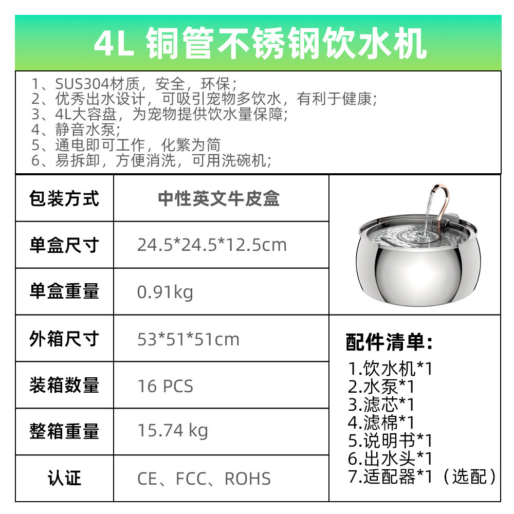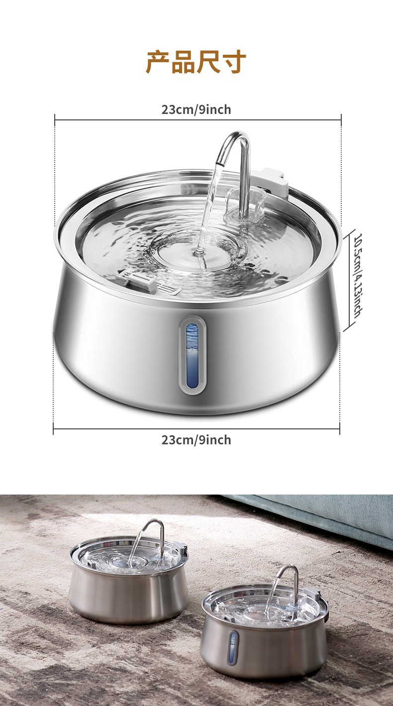 Amazon의 인기 있는 4L 물방울 수도꼭지 스테인레스 스틸 애완 동물 워터 디스펜서(시각적 창 포함) 고양이 자동 워터 디스펜서스토어 가기