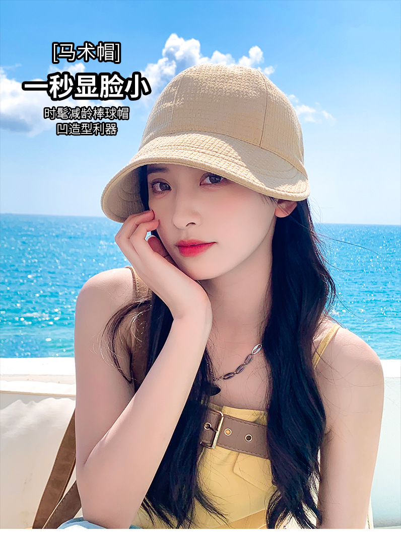 • E-608CH 베이지 스몰 라벨 승마모자(마스크 걸이 가능)