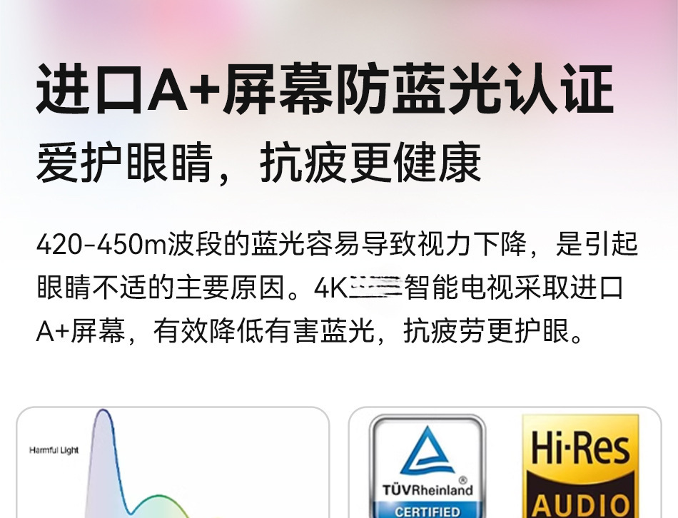• LED-65TV 초박형 눈 보호 스크린 [스마트 네트워크 버전] 10년 보증, 교체만 가능, 수리 불가