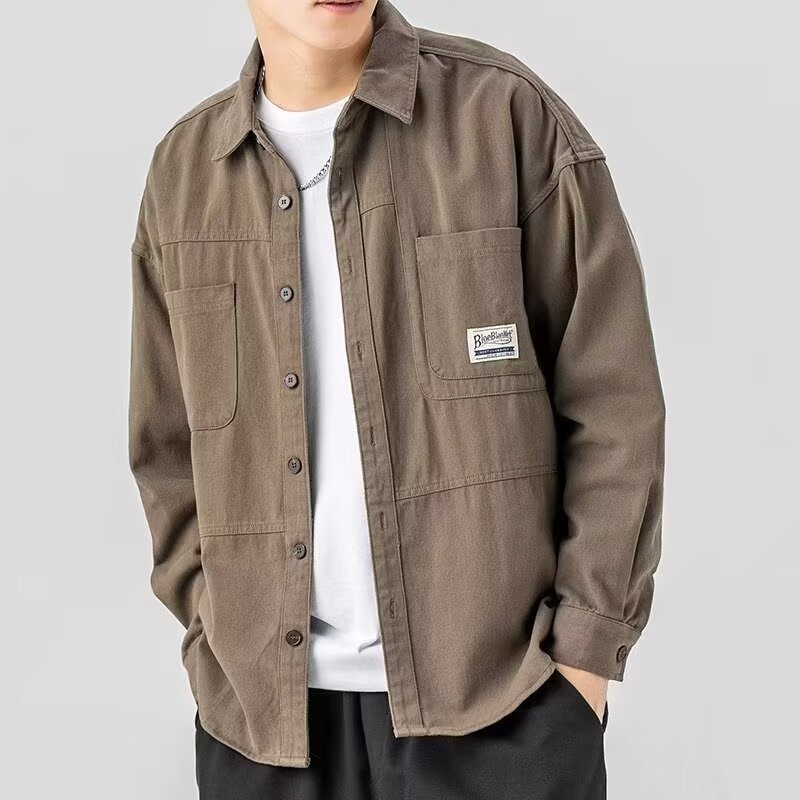 대외 무역 봄, 가을 작업 셔츠 남성 캐주얼 긴팔 셔츠 잘 생긴 트렌디 루즈 카디건 아메리칸 탑 재킷