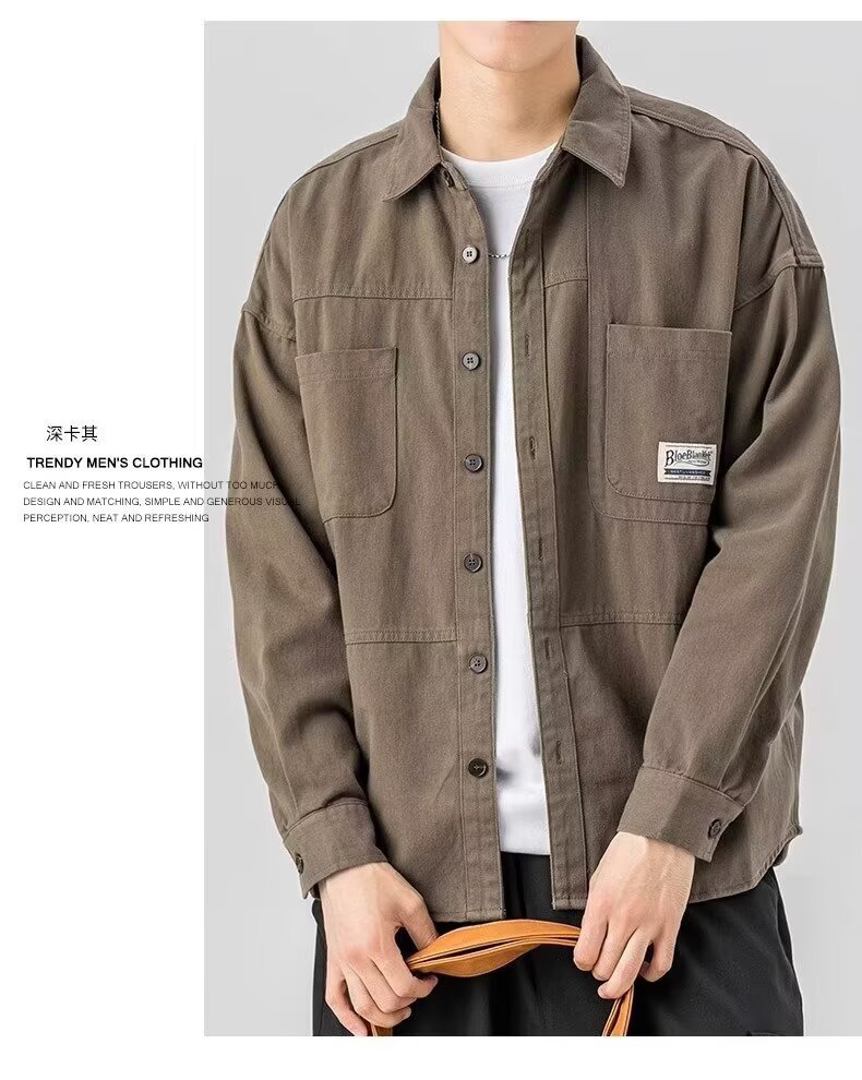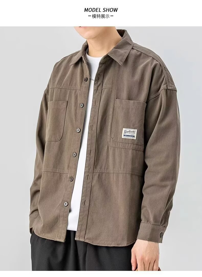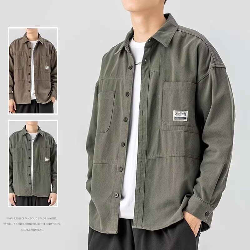 대외 무역 봄, 가을 작업 셔츠 남성 캐주얼 긴팔 셔츠 잘 생긴 트렌디 루즈 카디건 아메리칸 탑 재킷스토어 가기