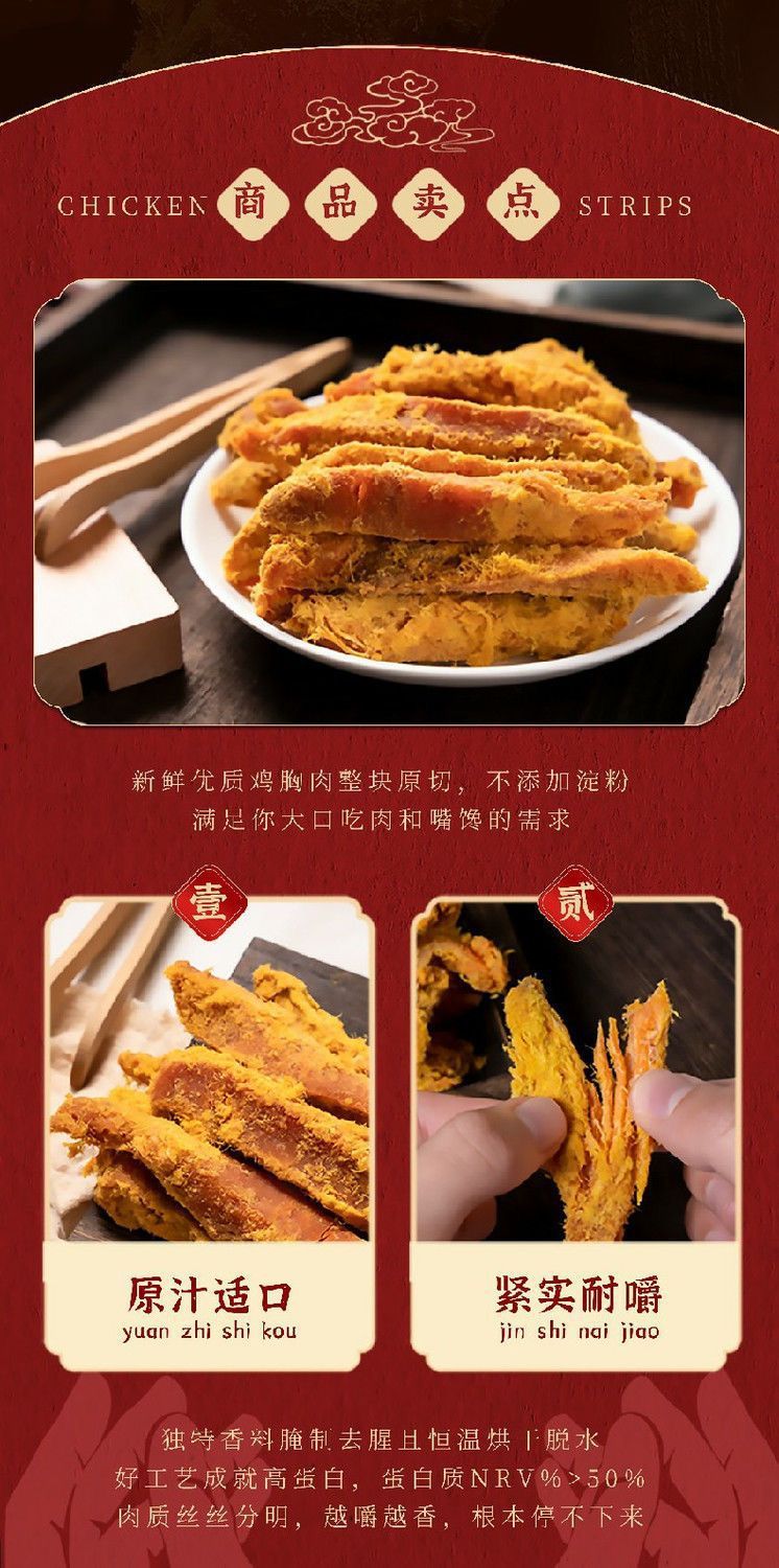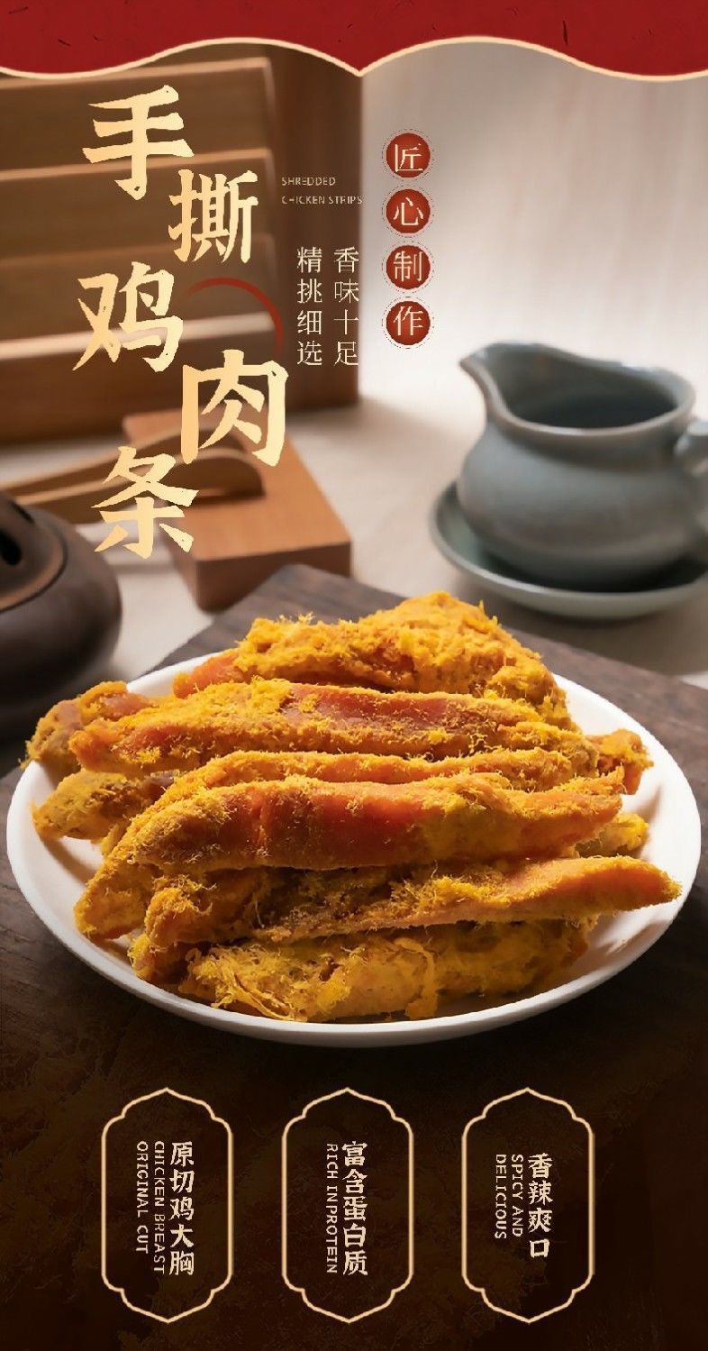고단백 손으로 찢은 치킨 스트립, 오리지널 컷 닭 가슴살 육포 스트립, 간식을 위한 바로 먹을 수 있는 간식, 배고픔을 해소하는 조림 스낵스토어 가기