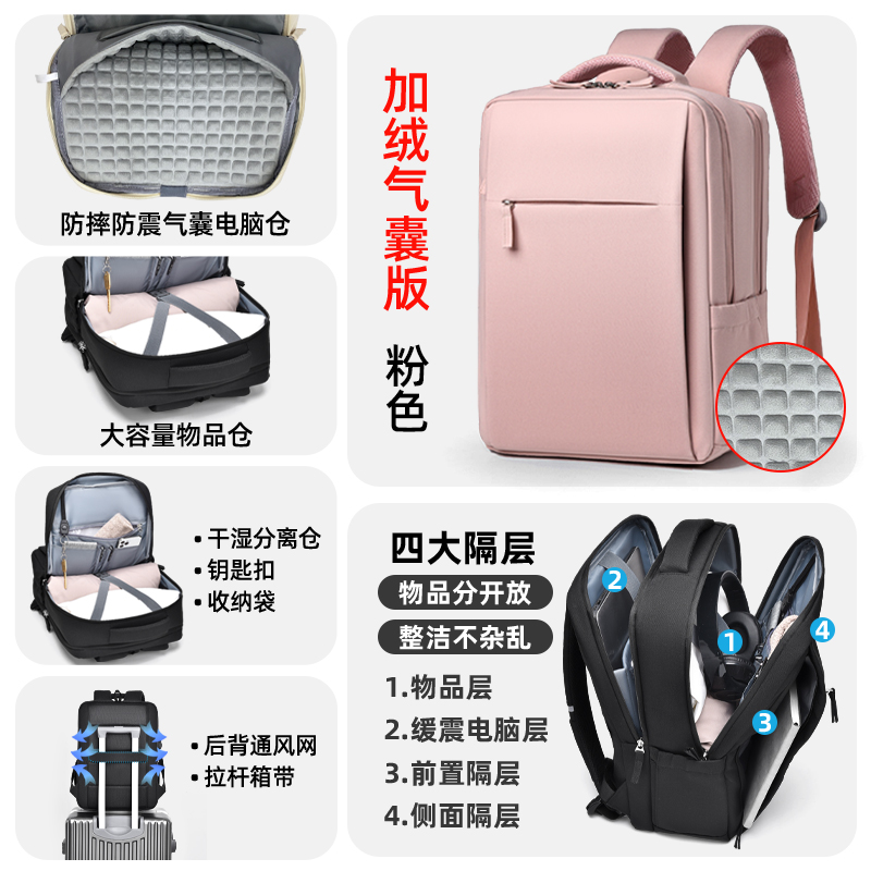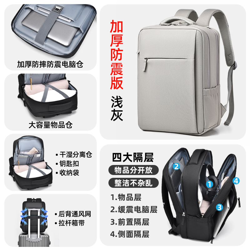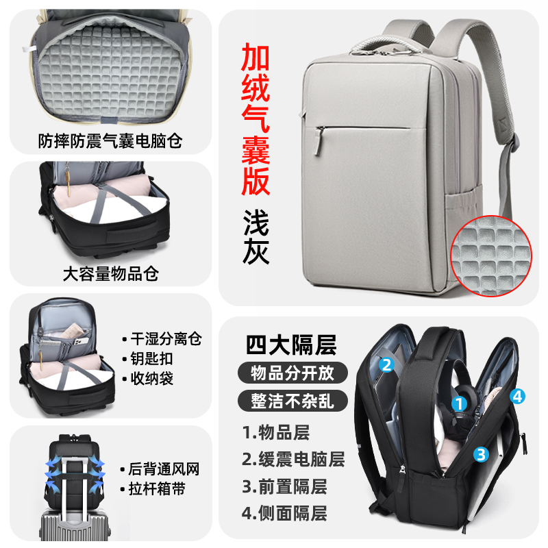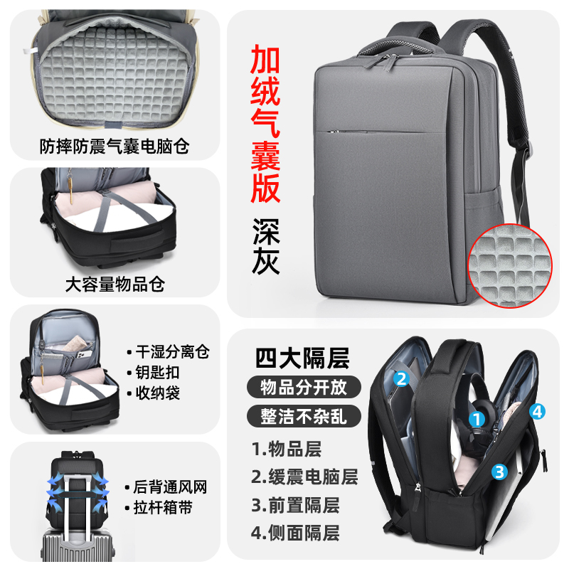 • 다크그레이-4층창고-360 ° 벨벳 에어백 [SBS 지퍼 + 건식 및 습식 분리 + 후면 환기망 + 이중 물컵 수납공간]
