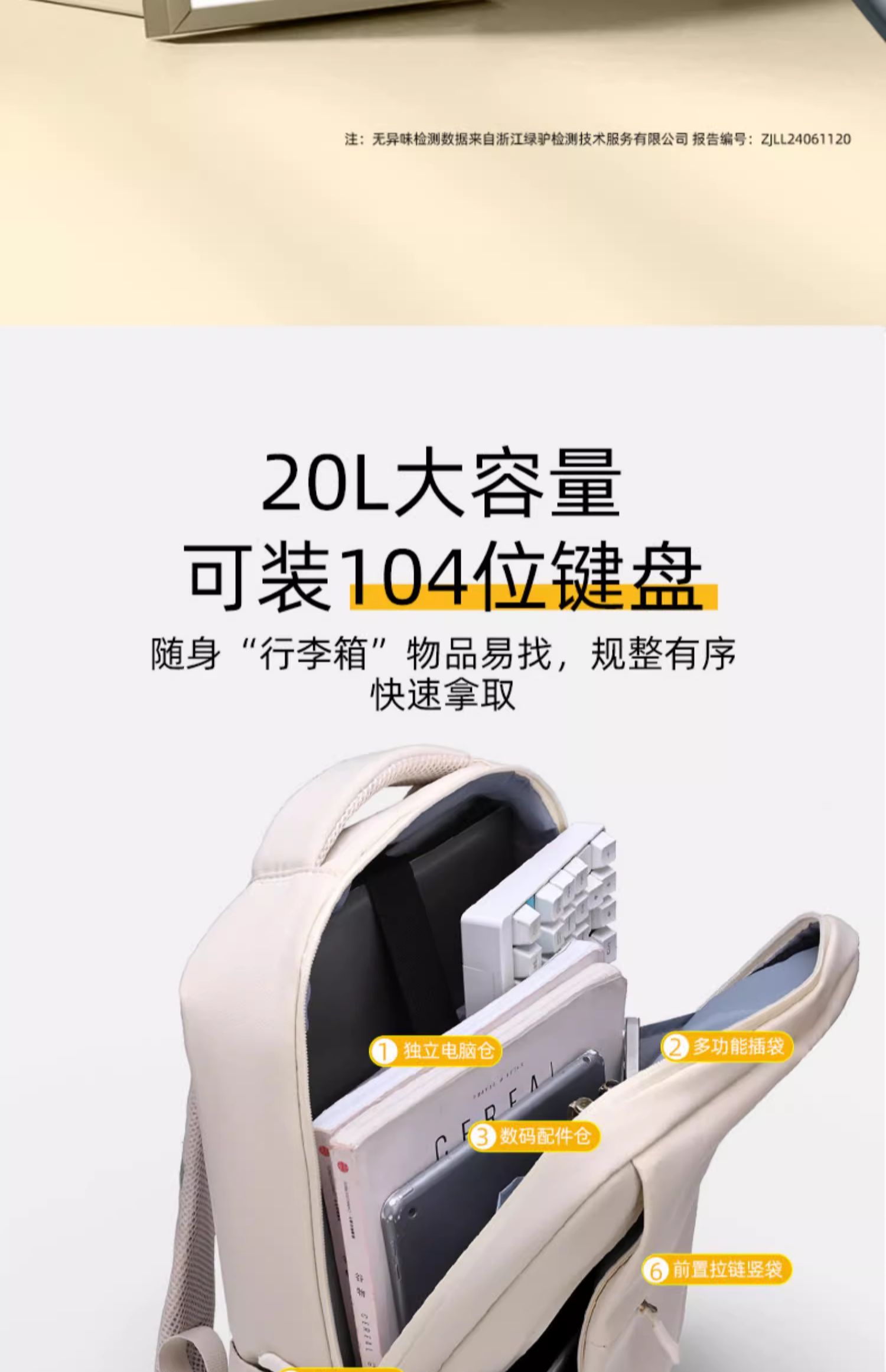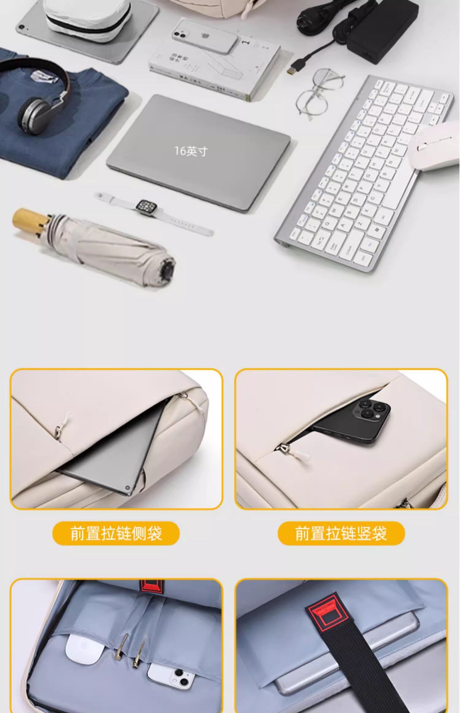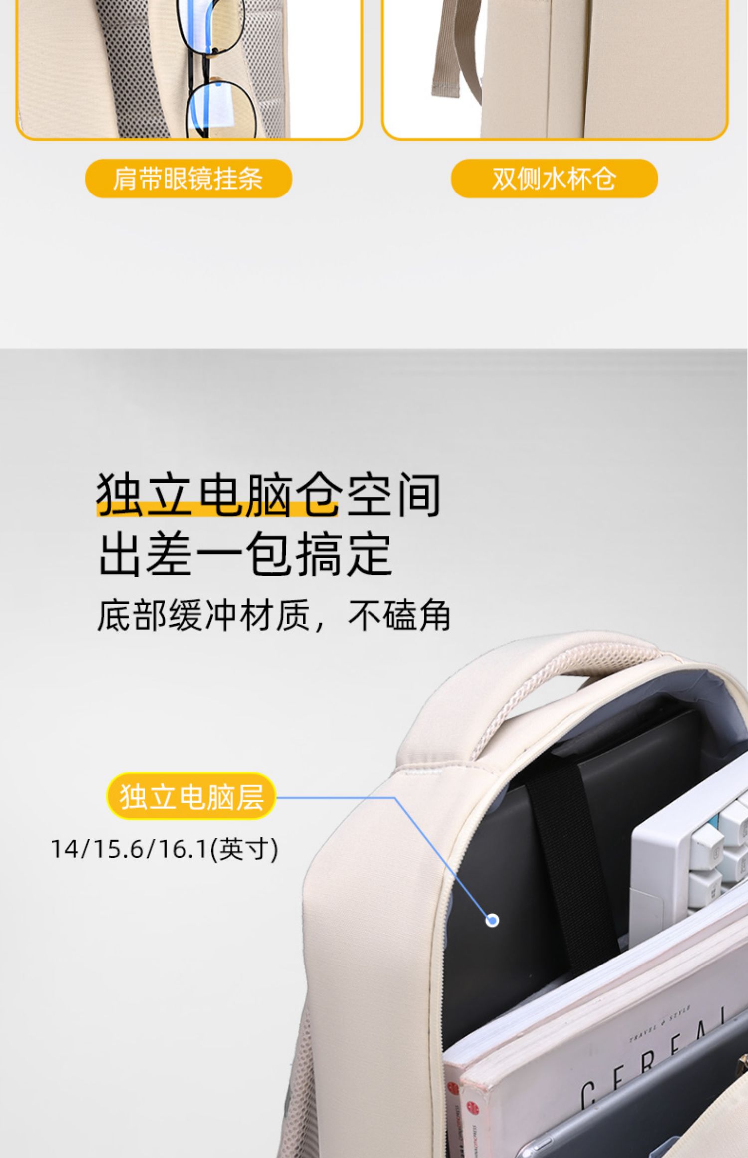 • 황백색 4층 창고-360 ° 벨벳 에어백 [SBS 지퍼 + 건식 및 습식 분리 + 후면 환기망 + 이중 물컵 수납공간]