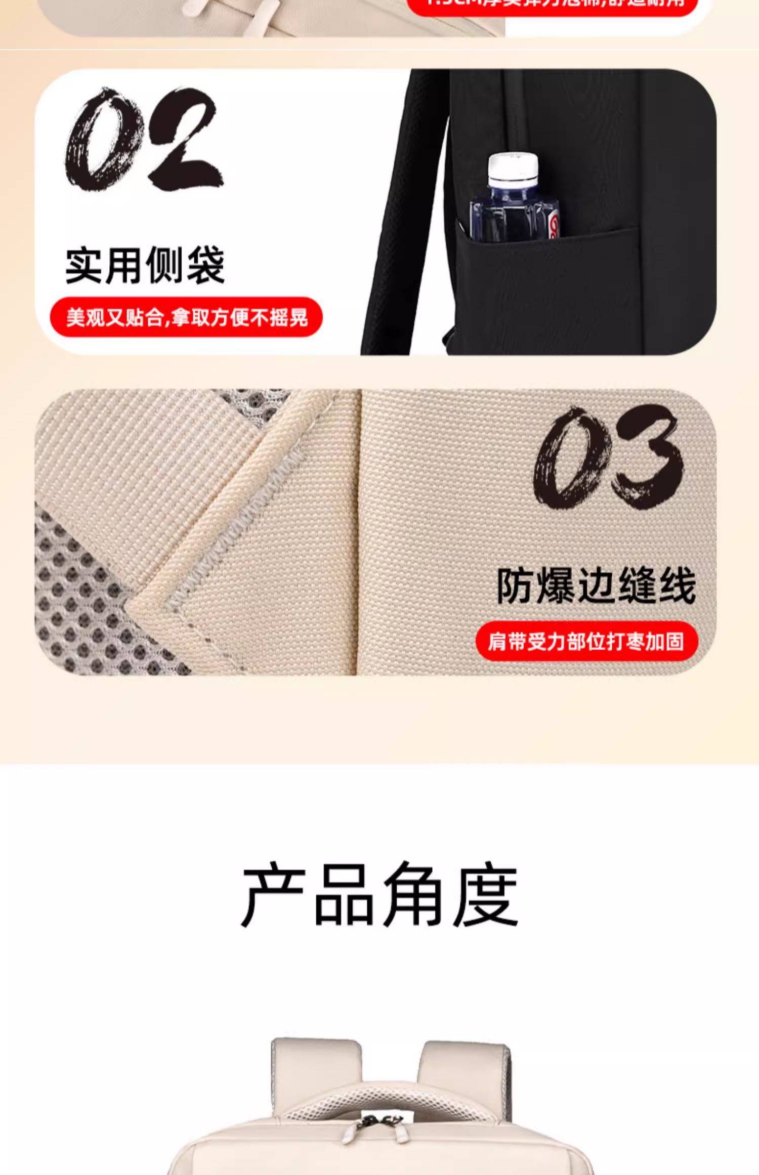 • 바닐라분말-4층창고-360 ° 벨벳 에어백 [SBS 지퍼 + 건식 및 습식 분리 + 후면 환기망 + 이중 물컵 수납공간]