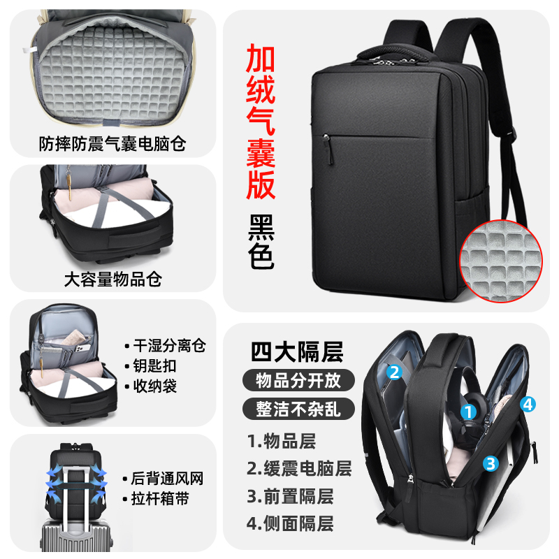 • 신비한 흑색4층창고-360 ° 벨벳 에어백 [SBS 지퍼 + 건식 및 습식 분리 + 후면 환기망 + 이중 물컵 수납공간]