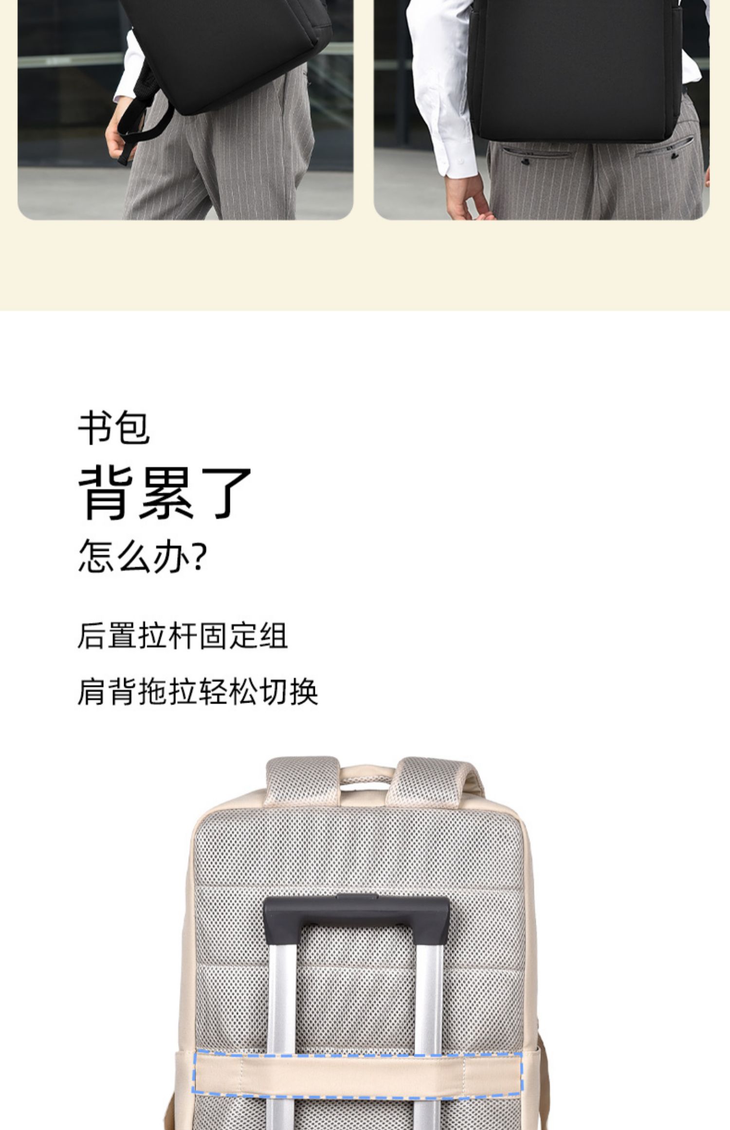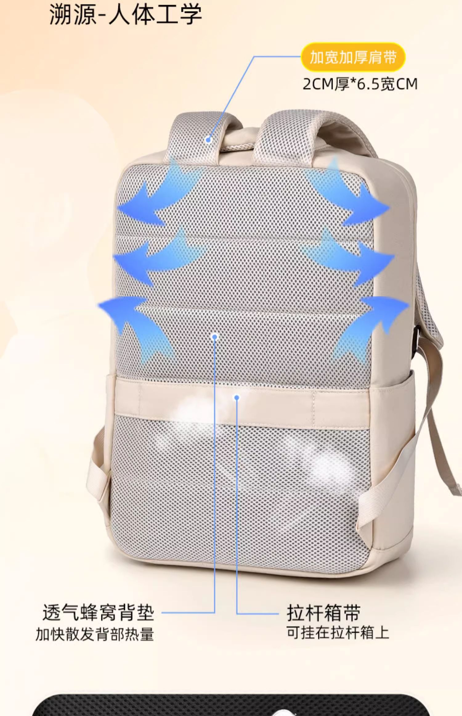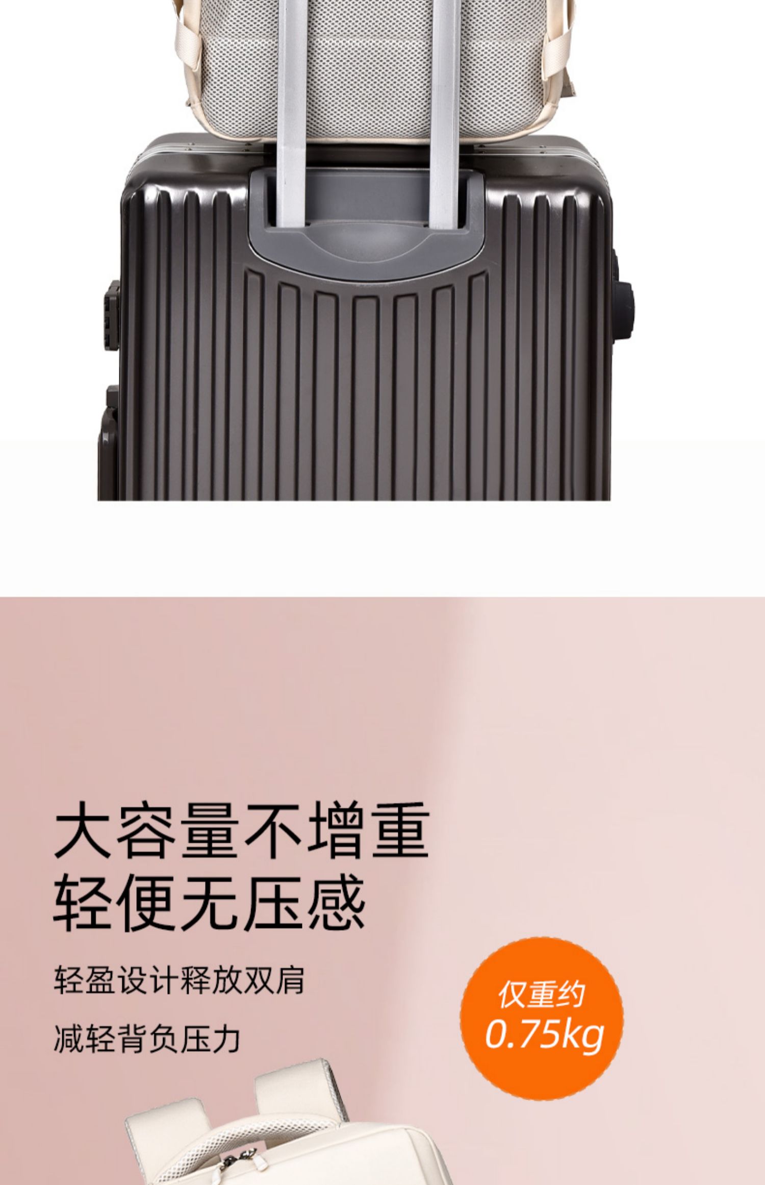 • 오프화이트 - [SBS 지퍼 + 뒷면 히든포켓 + 더블물컵 수납공간 + 트롤리 케이스 스트랩]