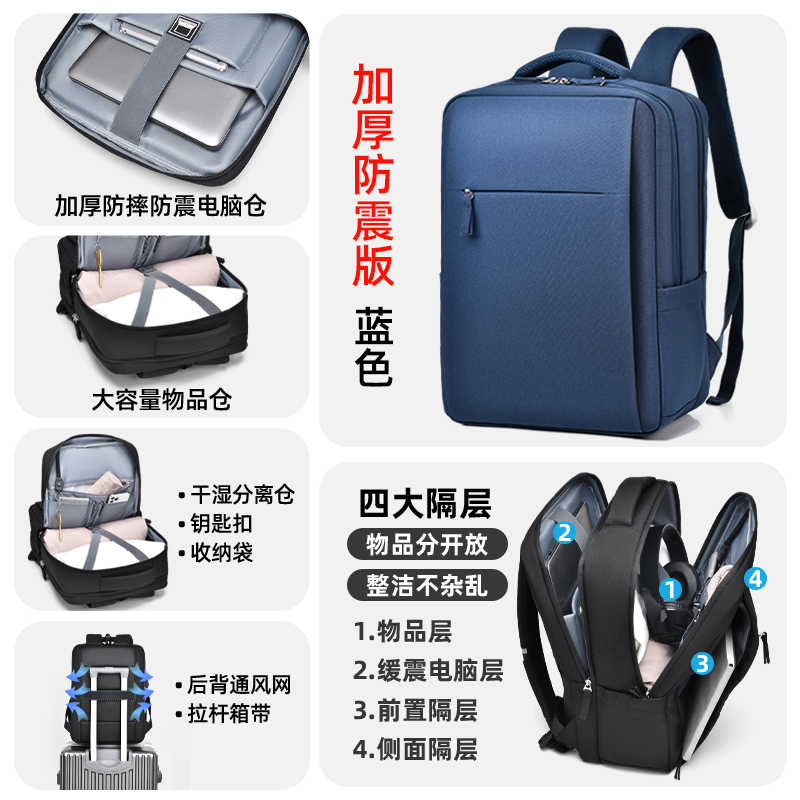 • 레이크블루-4층창고-360 ° 벨벳 에어백 [SBS 지퍼 + 건식 및 습식 분리 + 후면 환기망 + 이중 물컵 수납공간]