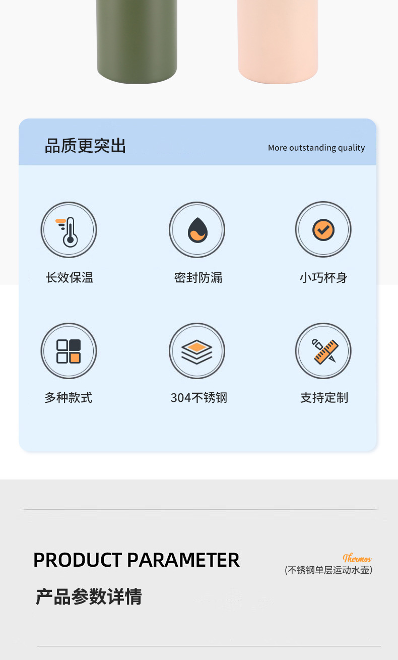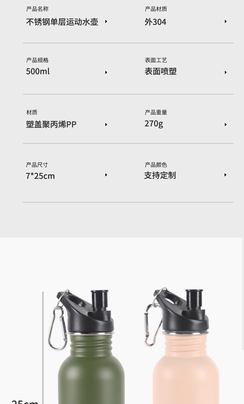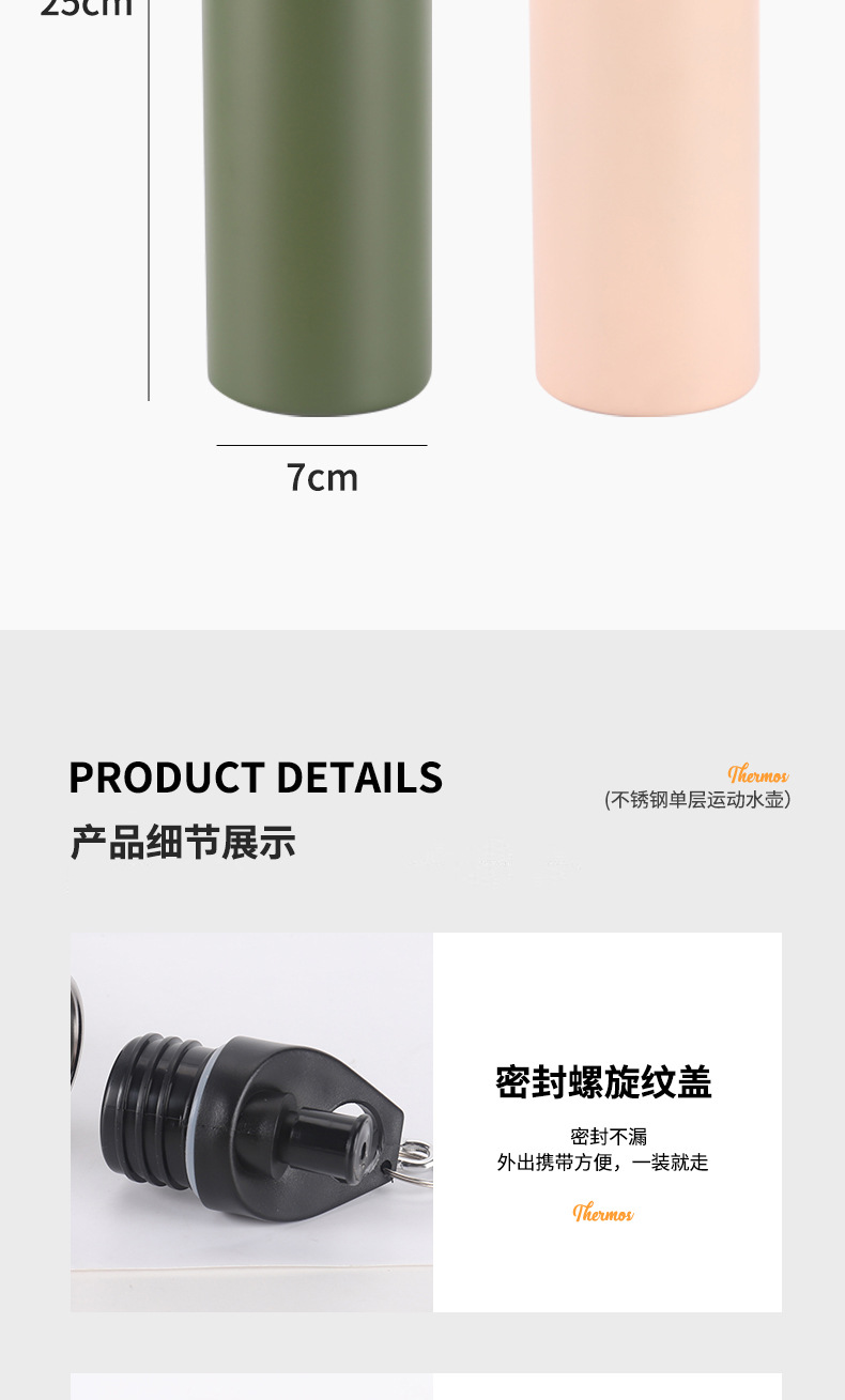 304 스테인레스 스틸 대형 입 스포츠 물병 야외 손잡이 단일 레이어 절연 컵 국경 간 등산 휴대용 냉수 병