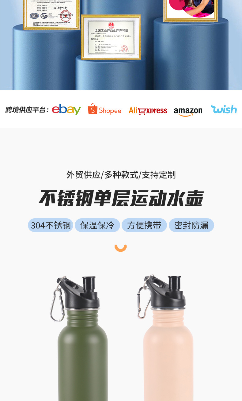 304 스테인레스 스틸 대형 입 스포츠 물병 야외 손잡이 단일 레이어 절연 컵 국경 간 등산 휴대용 냉수 병스토어 가기