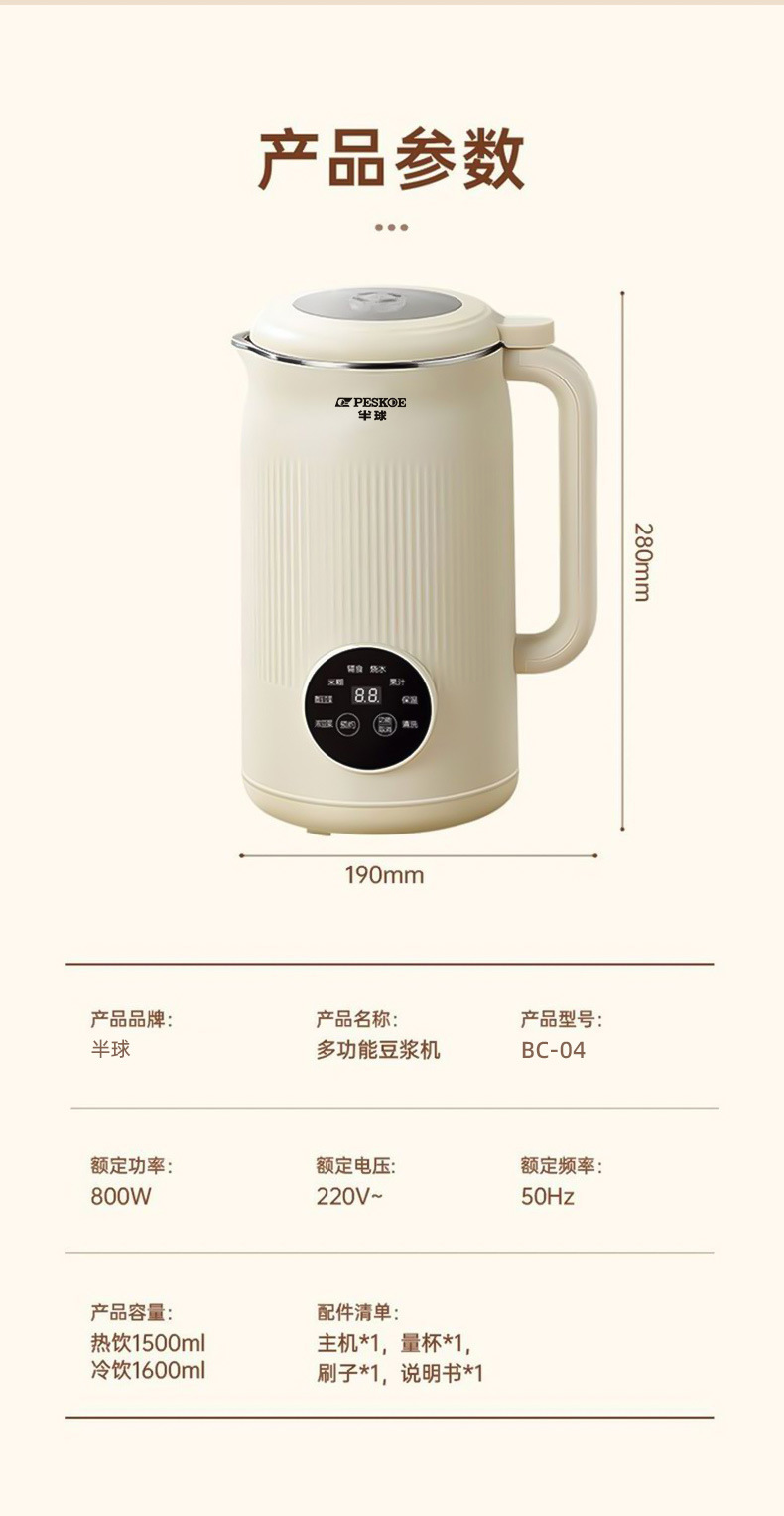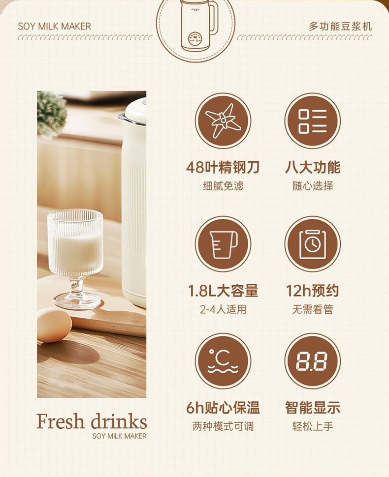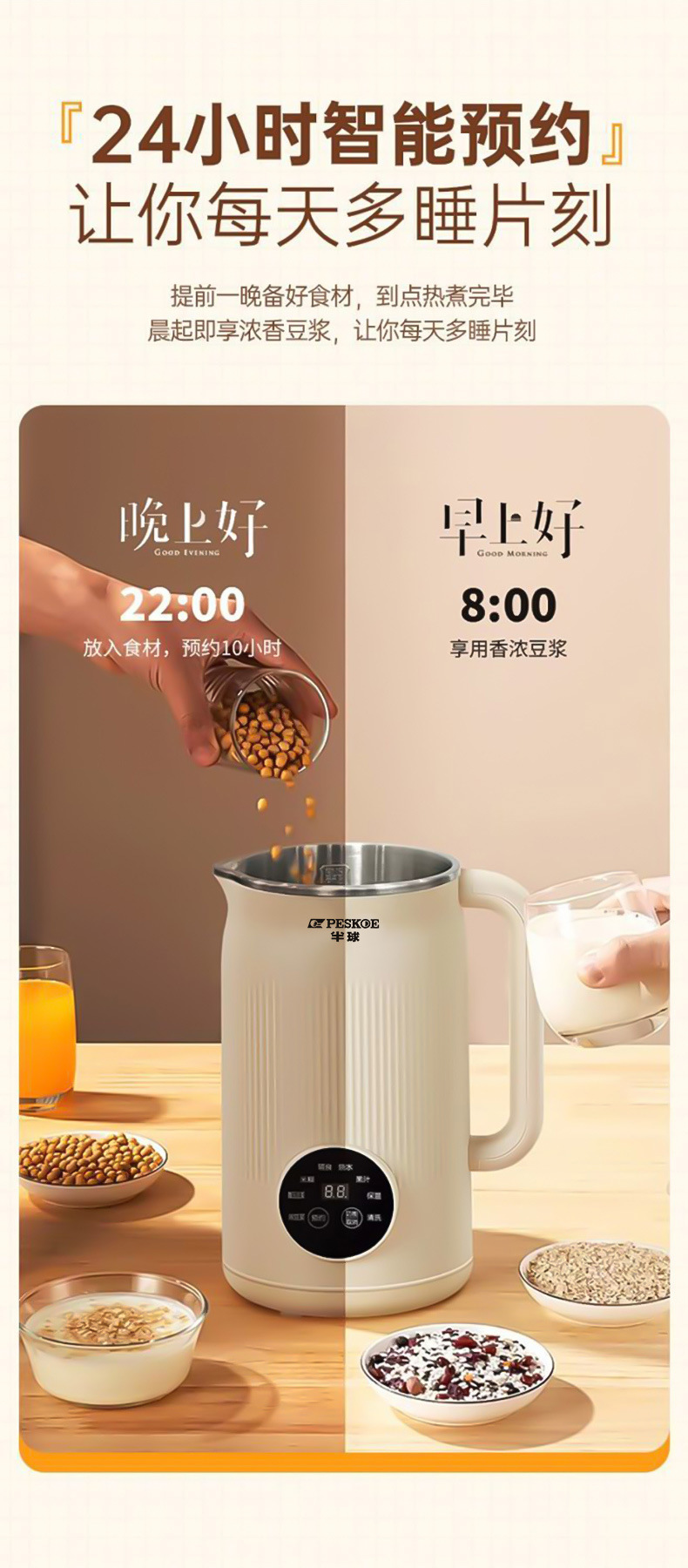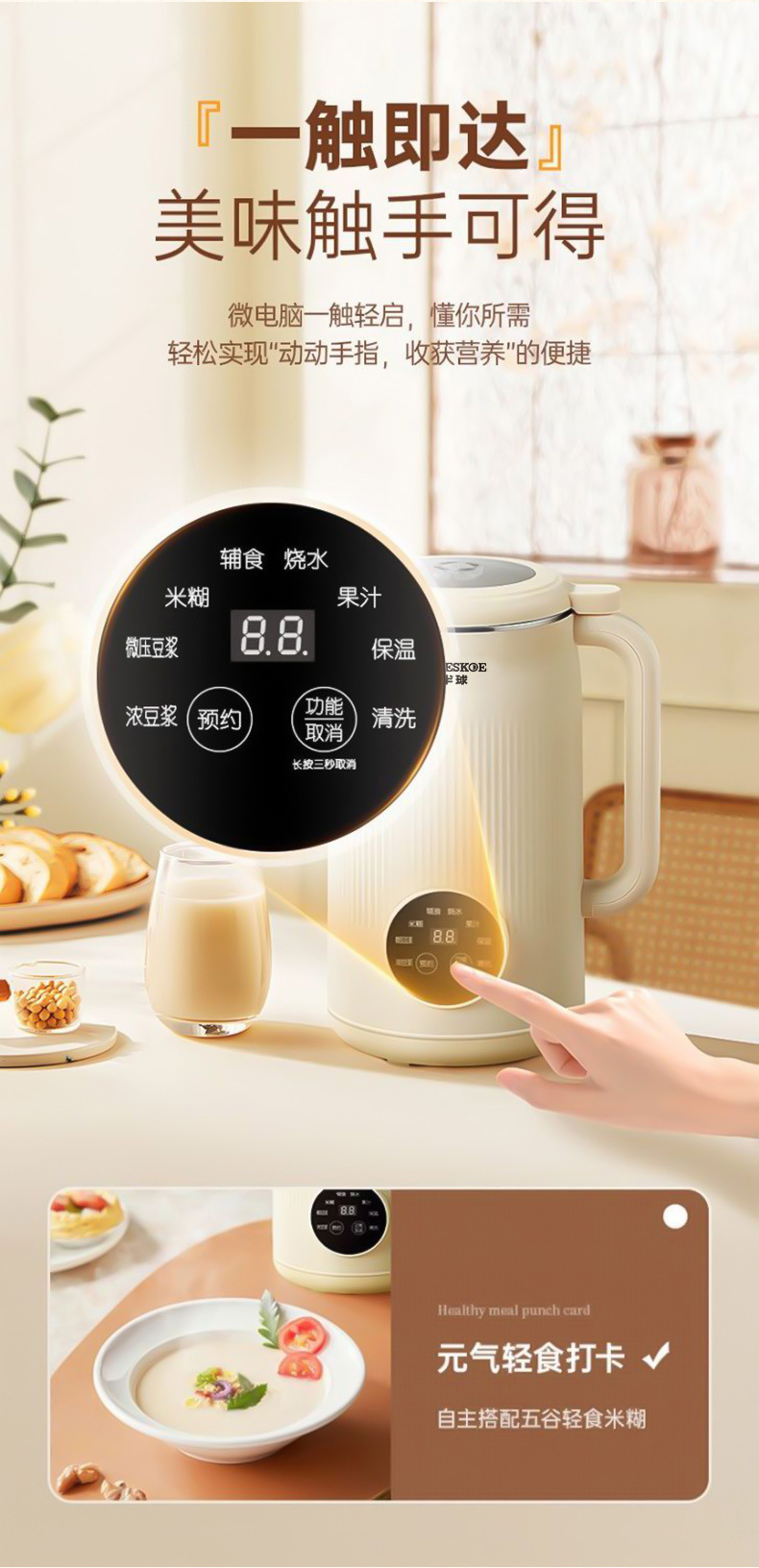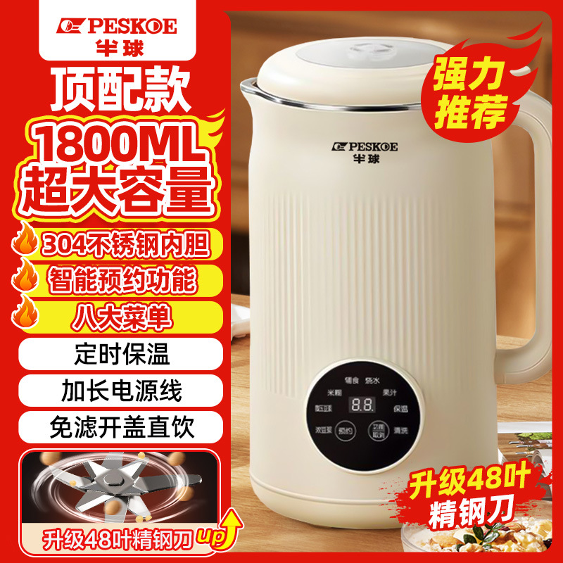 • [1.8L] 48날 스테인리스 칼 + 304 스테인리스 스틸 + 스마트 예약 + 8가지 메뉴 + 예약 보온 + 연장 전원 코드