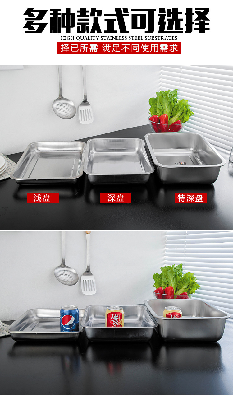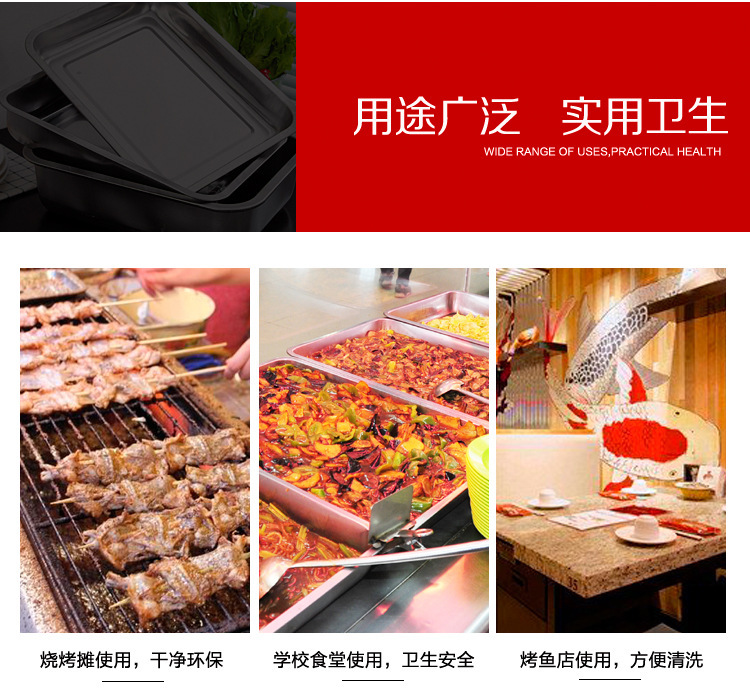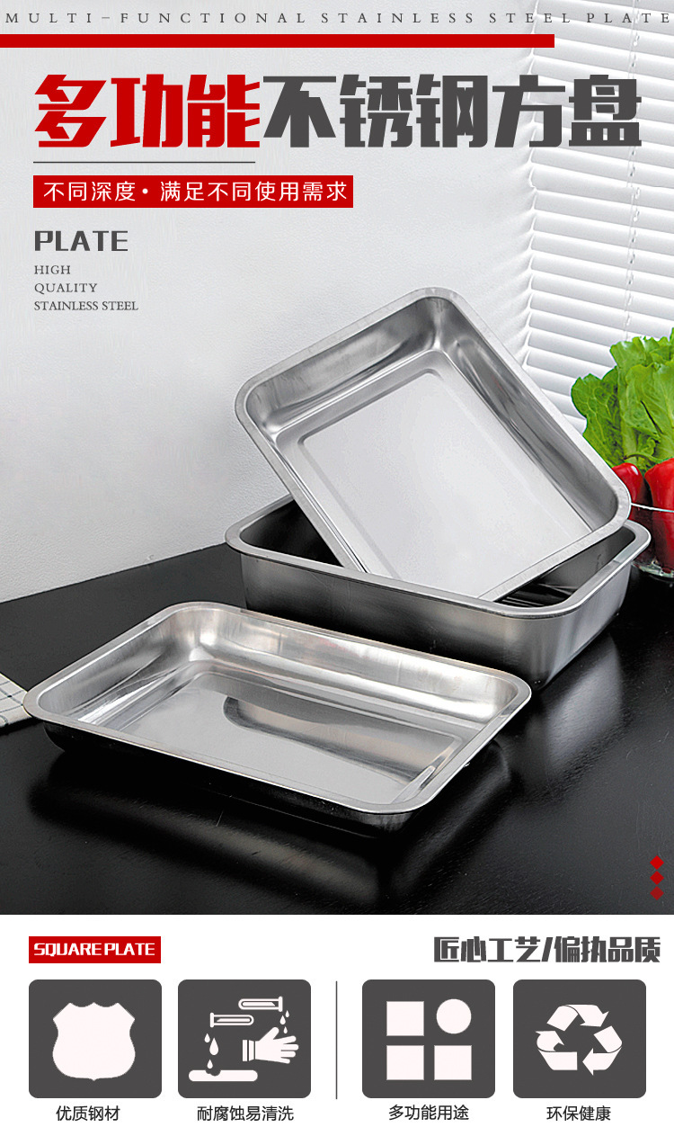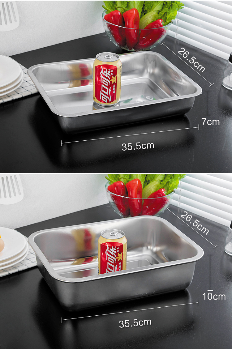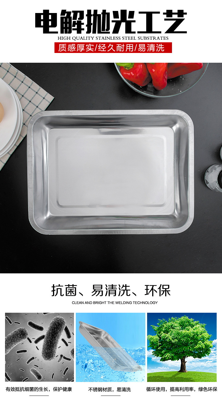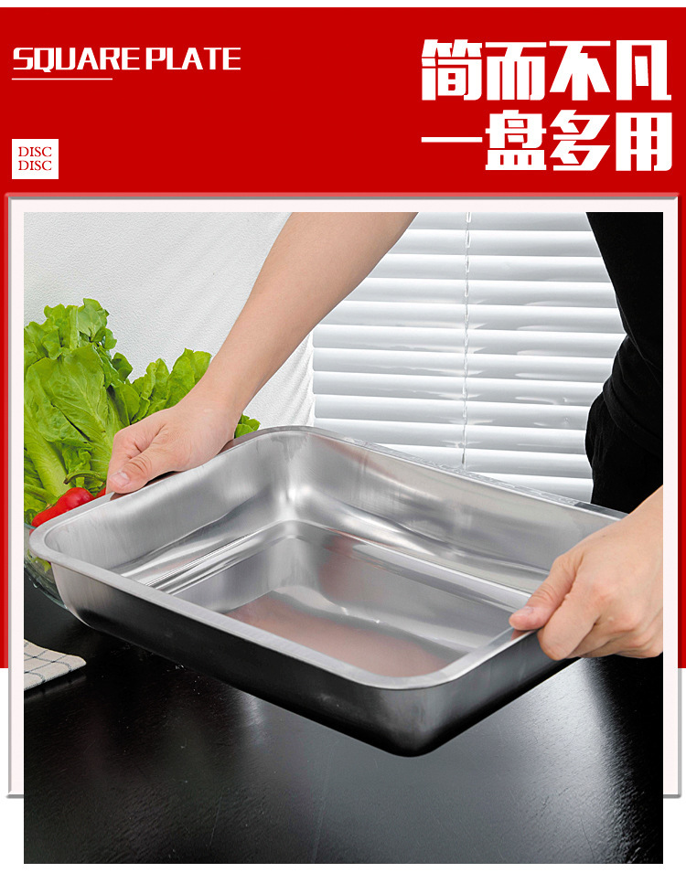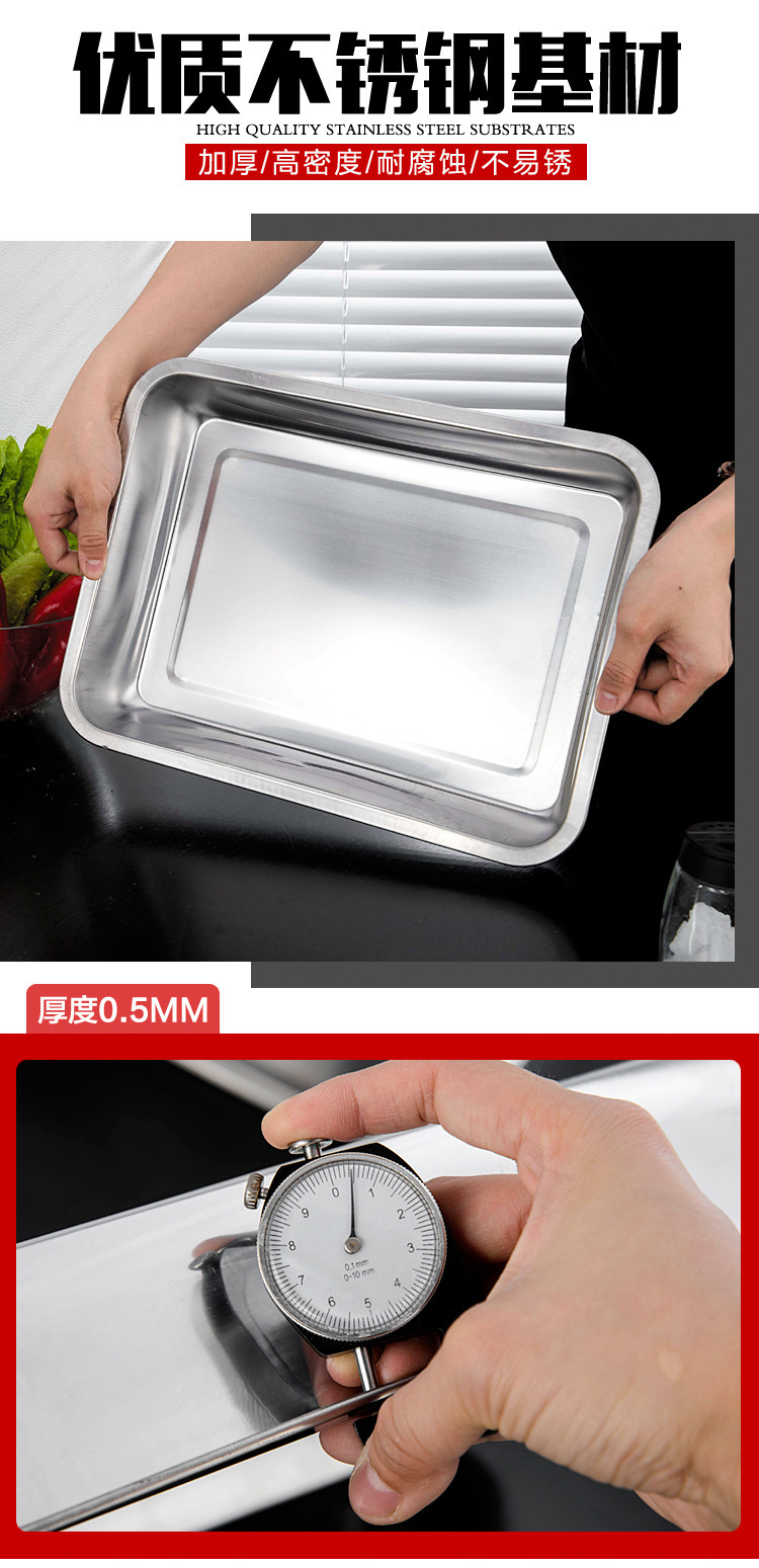스테인레스 스틸 트레이 두꺼운 사각형 접시 상업용 생선 구이 접시 저녁 식사 접시 가정용 철 접시 직사각형 접시