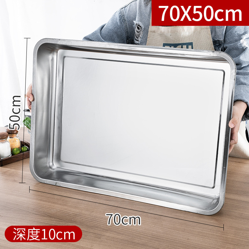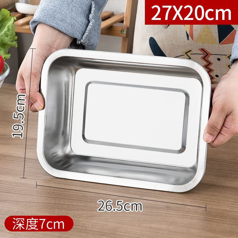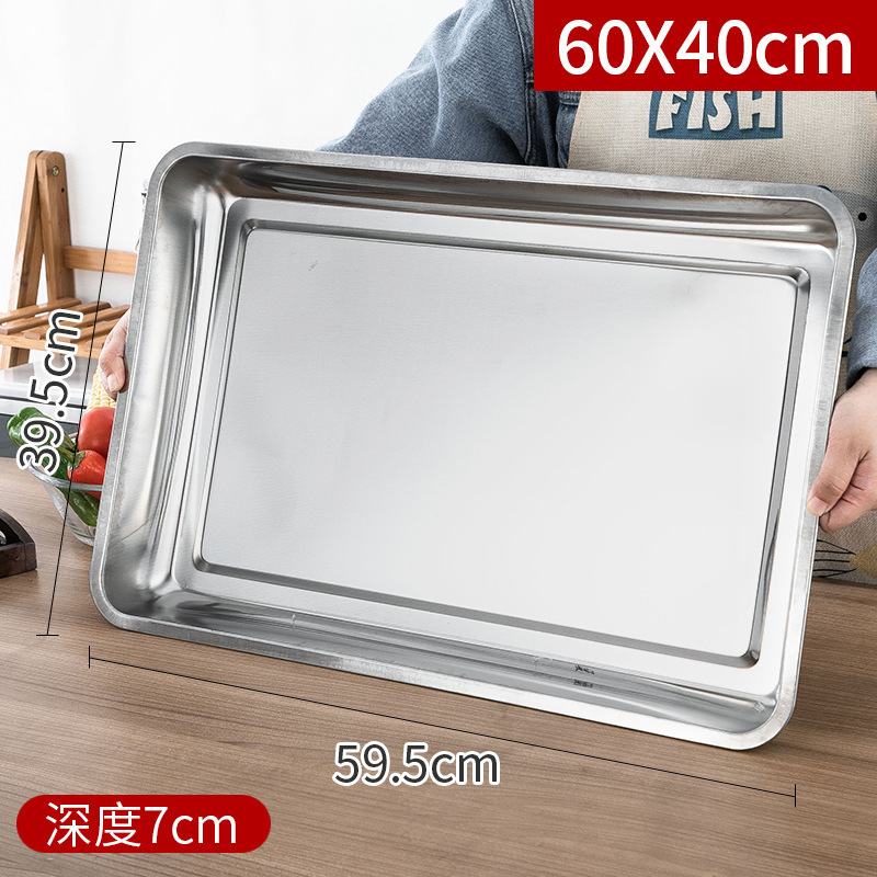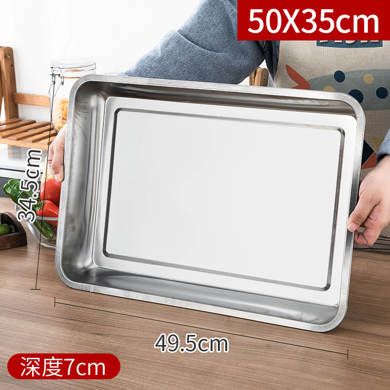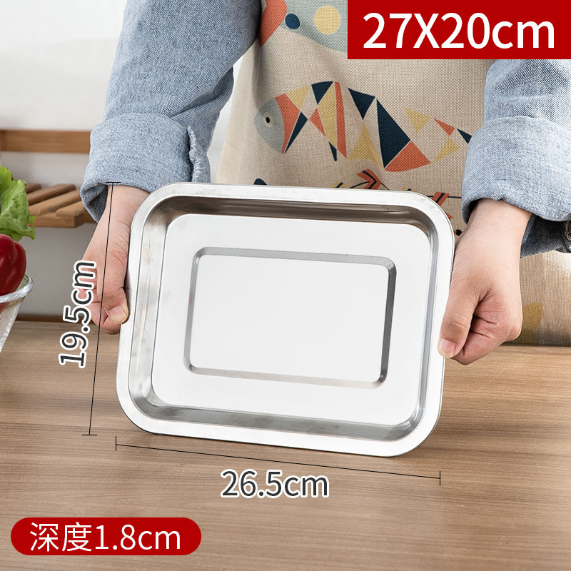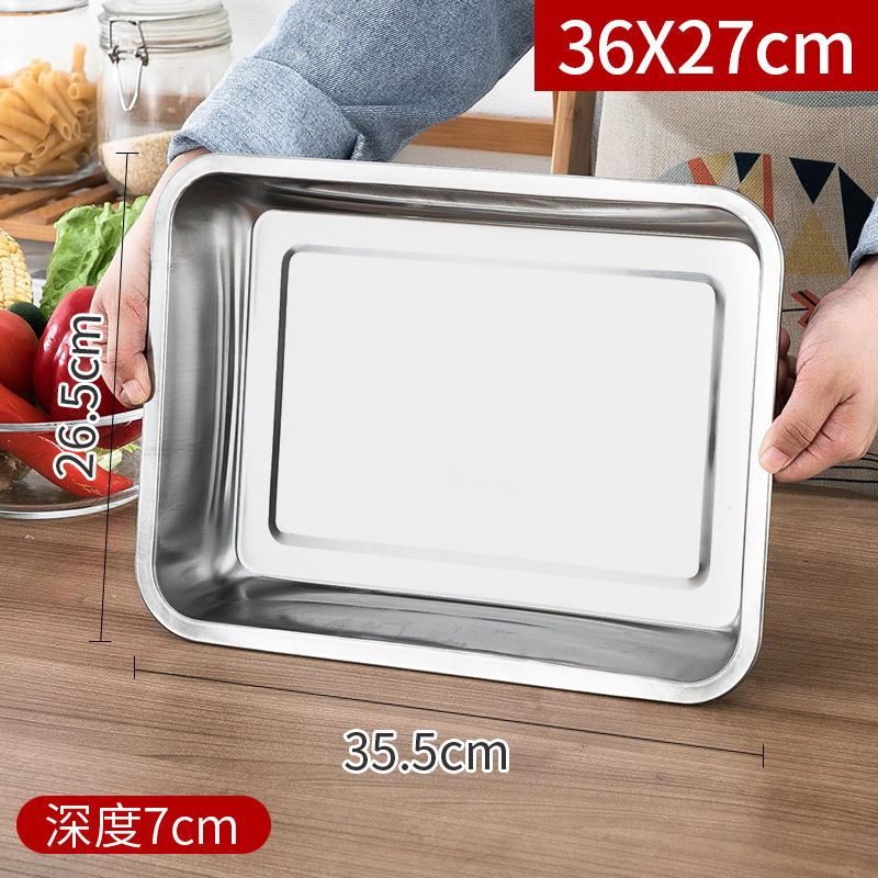 스테인레스 스틸 트레이 두꺼운 사각형 접시 상업용 생선 구이 접시 저녁 식사 접시 가정용 철 접시 직사각형 접시스토어 가기