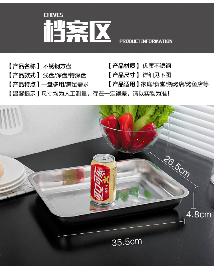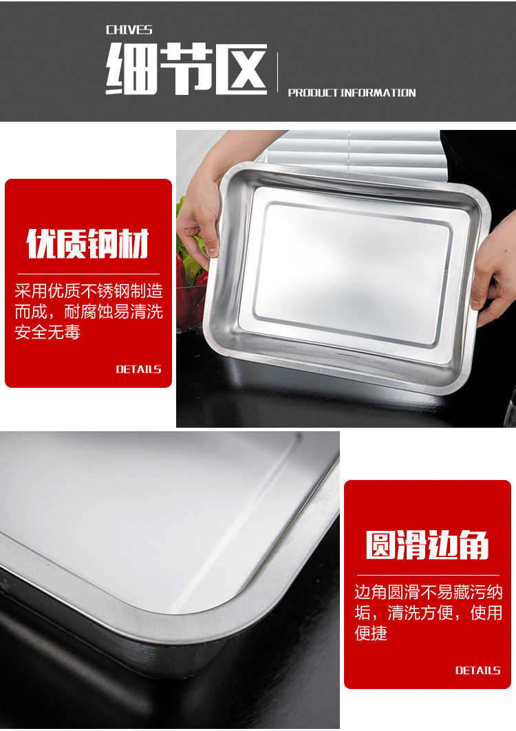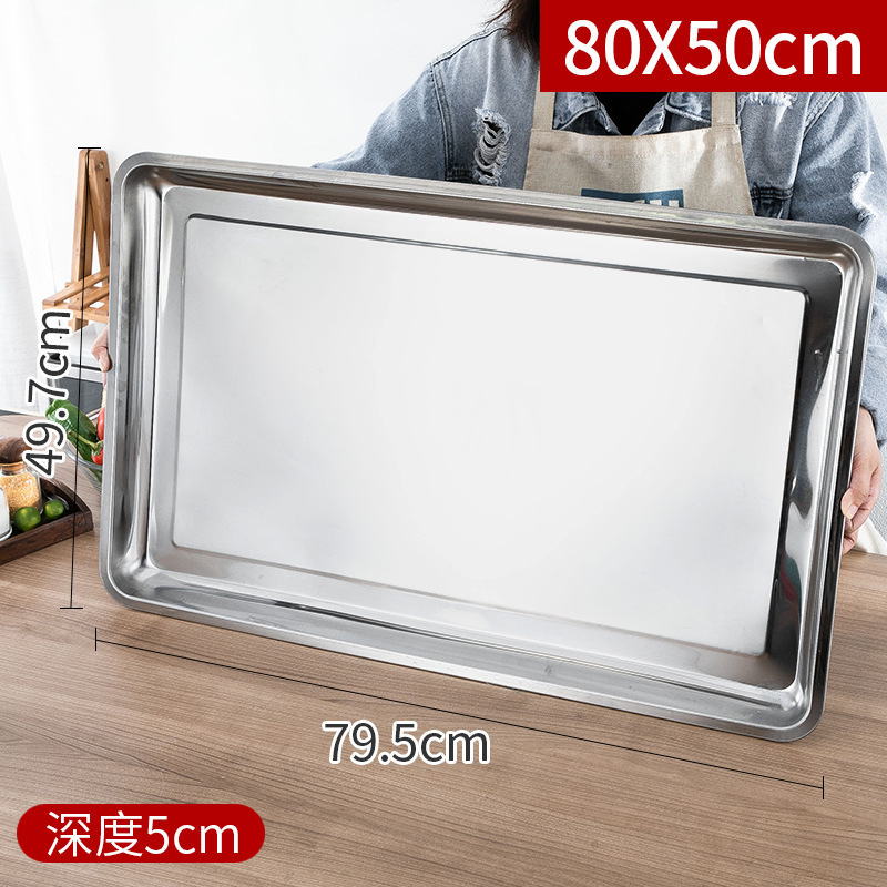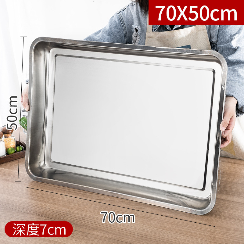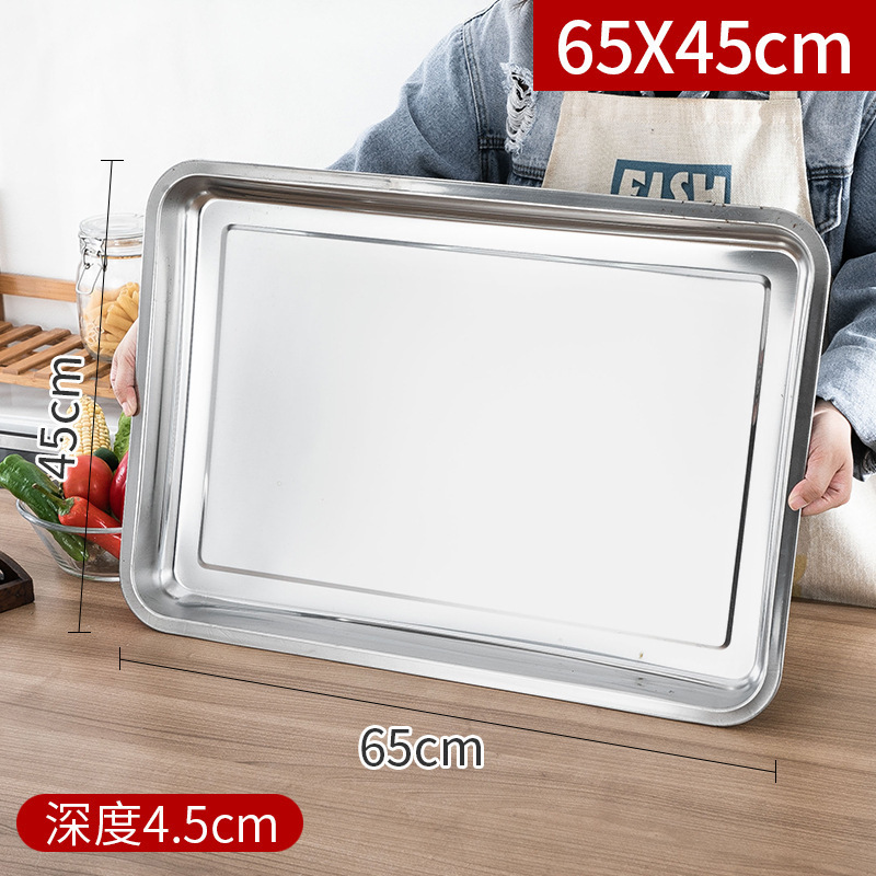 스테인레스 스틸 트레이 두꺼운 사각형 접시 상업용 생선 구이 접시 저녁 식사 접시 가정용 철 접시 직사각형 접시스토어 가기