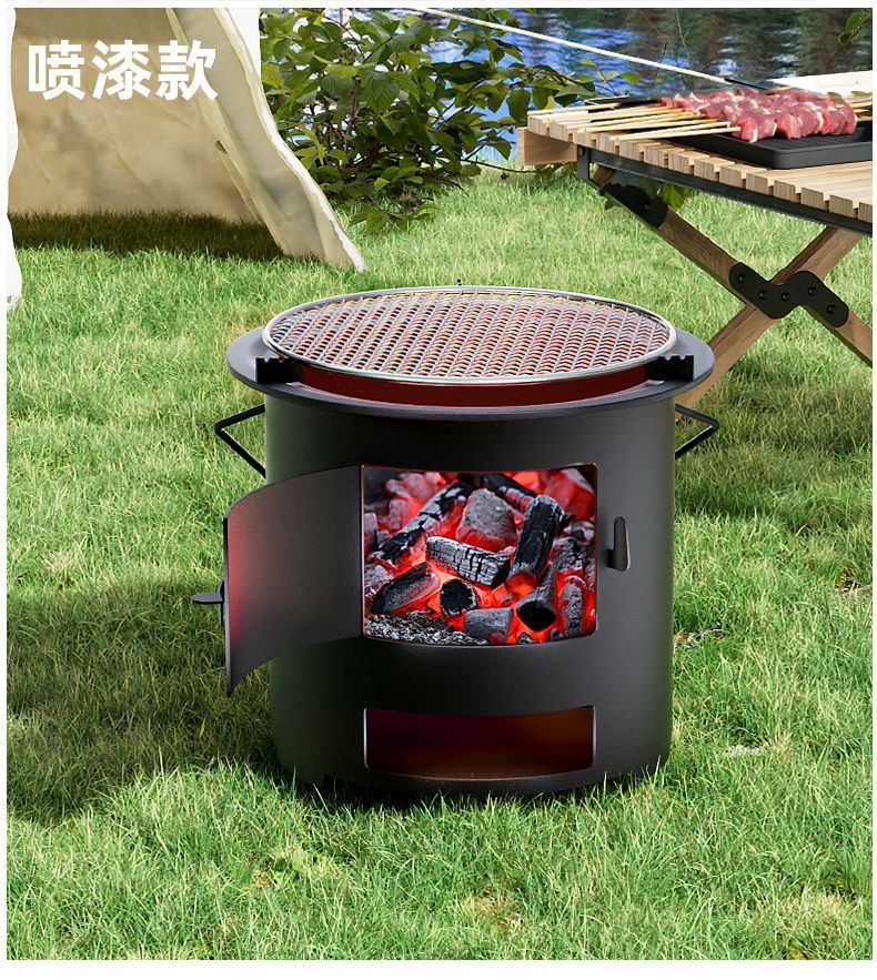 차를 끓이고 난방을 위한 철제 장작 숯 난로, 바베큐 야외 숯불 피크닉 가정용 바베큐 난로 Amazon