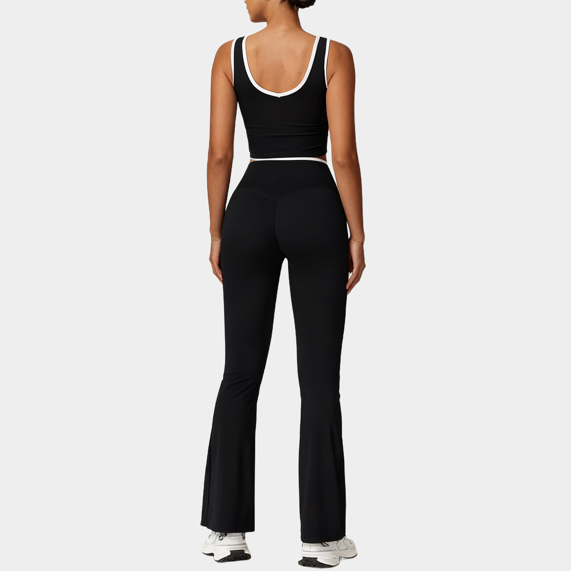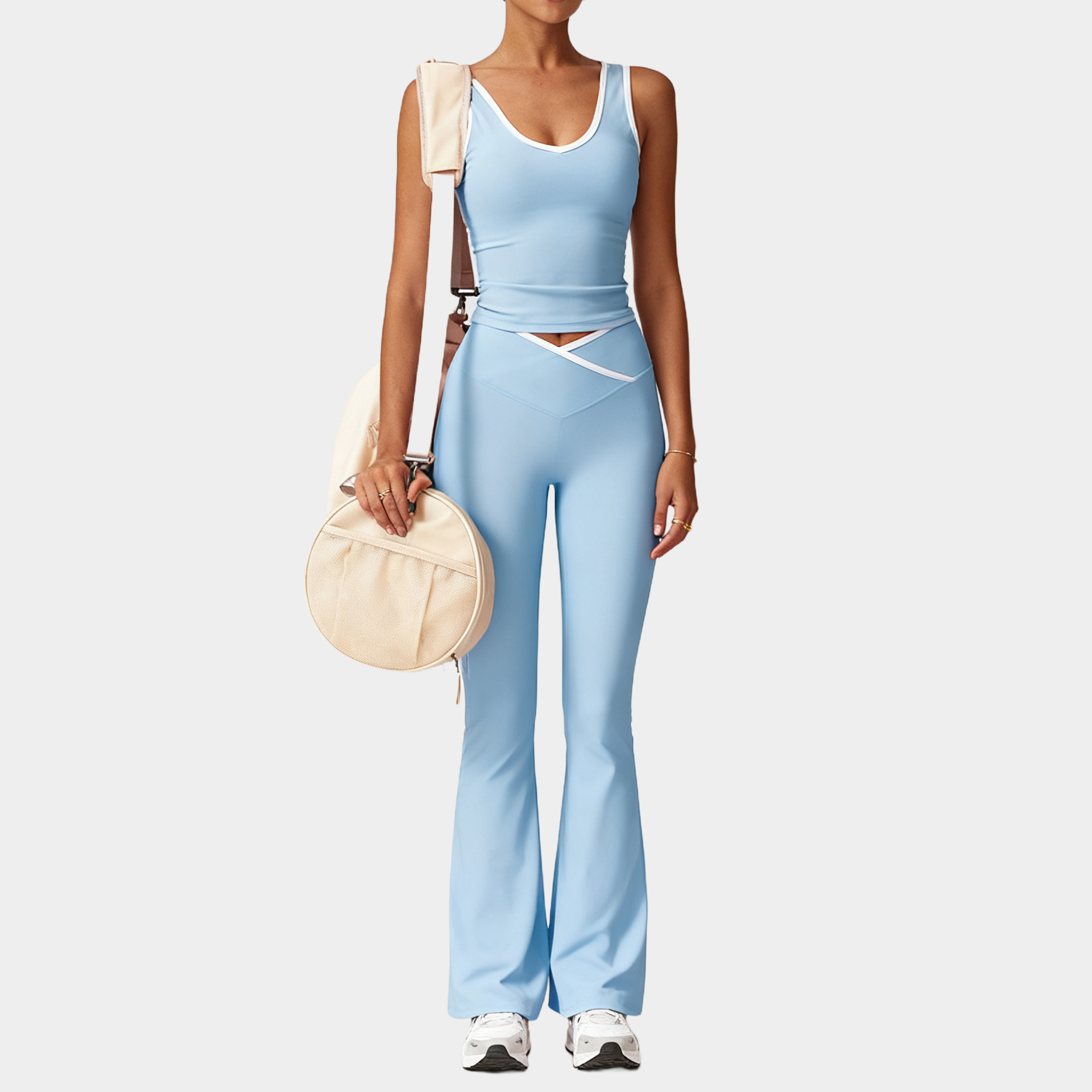 가을 겨울 신작 요가복 세트 속건성 크로스보더 여성 스포츠 조끼 피트니스 누드 컬러 대비 마이크로 플레어 요가 바지스토어 가기