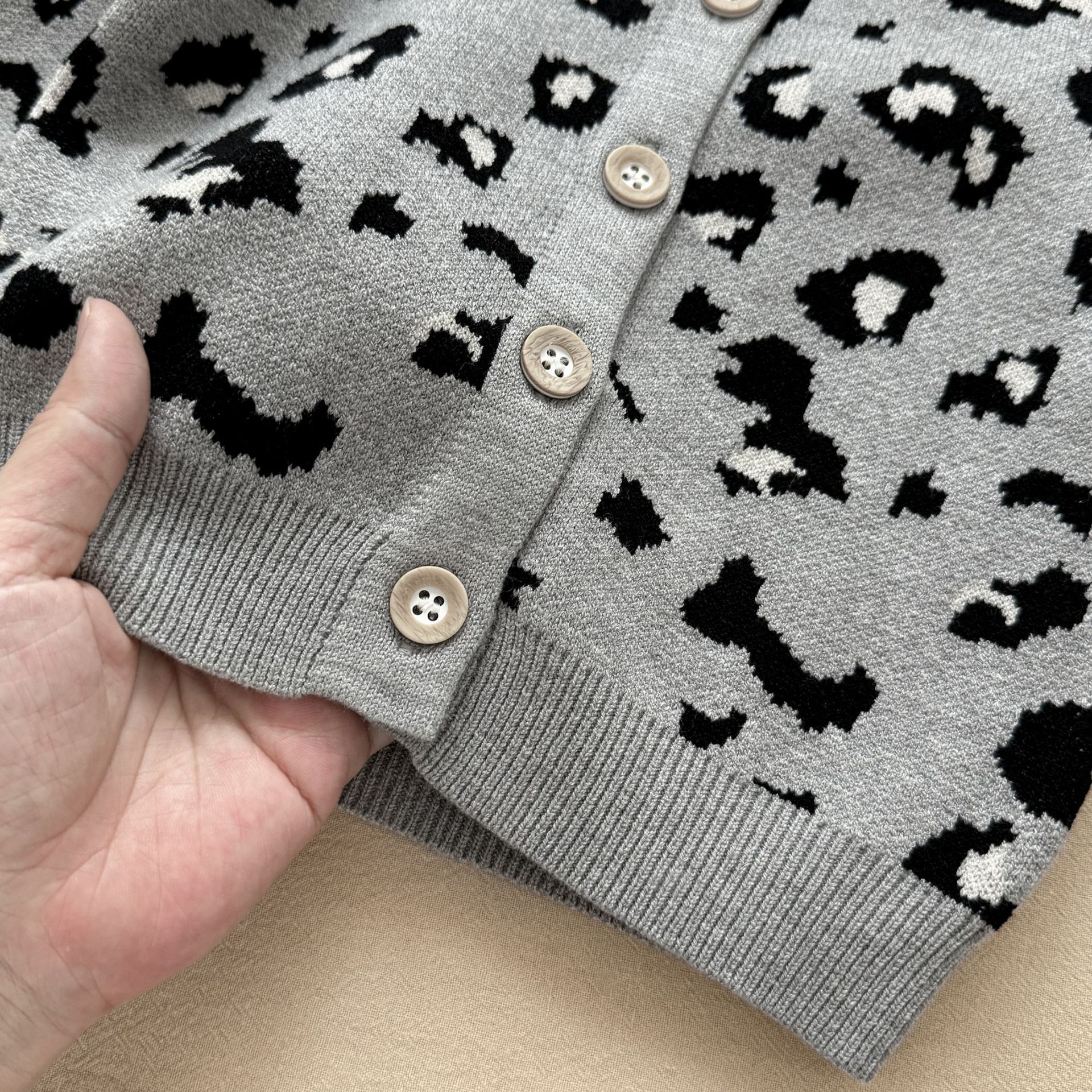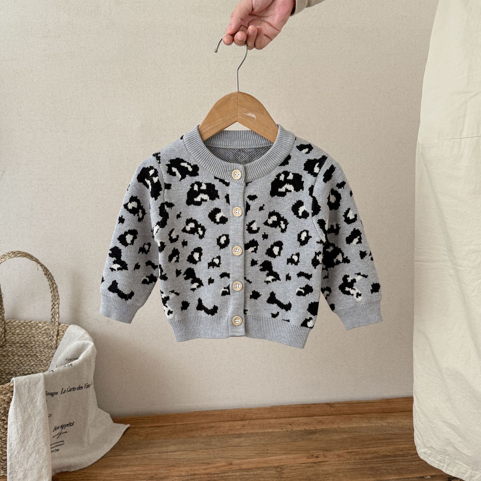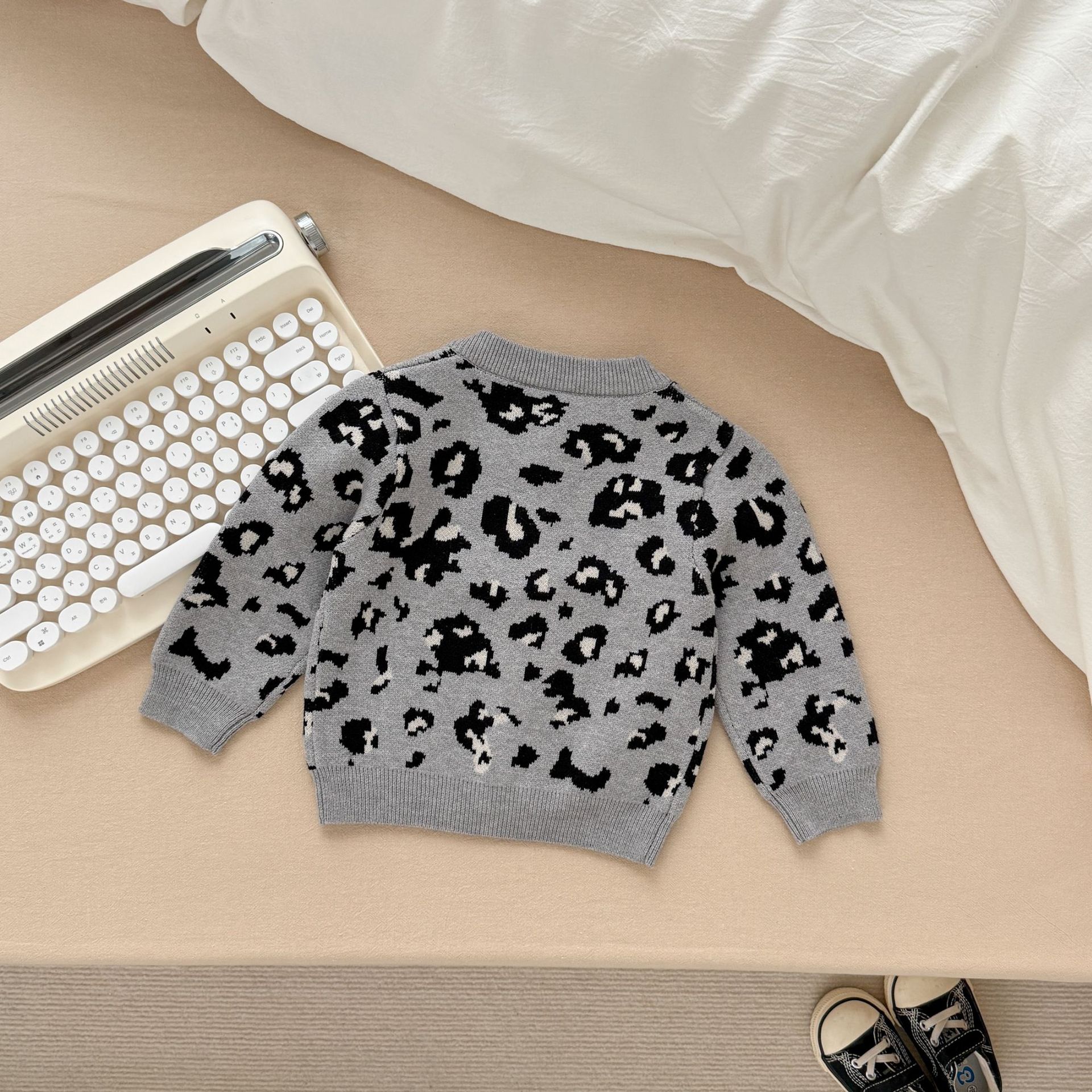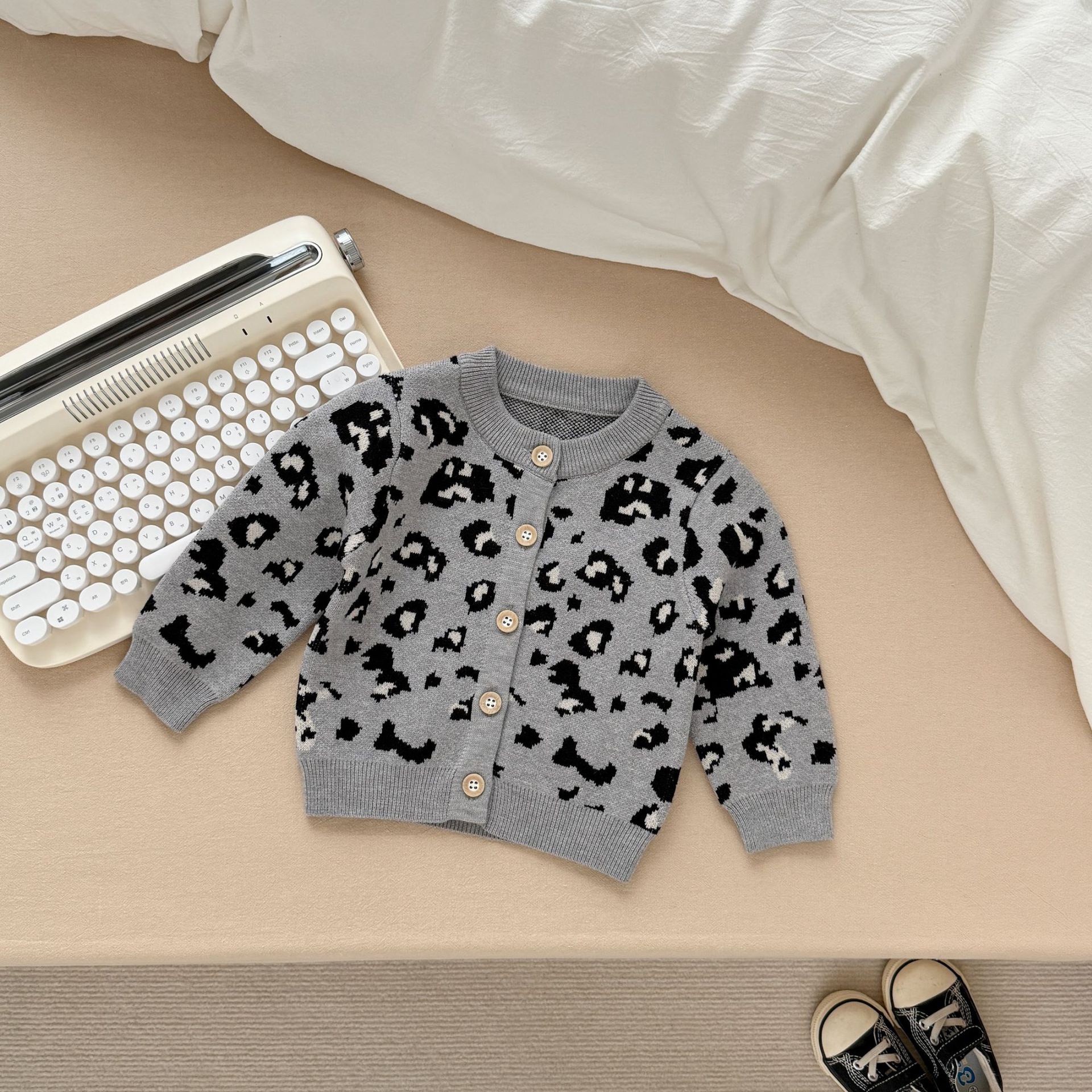 Ins 봄, 가을 아기 한국 스타일 니트 스웨터 아기 소녀 유행 레오파드 프린트 니트 카디건 코트 탑
