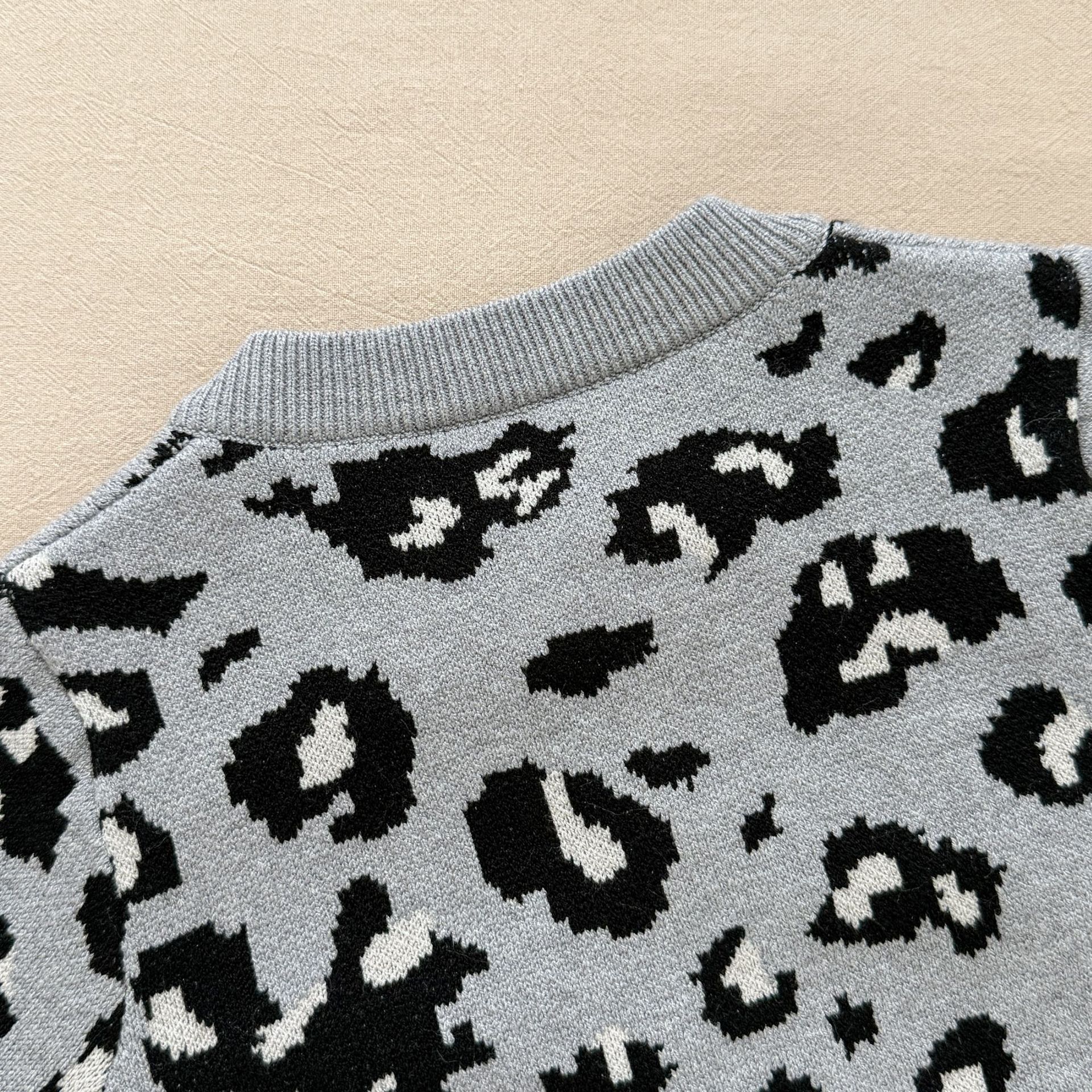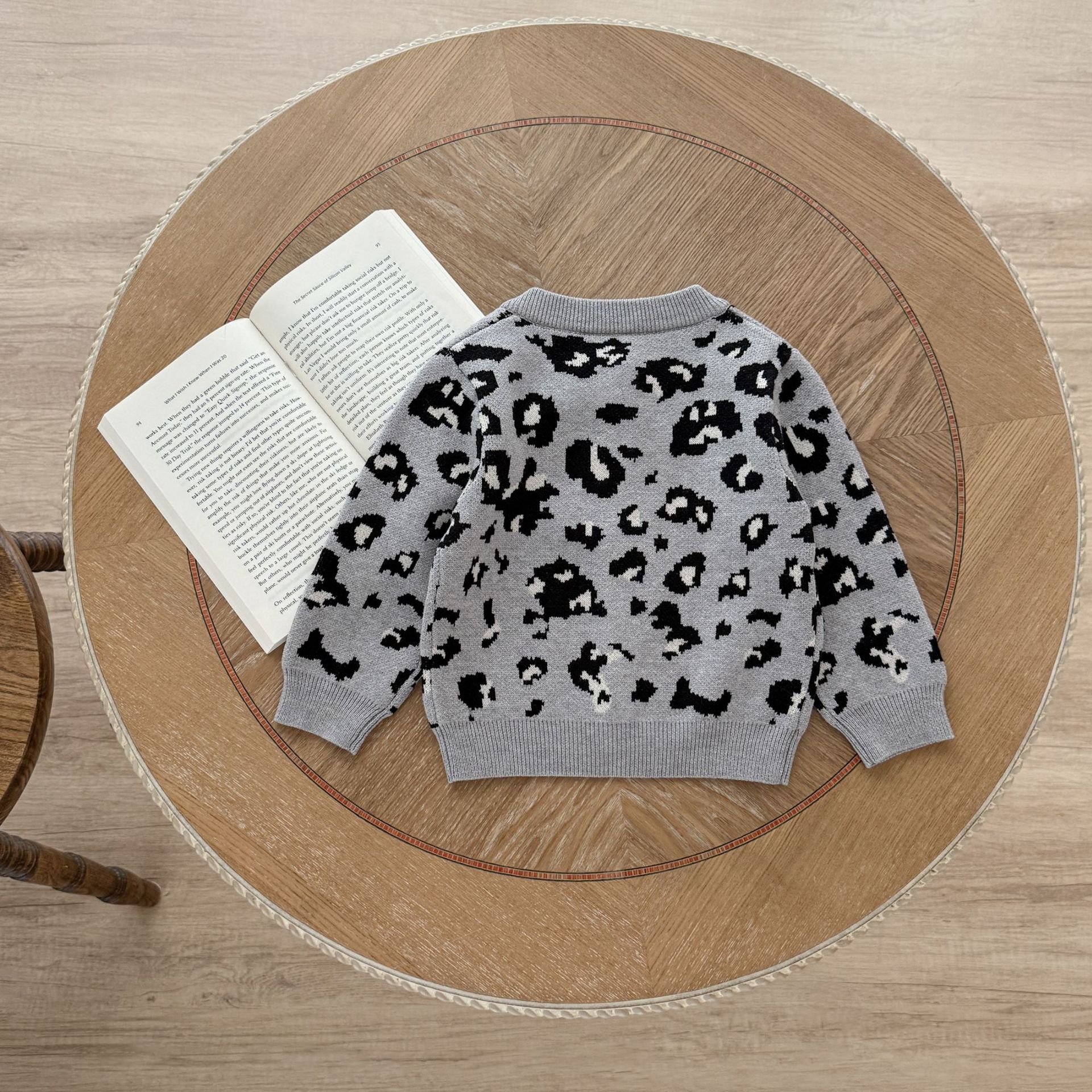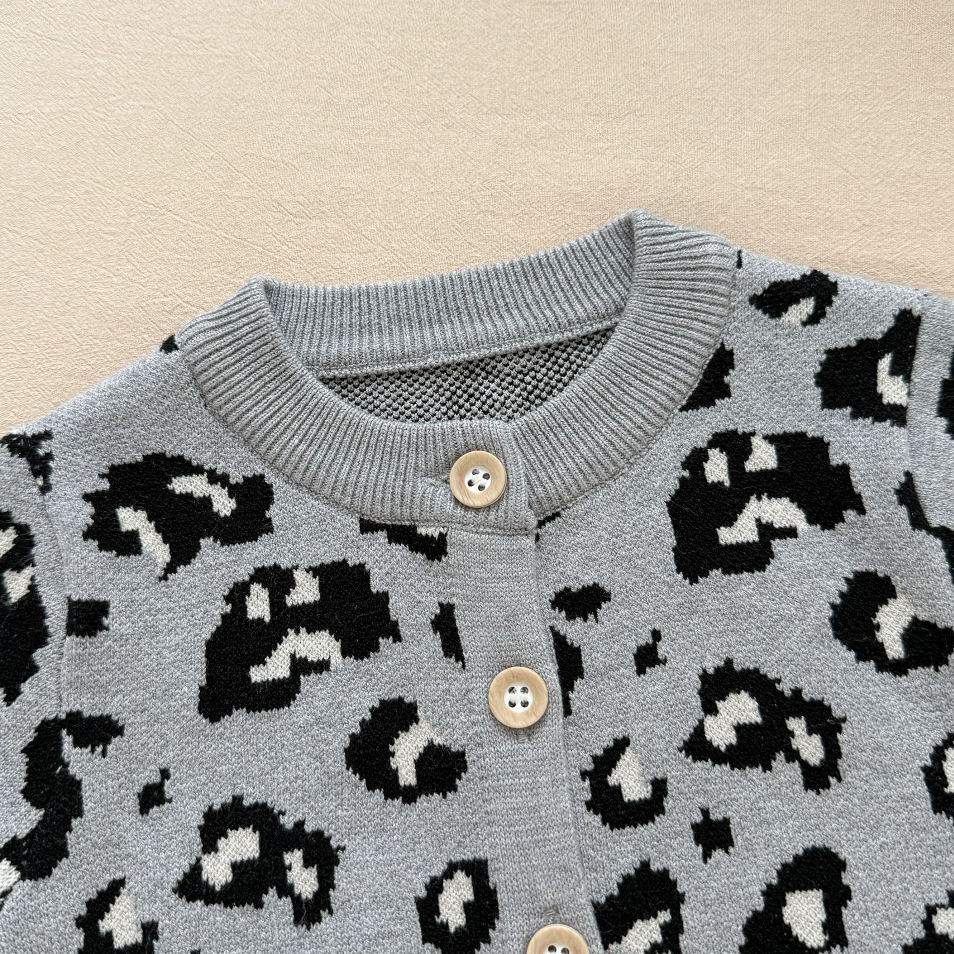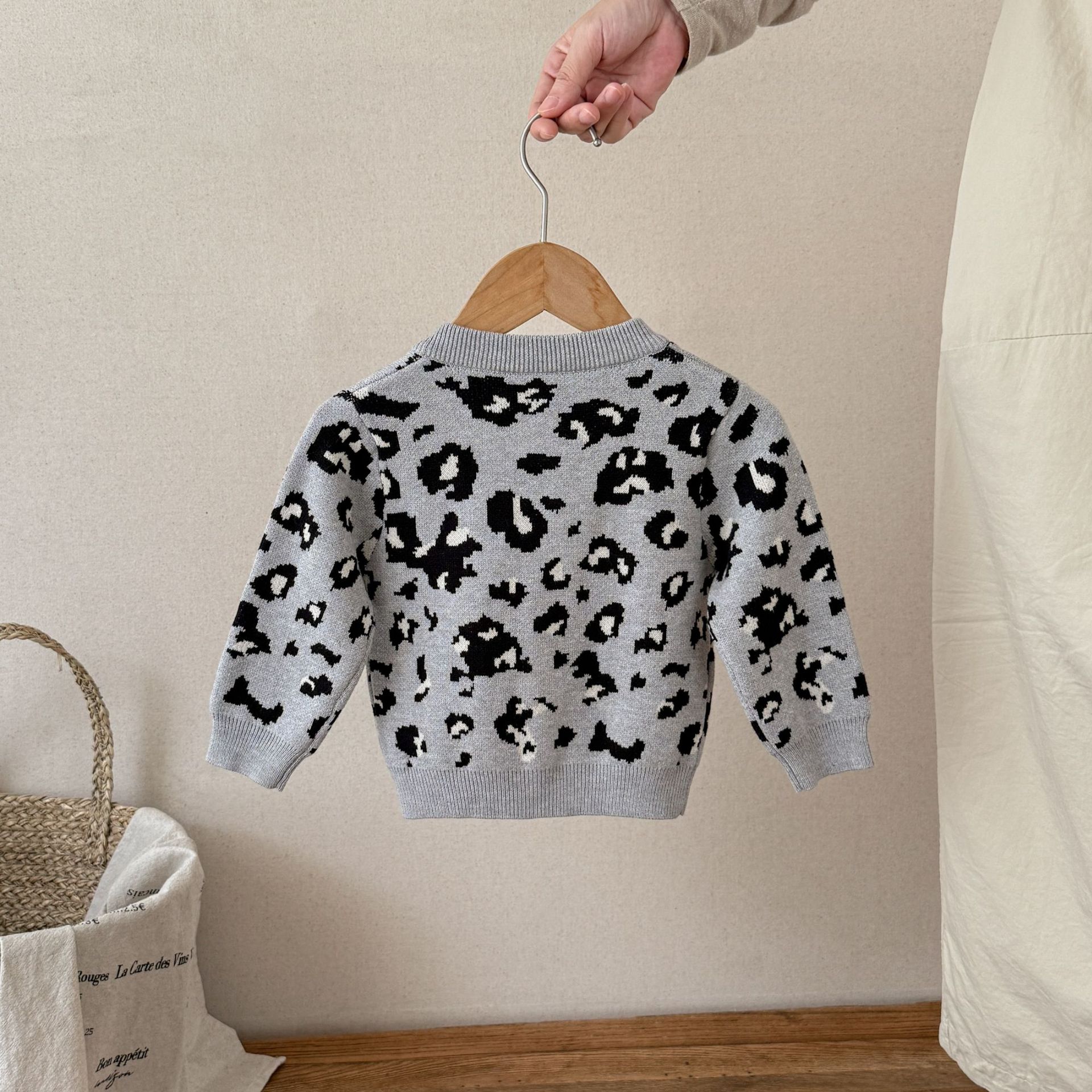 Ins 봄, 가을 아기 한국 스타일 니트 스웨터 아기 소녀 유행 레오파드 프린트 니트 카디건 코트 탑