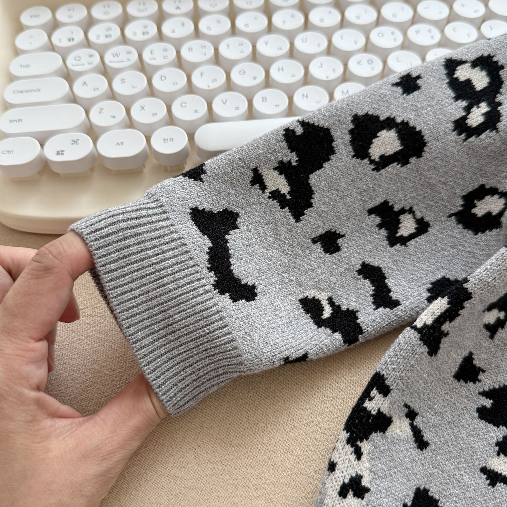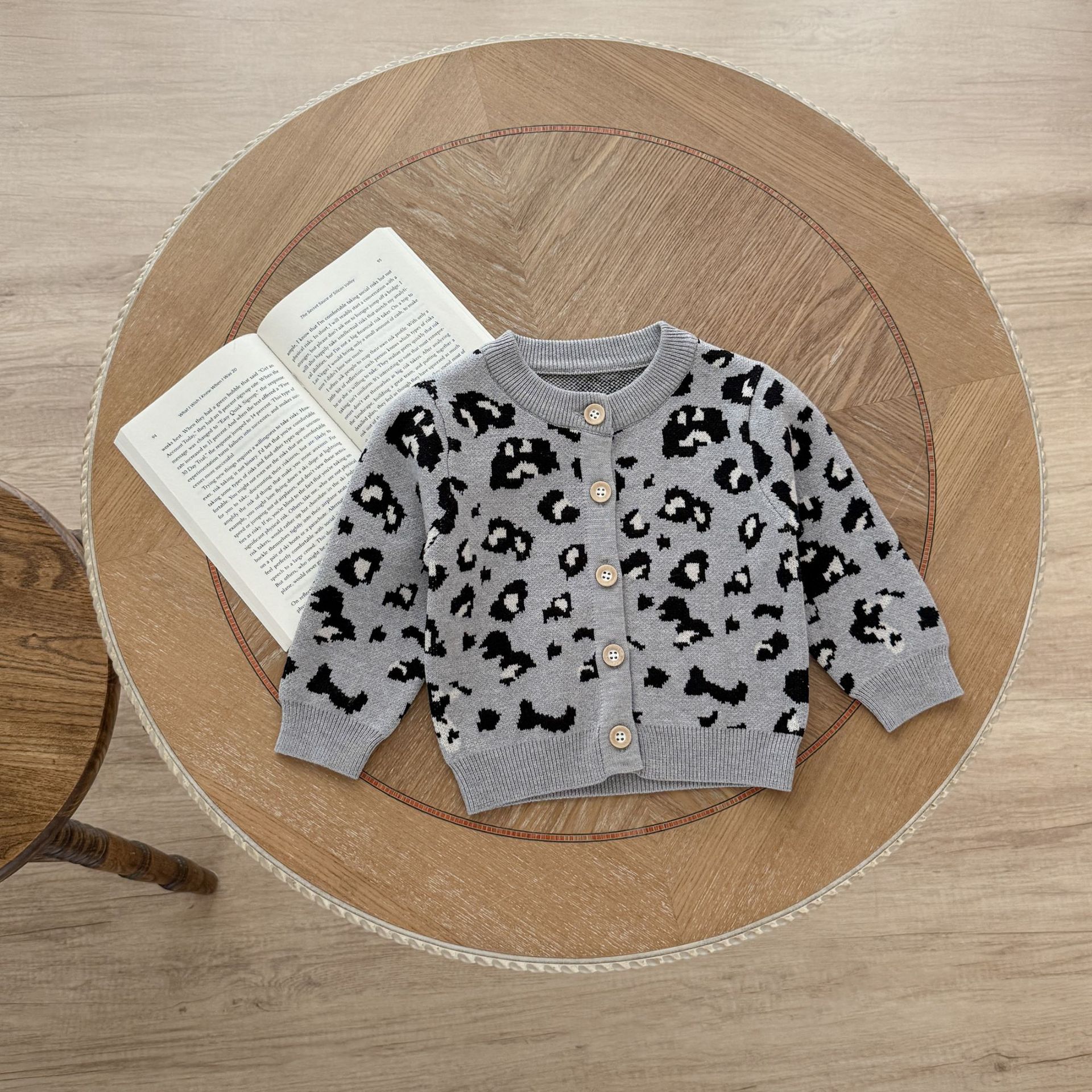 Ins 봄, 가을 아기 한국 스타일 니트 스웨터 아기 소녀 유행 레오파드 프린트 니트 카디건 코트 탑스토어 가기