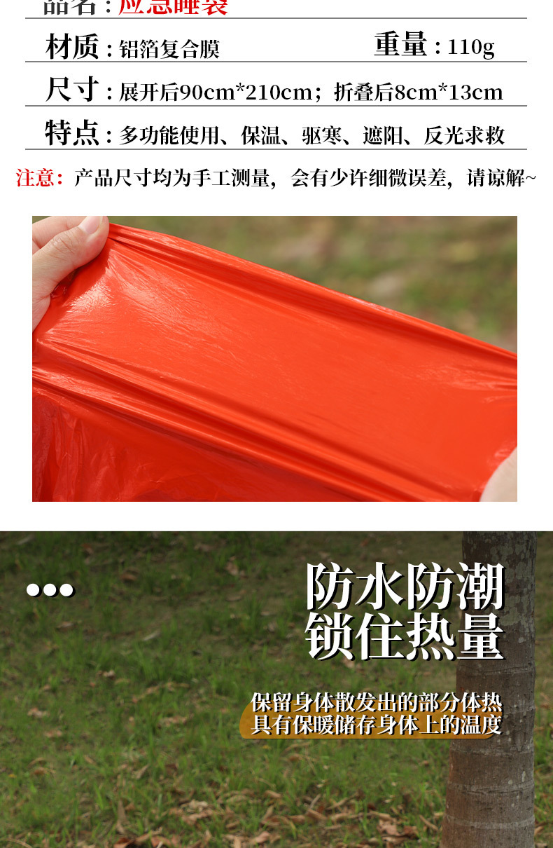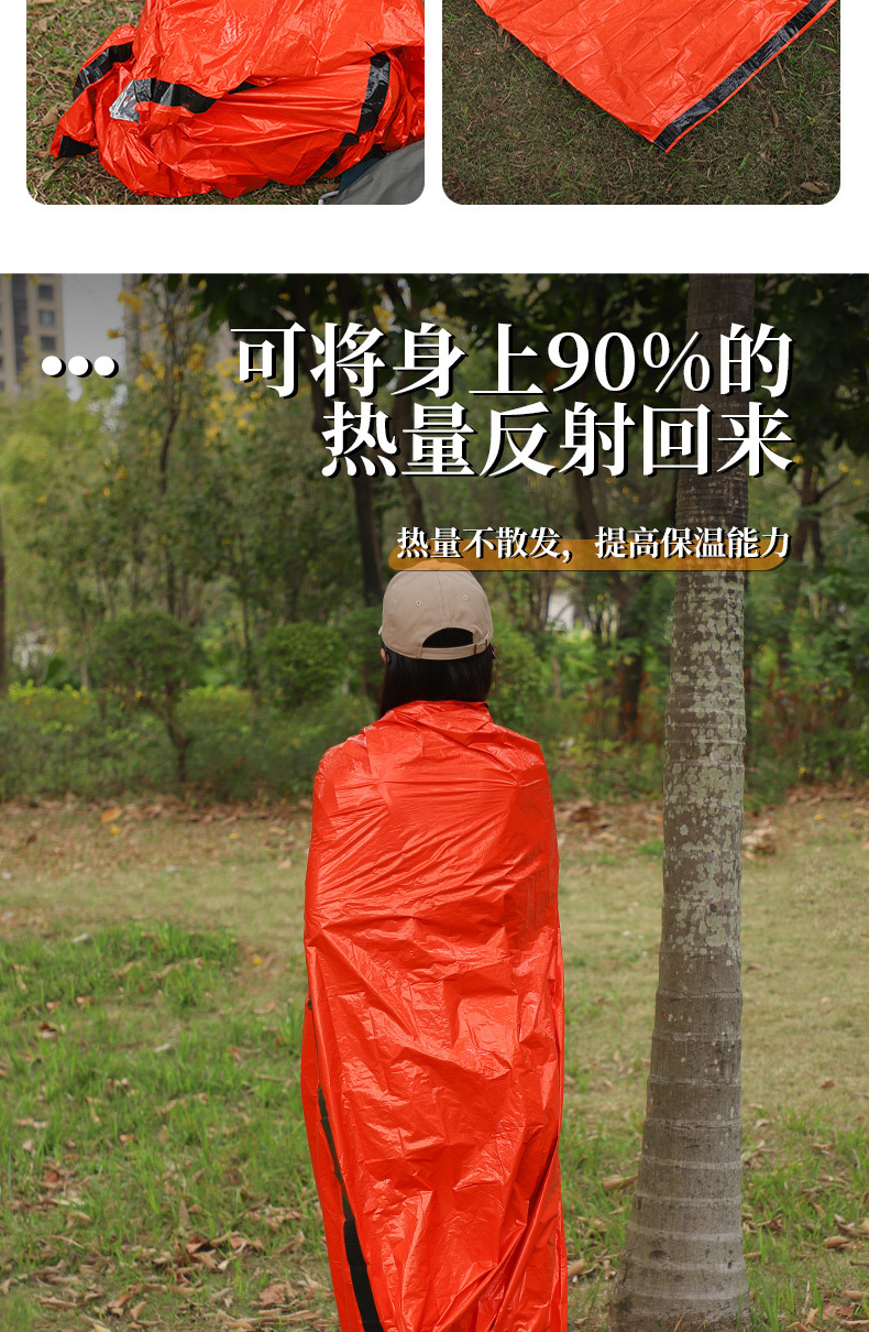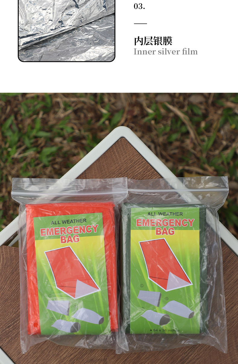 야외 PE 알루미늄 필름 응급 처치 침낭 간단한 방한 및 재해 구호 비상 따뜻한 침낭 비옷 텐트 보관 Amazon스토어 가기