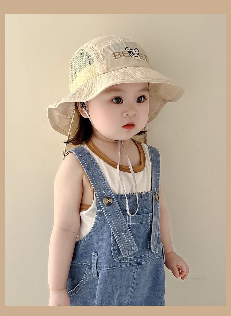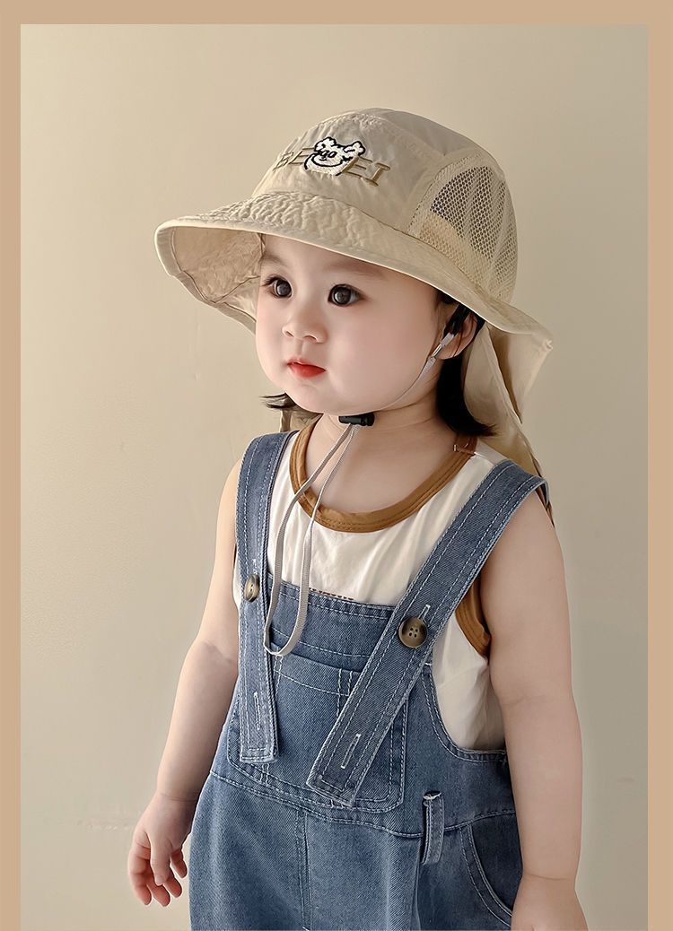 아기 모자 여름 얇은 통기성 메쉬 목 보호대 큰 챙 태양 보호 태양 모자 소년과 소녀 태양 모자 한국어스토어 가기